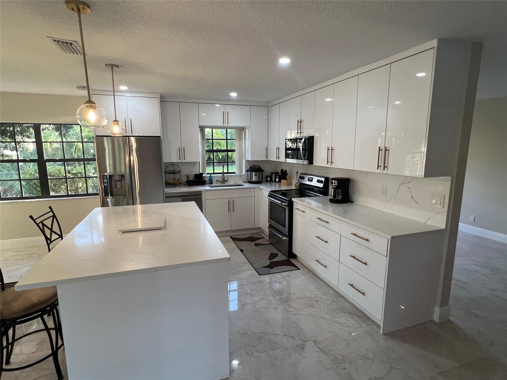 Fantastic home situated on a large pie shaped lot, tucked away on a quiet cul-de-sac street. This beautiful home has many recent upgrades that include, a brand new 2024 barrel tile roof, New kitchen with a large island, quartz counter-tops and stainless steel appliances. New LED lighting. All new tile flooring through-out. Both bathrooms just renovated with new tile, frameless shower doors and new vanities. New Diamond-Bright pool surface, new pool pump. New irrigation lines and sprinkler heads. Fully fence yard. New garage door opener. Accordion storm shutters. No HOA! Shops, restaurants, hospital, houses of worship and expressway all close by. Don't miss your opportunity to own this great property. Schedule your private showing today!