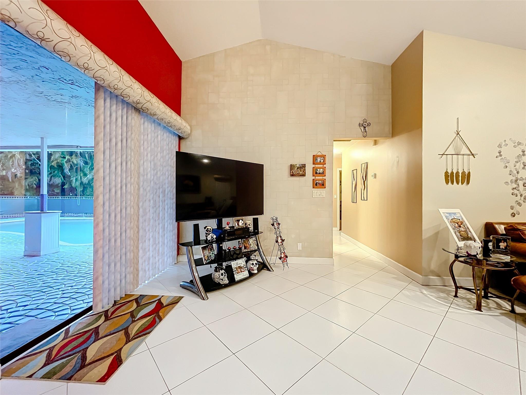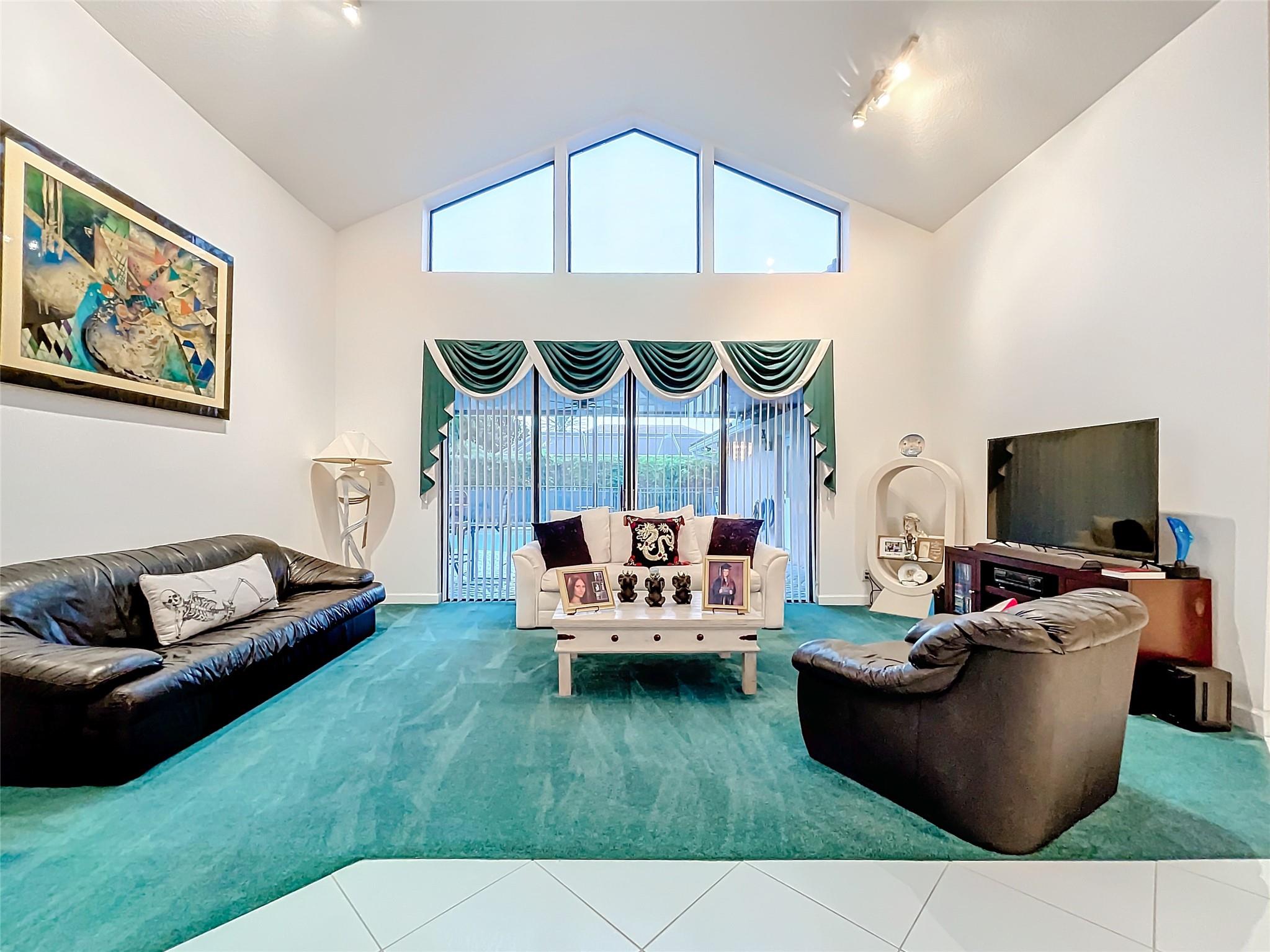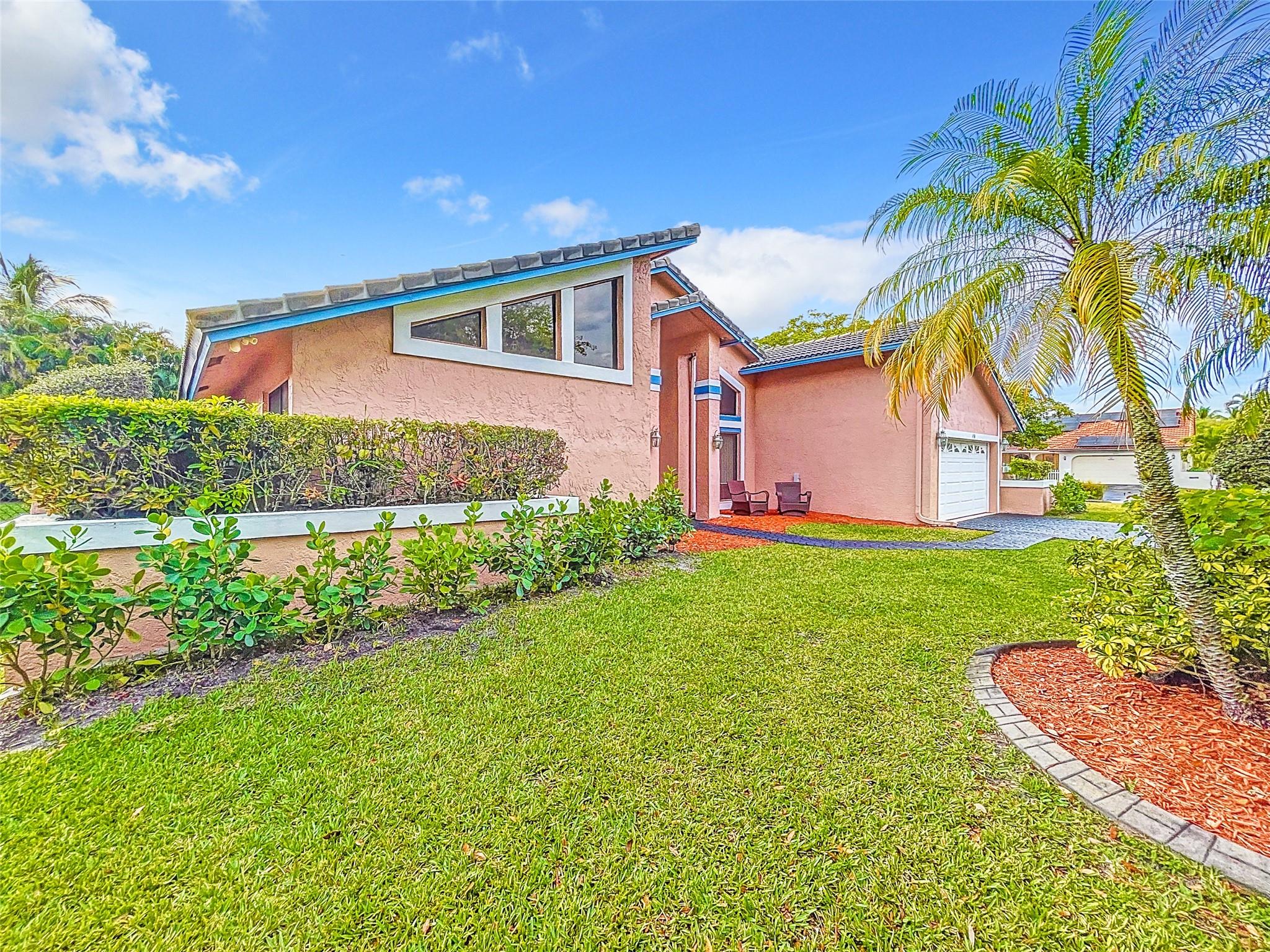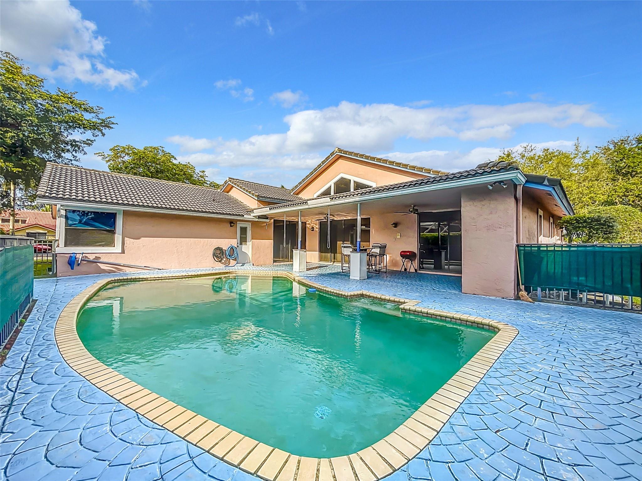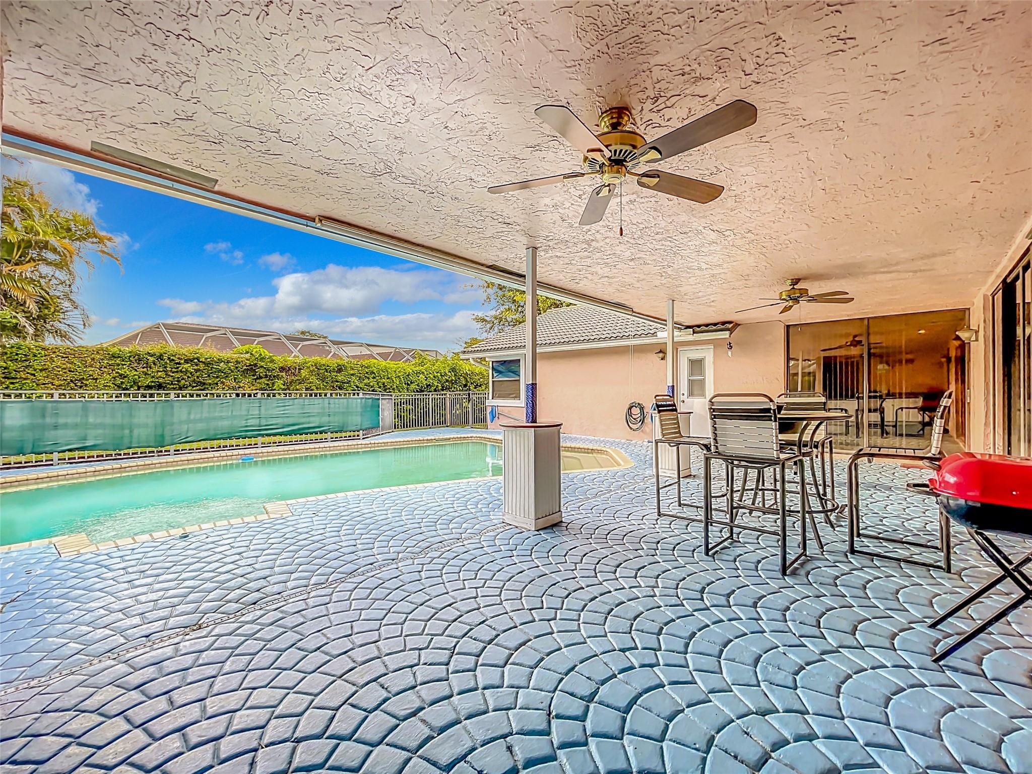 Spacious corner residence nestled in the Pine Ridge community. Home welcomes you with its grand foyer & expansive living and formal dining areas. High ceilings adorned with large windows illuminate the space w/ natural light. Boasting over 2,700 sqft of living space, the home offers a well-designed split layout, featuring 5 bedrooms & 2.5 bathrooms (the 5th bedroom versatile as an office or nursery located adjacent to the master suite). The kitchen, equipped with granite counters/newer appliances & the family room occupy the right side followed by 3 large bedrooms w/ a cabana guest bath. This area transitions to the inviting pool area, complete with a covered deck spanning over 400 + sqft, perfect for entertaining. ROOF 2008, AC 2022 , Oversized corner lot over 12,000.