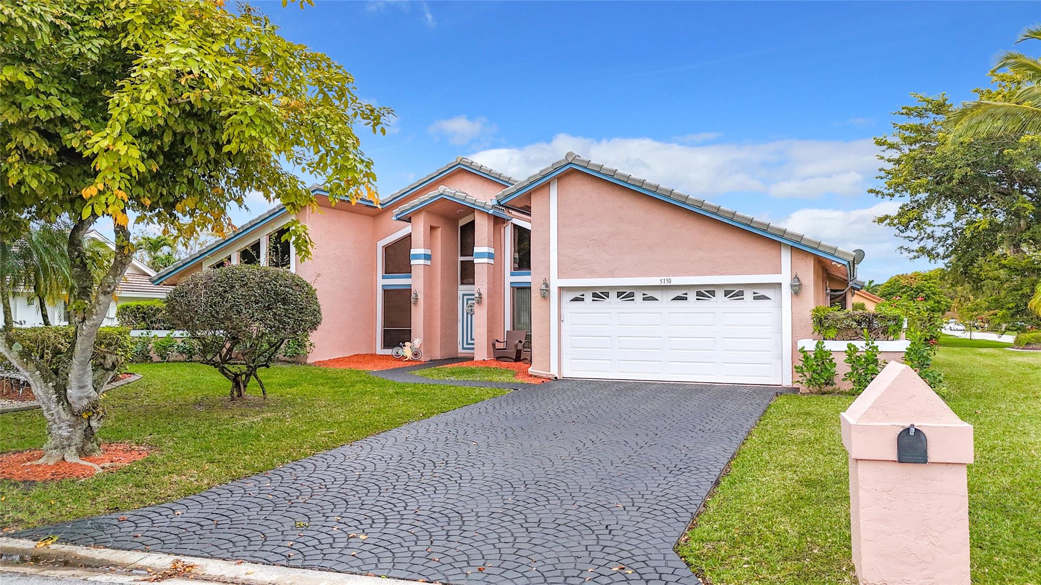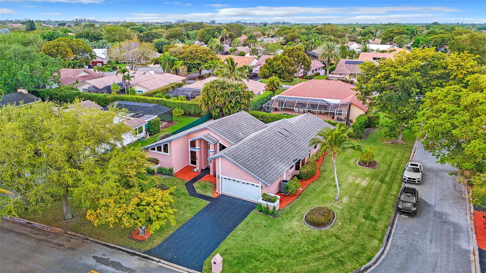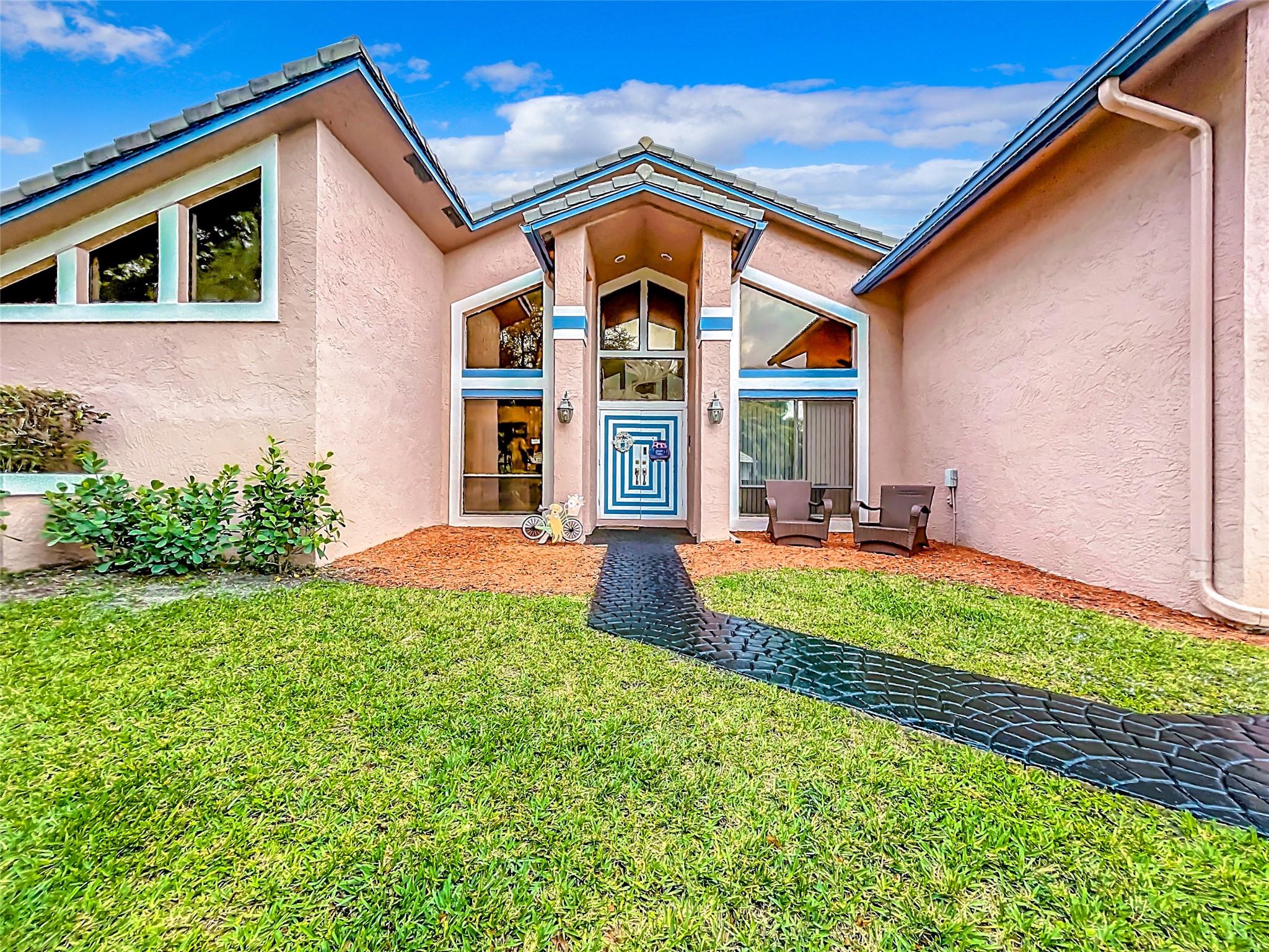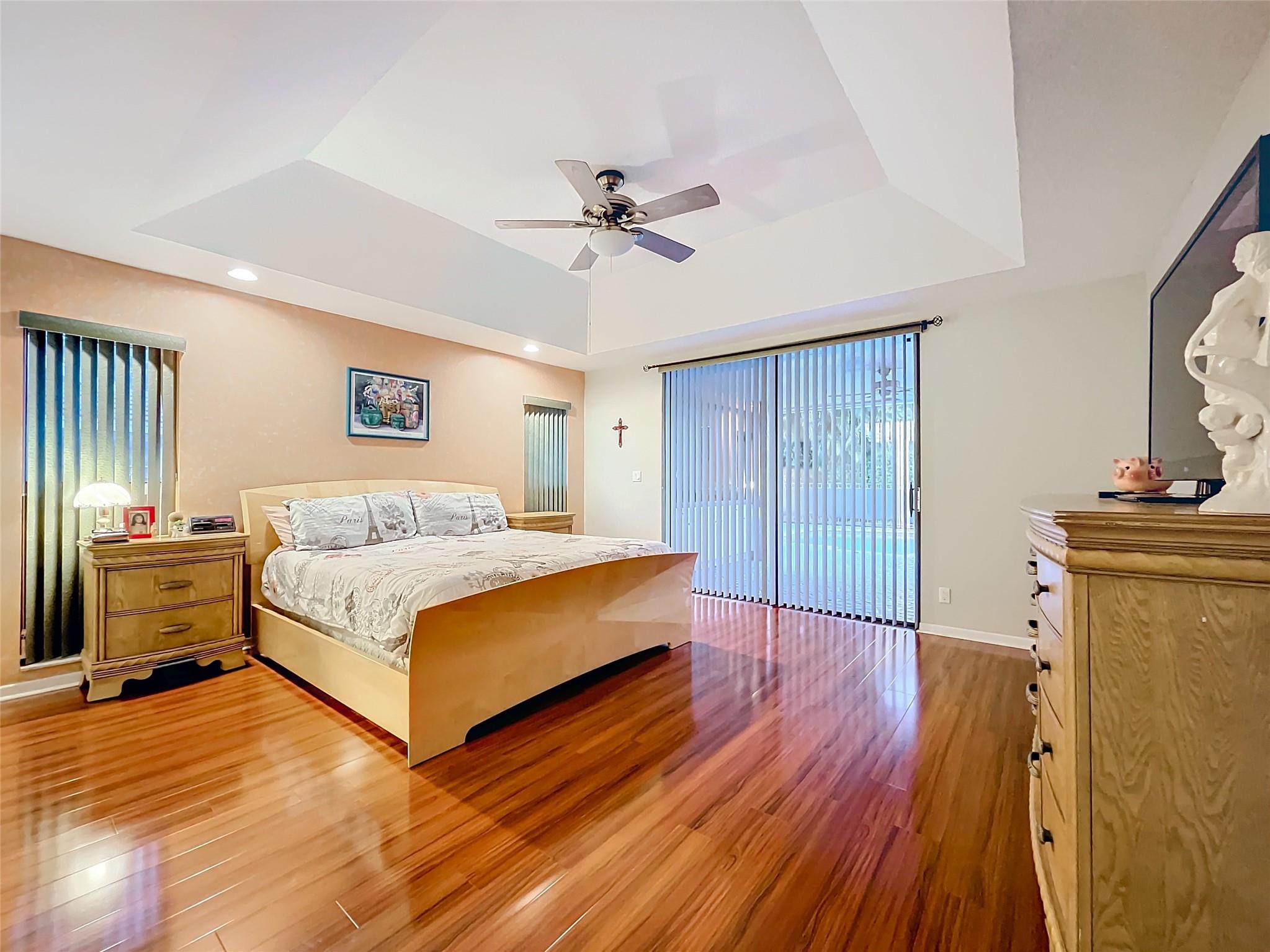 Spacious corner residence nestled in the Pine Ridge community. Home welcomes you with its grand foyer & expansive living and formal dining areas. High ceilings adorned with large windows illuminate the space w/ natural light. Boasting over 2,700 sqft of living space, the home offers a well-designed split layout, featuring 5 bedrooms & 2.5 bathrooms (the 5th bedroom versatile as an office or nursery located adjacent to the master suite). The kitchen, equipped with granite counters/newer appliances & the family room occupy the right side followed by 3 large bedrooms w/ a cabana guest bath. This area transitions to the inviting pool area, complete with a covered deck spanning over 400 + sqft, perfect for entertaining. ROOF 2008, AC 2022 , Oversized corner lot over 12,000.