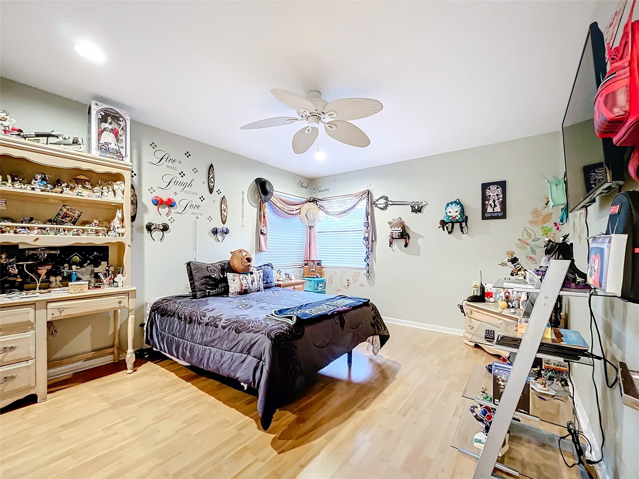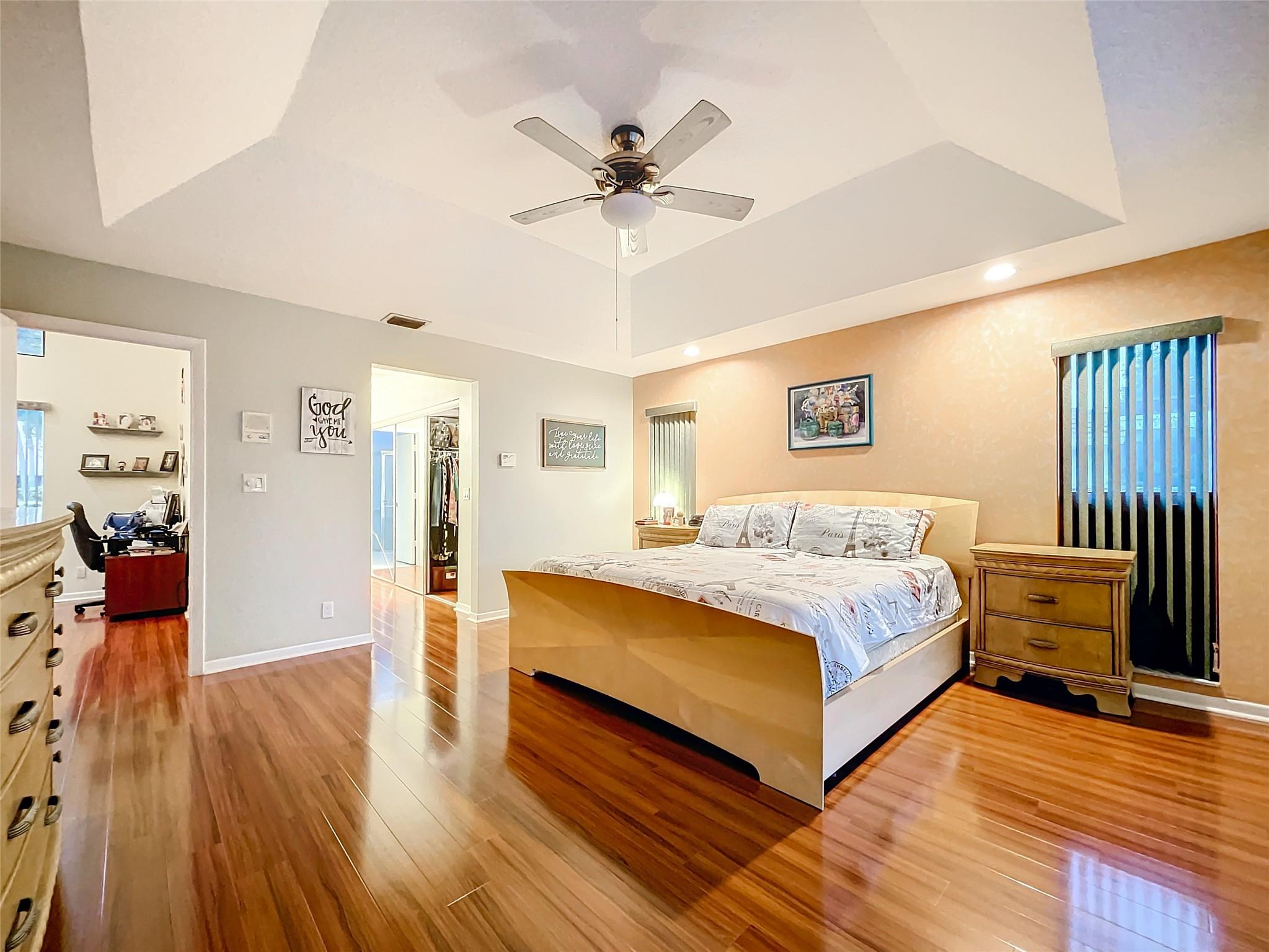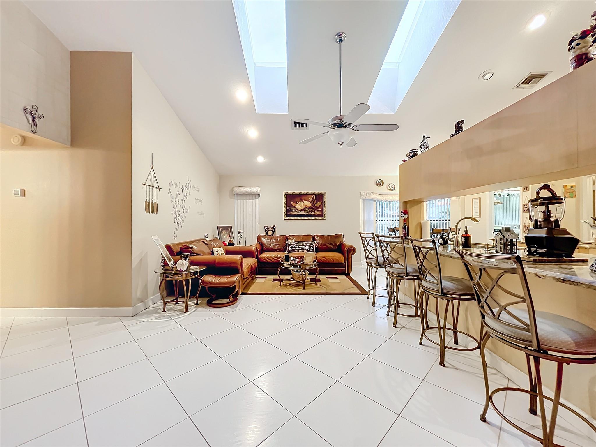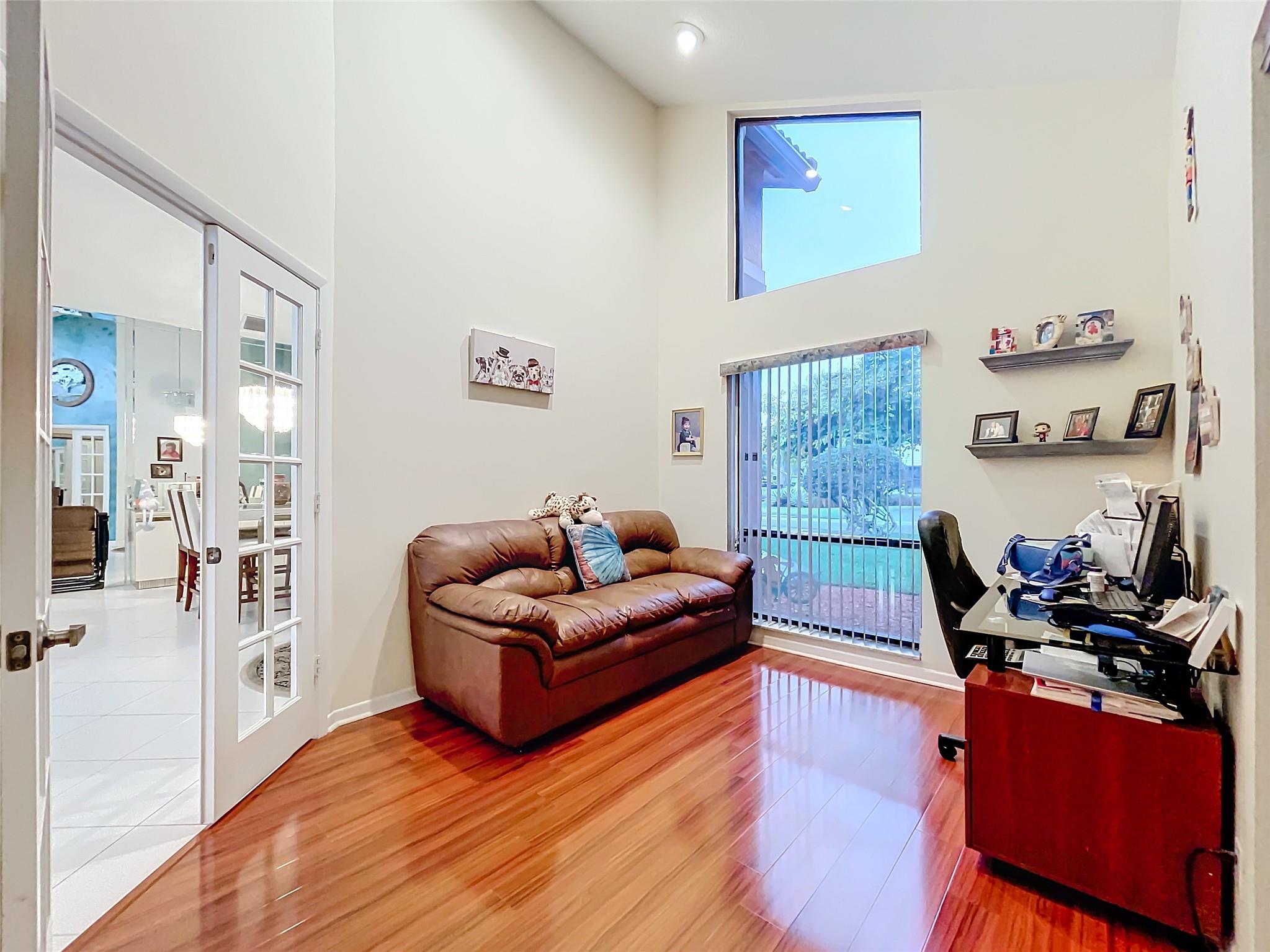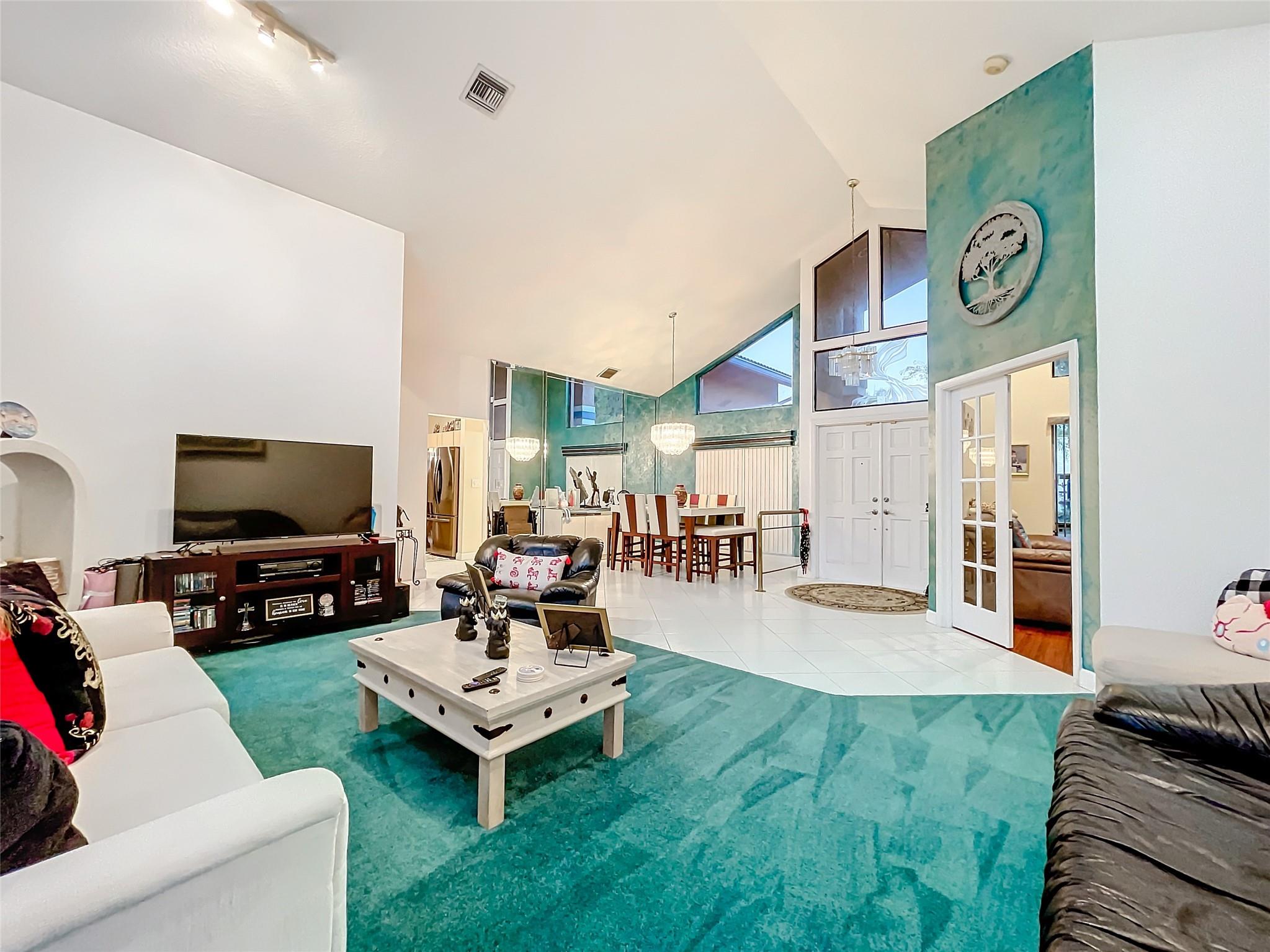 Spacious corner residence nestled in the Pine Ridge community. Home welcomes you with its grand foyer & expansive living and formal dining areas. High ceilings adorned with large windows illuminate the space w/ natural light. Boasting over 2,700 sqft of living space, the home offers a well-designed split layout, featuring 5 bedrooms & 2.5 bathrooms (the 5th bedroom versatile as an office or nursery located adjacent to the master suite). The kitchen, equipped with granite counters/newer appliances & the family room occupy the right side followed by 3 large bedrooms w/ a cabana guest bath. This area transitions to the inviting pool area, complete with a covered deck spanning over 400 + sqft, perfect for entertaining. ROOF 2008, AC 2022 , Oversized corner lot over 12,000.