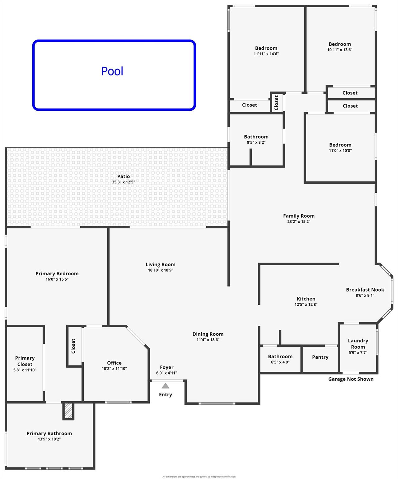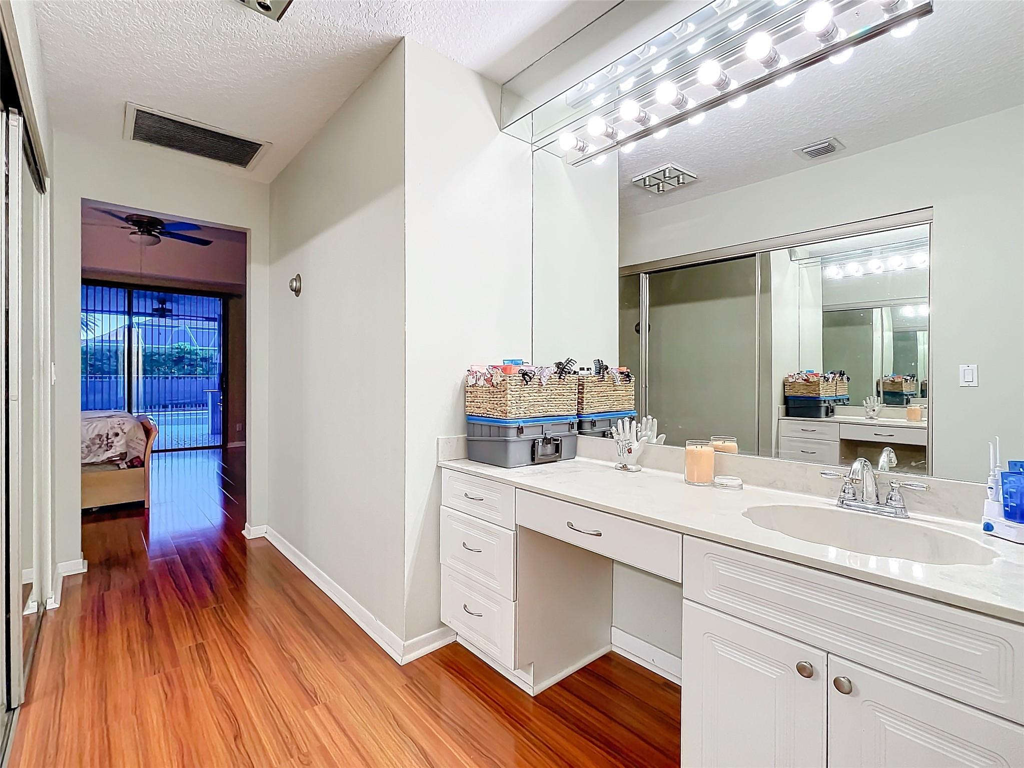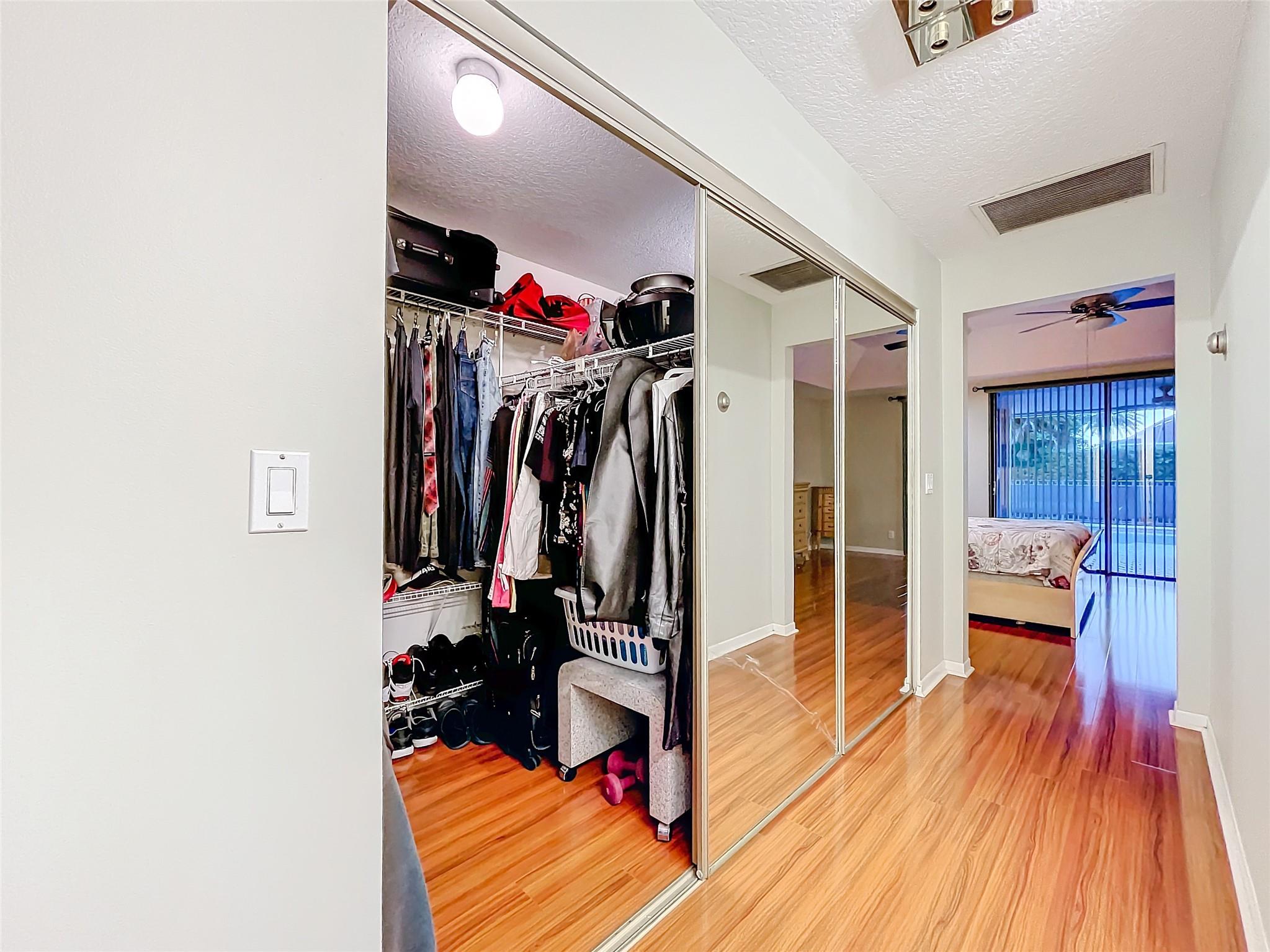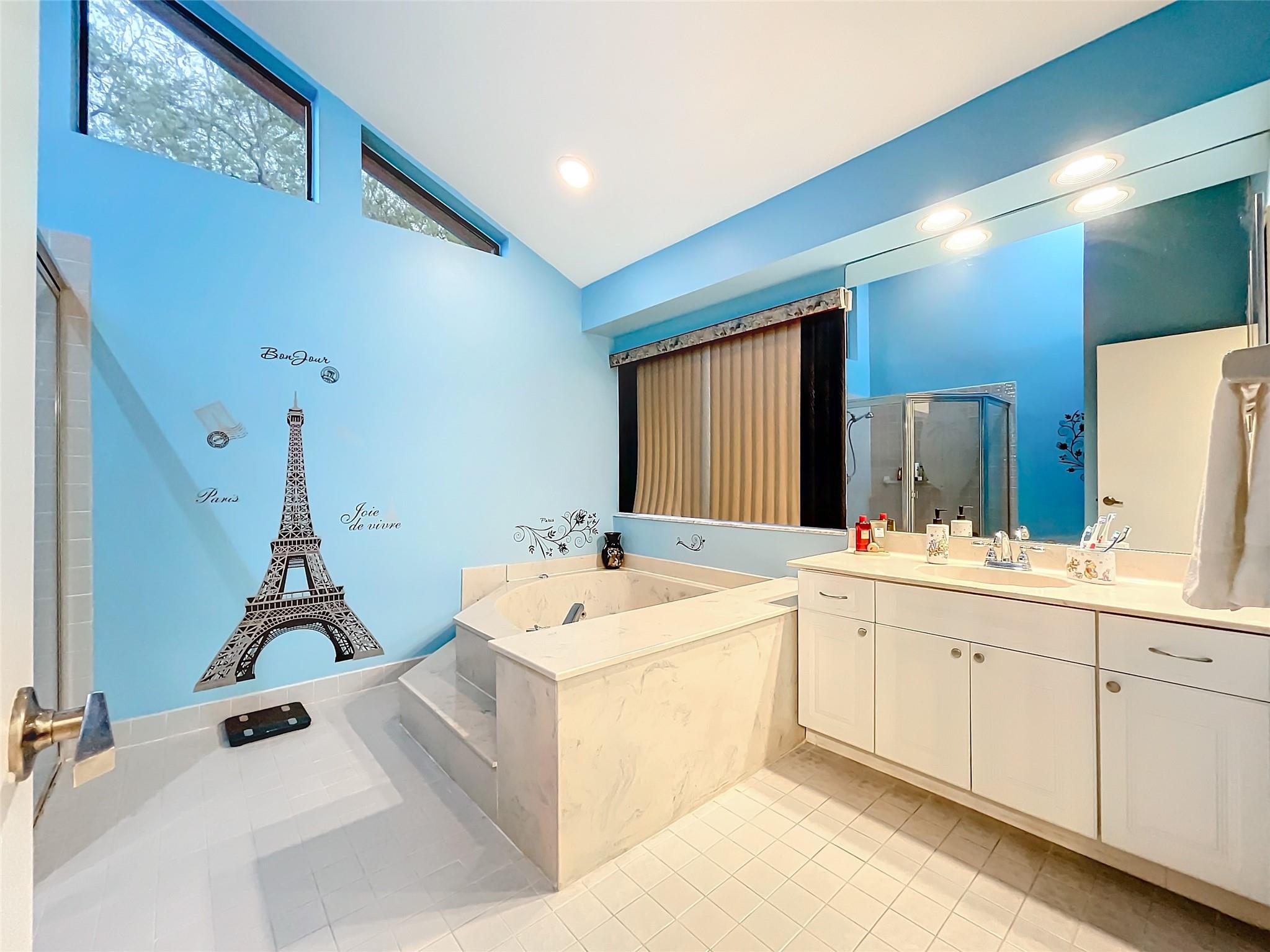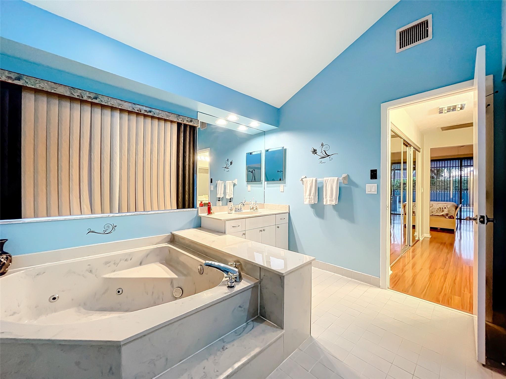 Spacious corner residence nestled in the Pine Ridge community. Home welcomes you with its grand foyer & expansive living and formal dining areas. High ceilings adorned with large windows illuminate the space w/ natural light. Boasting over 2,700 sqft of living space, the home offers a well-designed split layout, featuring 5 bedrooms & 2.5 bathrooms (the 5th bedroom versatile as an office or nursery located adjacent to the master suite). The kitchen, equipped with granite counters/newer appliances & the family room occupy the right side followed by 3 large bedrooms w/ a cabana guest bath. This area transitions to the inviting pool area, complete with a covered deck spanning over 400 + sqft, perfect for entertaining. ROOF 2008, AC 2022 , Oversized corner lot over 12,000.