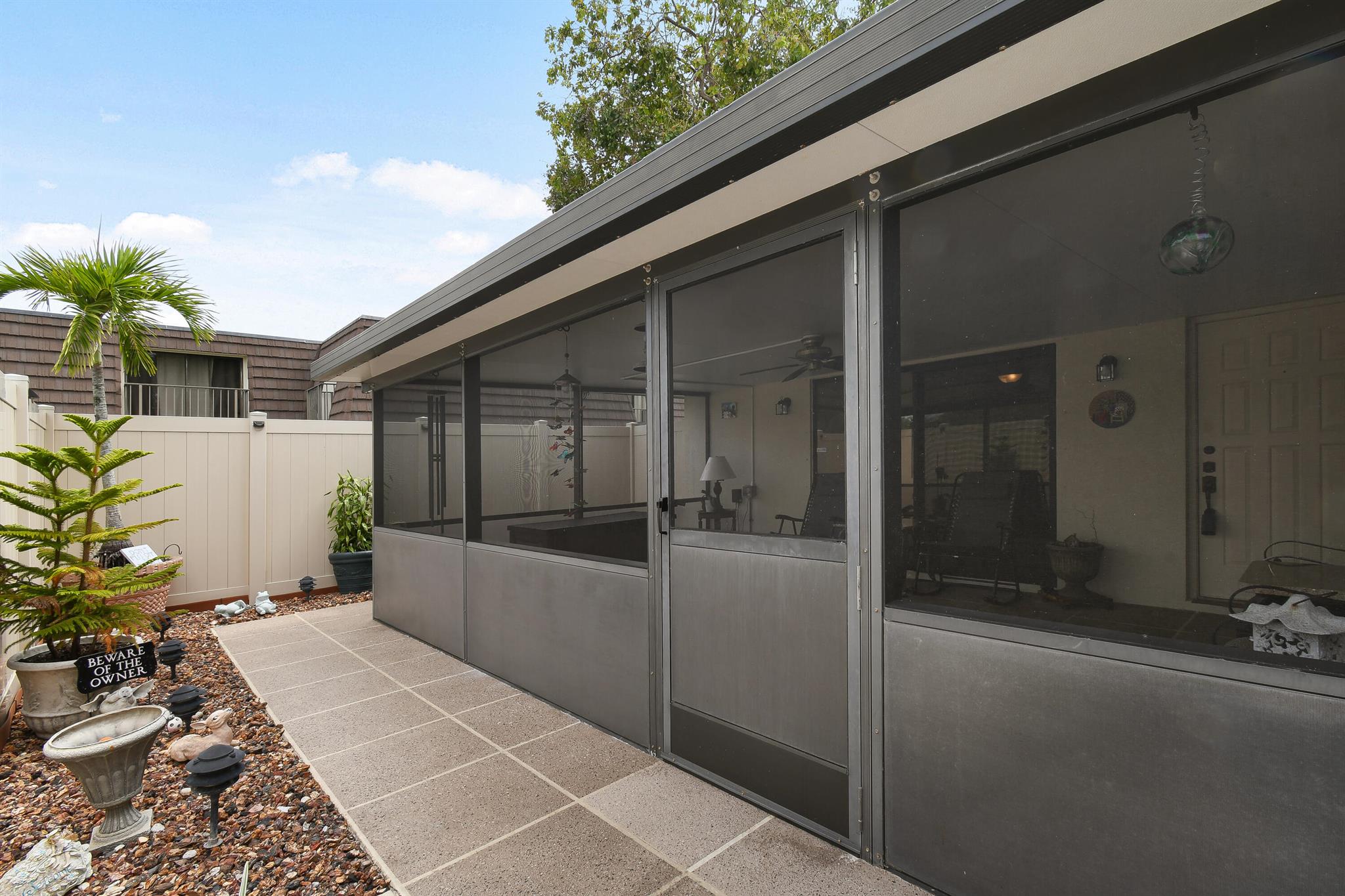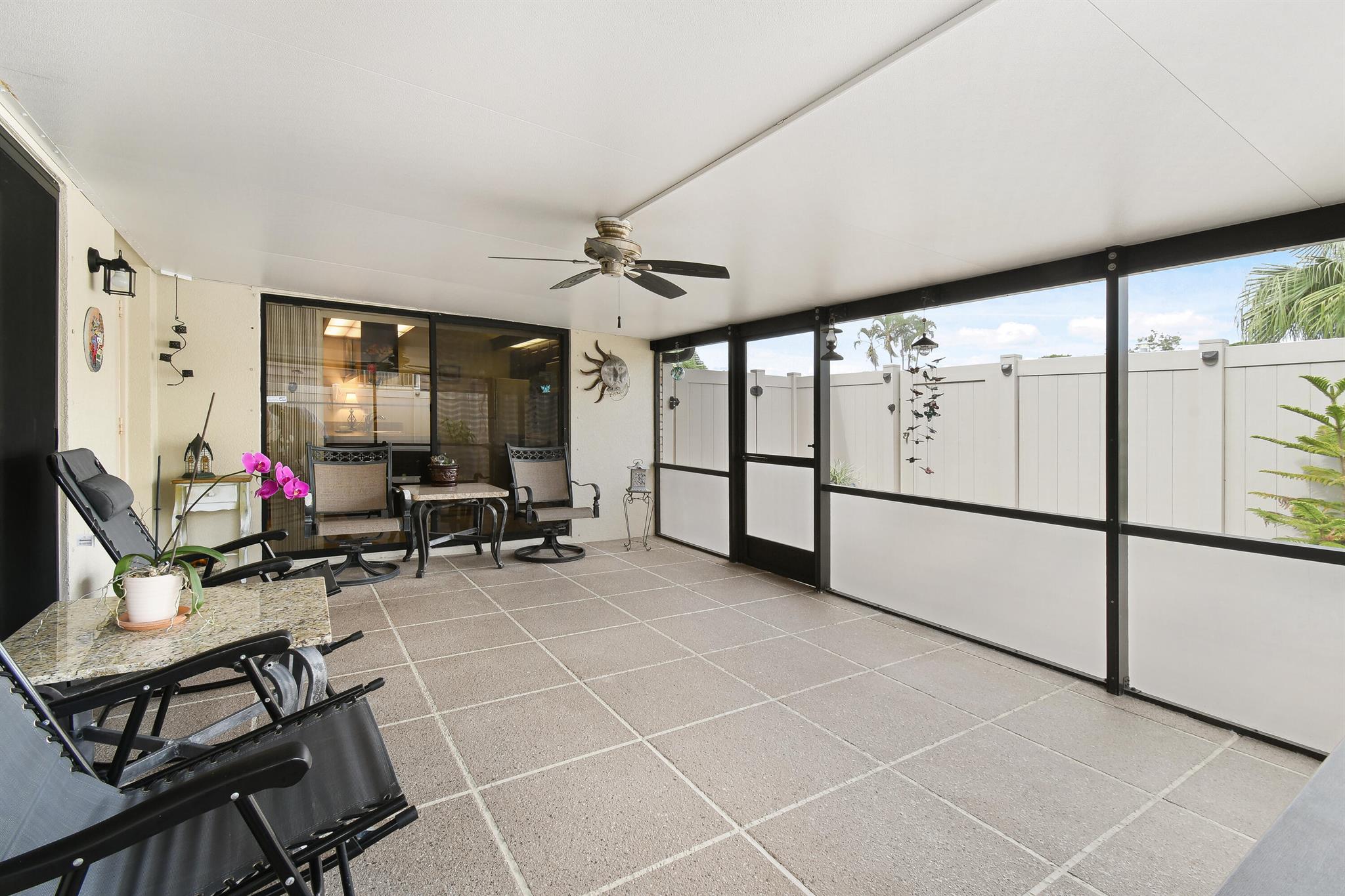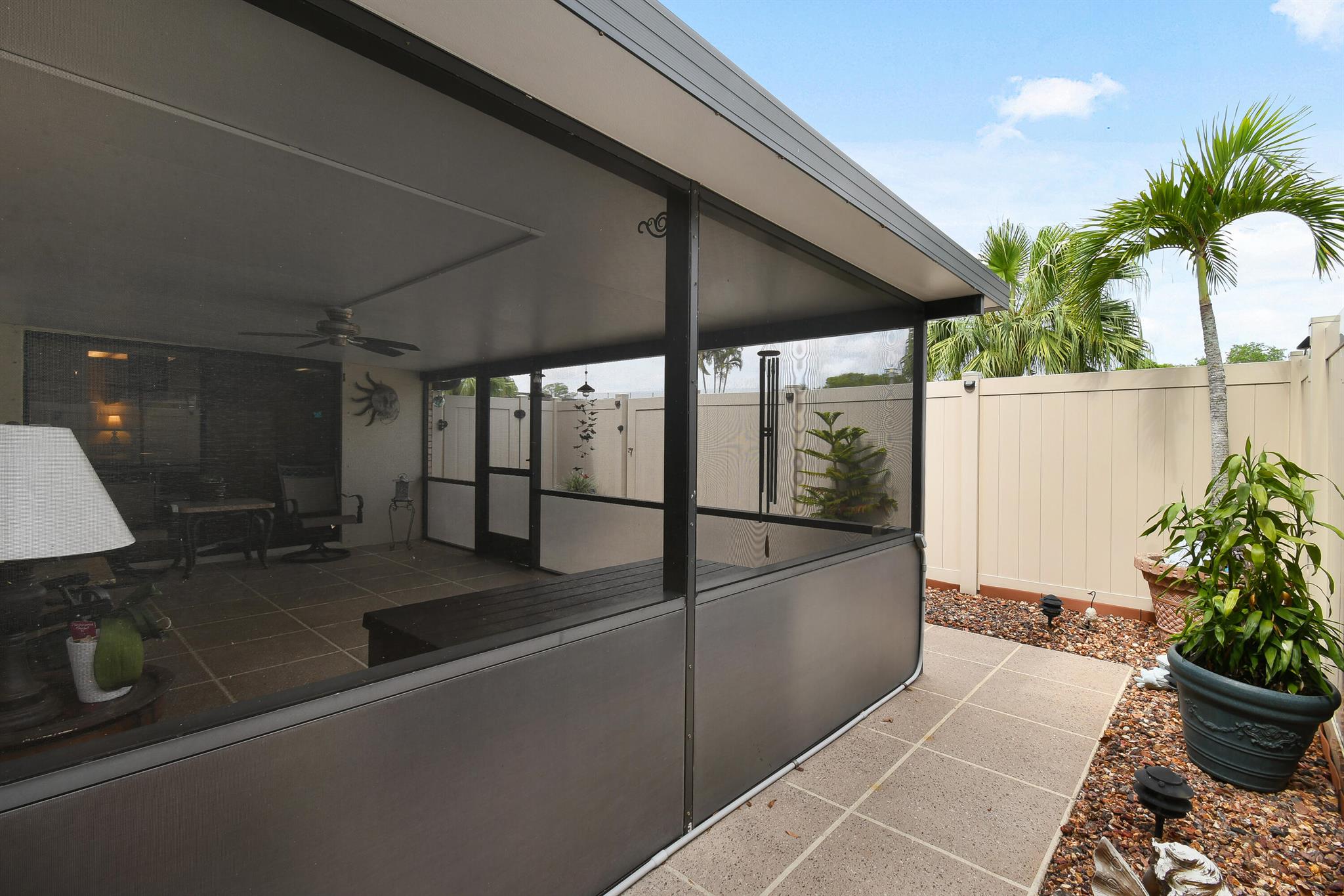 Step into your new oasis! NEW ROOF! This charming 2-bedroom, 2.5-bathroom townhome exudes comfort and elegance, nestled in the coveted locale of West Palm Beach. The airy open-concept living area is tailor-made for hosting gatherings, while the meticulously upgraded kitchen boasts abundant counter space. Embrace convenience with the space-saving, worry-free Tankless Water Heater, along with extra storage under the stairs, a new roof, and a Leaf Filter gutter system. Step outside onto the expansive 20x30 screened-in patio, featuring an insulated aluminum roof and artisan concrete flooring, inviting you to savor the Florida lifestyle rain or shine. Upstairs, discover two generously sized bedrooms, each accompanied by its own ensuite bathroom, ensuring optimal convenience and privacy.