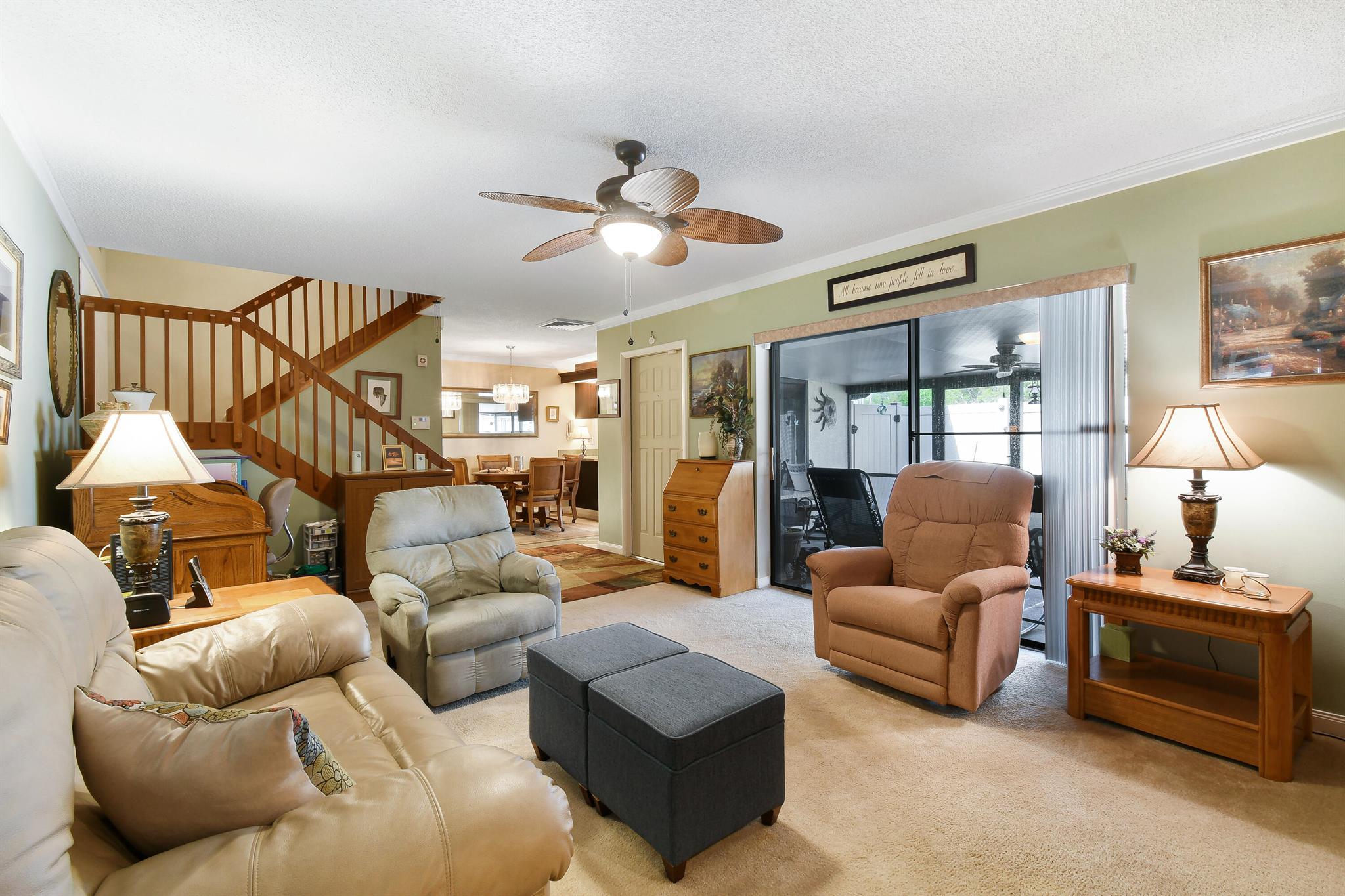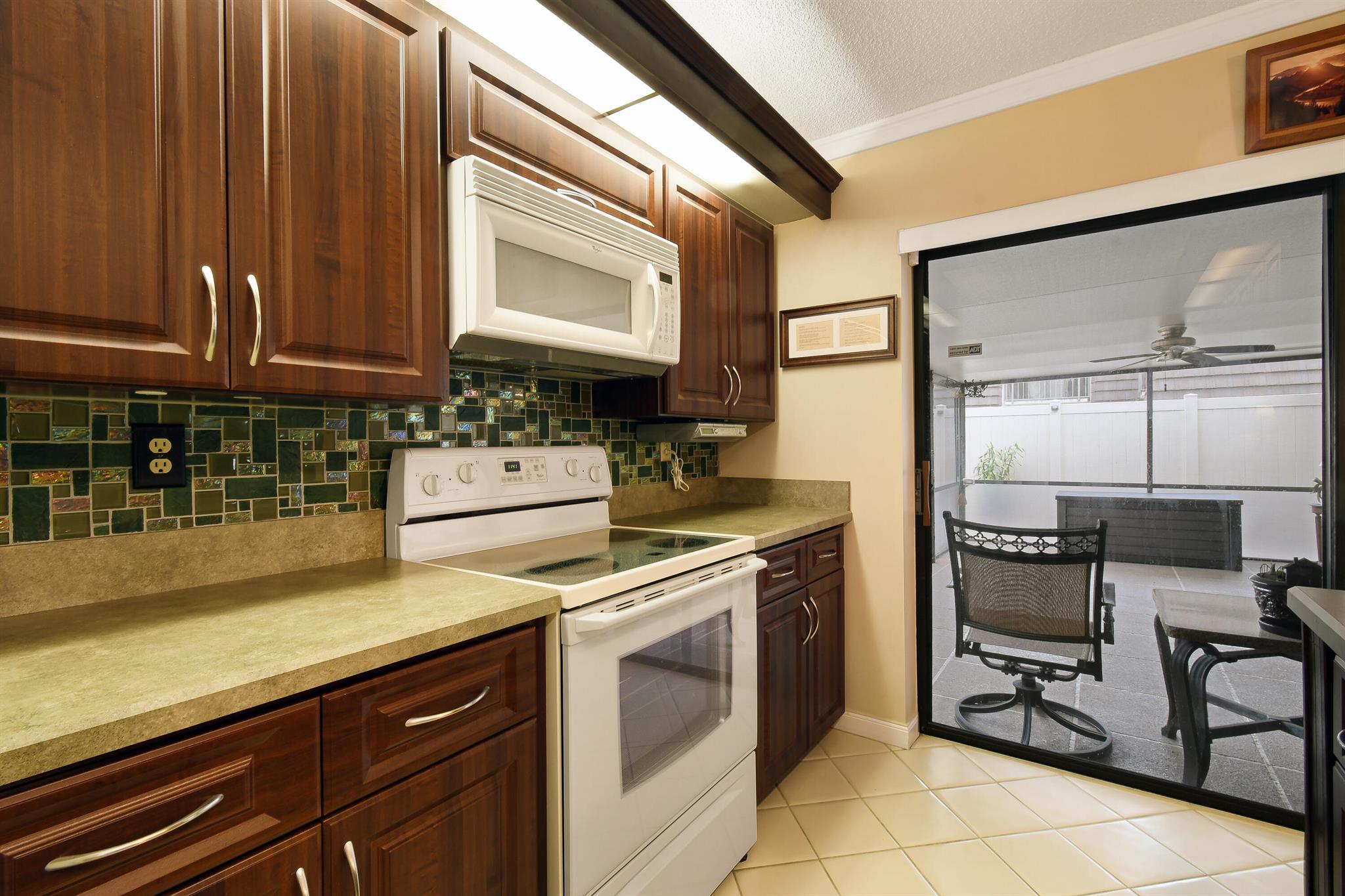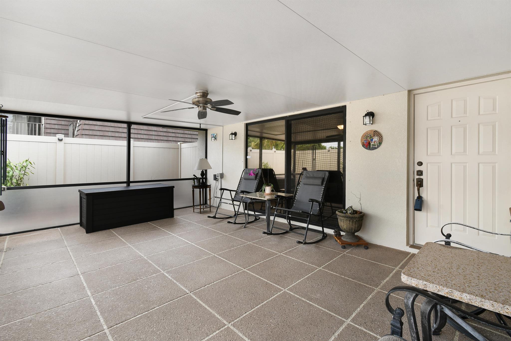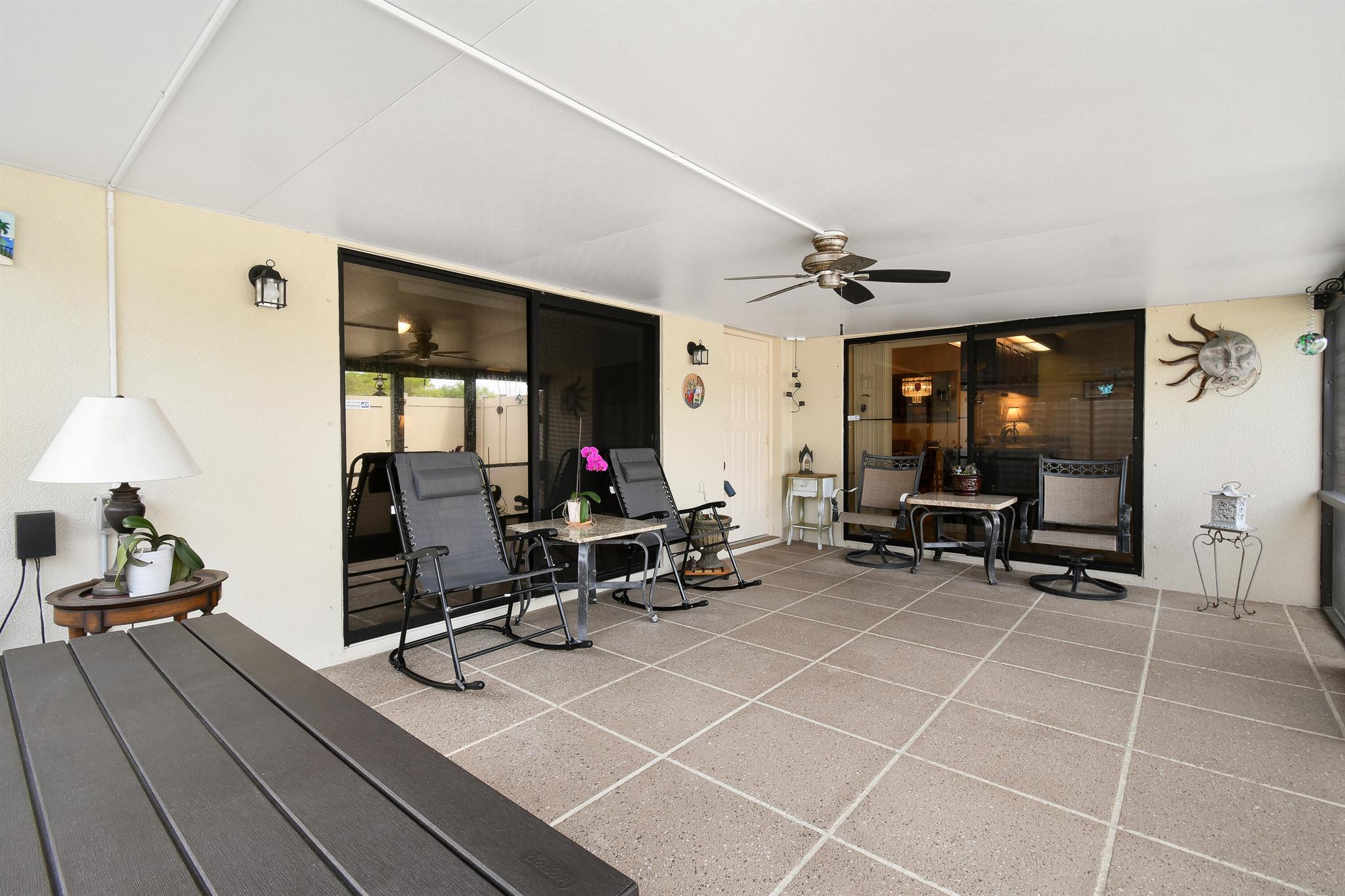 Step into your new oasis! NEW ROOF! This charming 2-bedroom, 2.5-bathroom townhome exudes comfort and elegance, nestled in the coveted locale of West Palm Beach. The airy open-concept living area is tailor-made for hosting gatherings, while the meticulously upgraded kitchen boasts abundant counter space. Embrace convenience with the space-saving, worry-free Tankless Water Heater, along with extra storage under the stairs, a new roof, and a Leaf Filter gutter system. Step outside onto the expansive 20x30 screened-in patio, featuring an insulated aluminum roof and artisan concrete flooring, inviting you to savor the Florida lifestyle rain or shine. Upstairs, discover two generously sized bedrooms, each accompanied by its own ensuite bathroom, ensuring optimal convenience and privacy.
