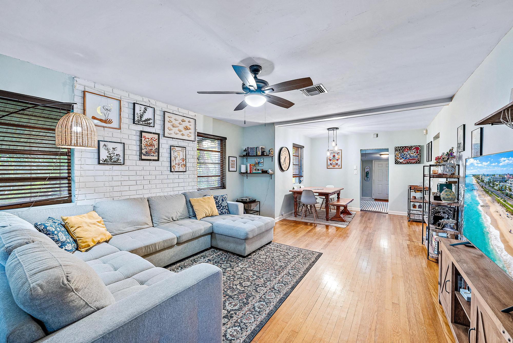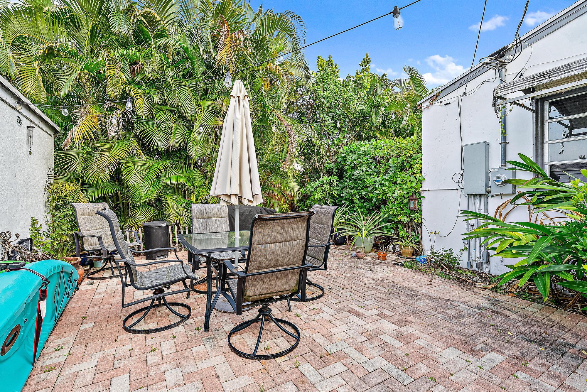 Welcome to this well-maintained 2-bedroom home nestled on a corner lot in the charming Northwood Shores neighborhood. Warm up on chilly evenings with the cozy gas fireplace, while the oak floors add a touch of elegance throughout the living space. The kitchen boasts new countertops and a spacious eat-in area, ideal for casual dining or entertaining guests. Step outside to the covered and screened patio, where you can unwind while soaking up the sun. A detached 1-car garage offers convenient parking or storage space. Recent updates include the installation of pavers in the backyard along with new tropical landscaping. Additionally, the electrical system has been updated previously.