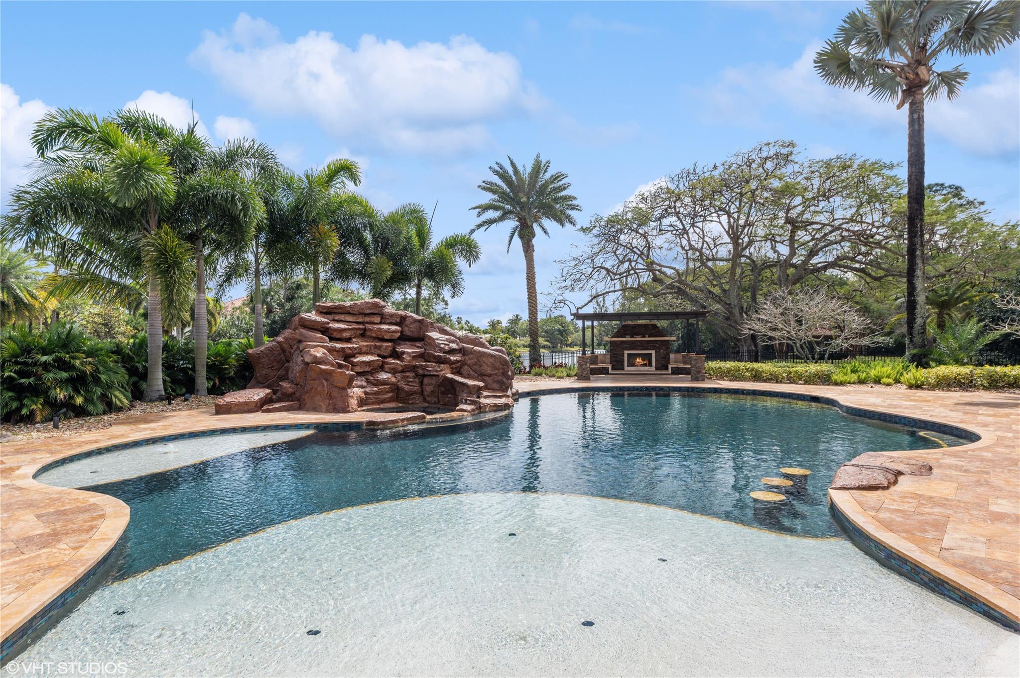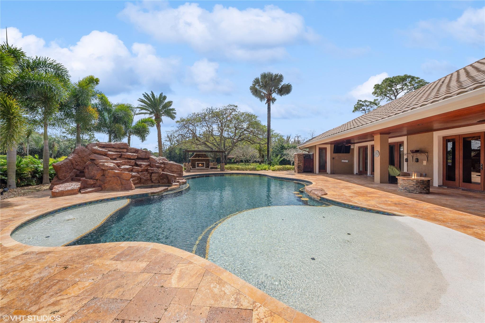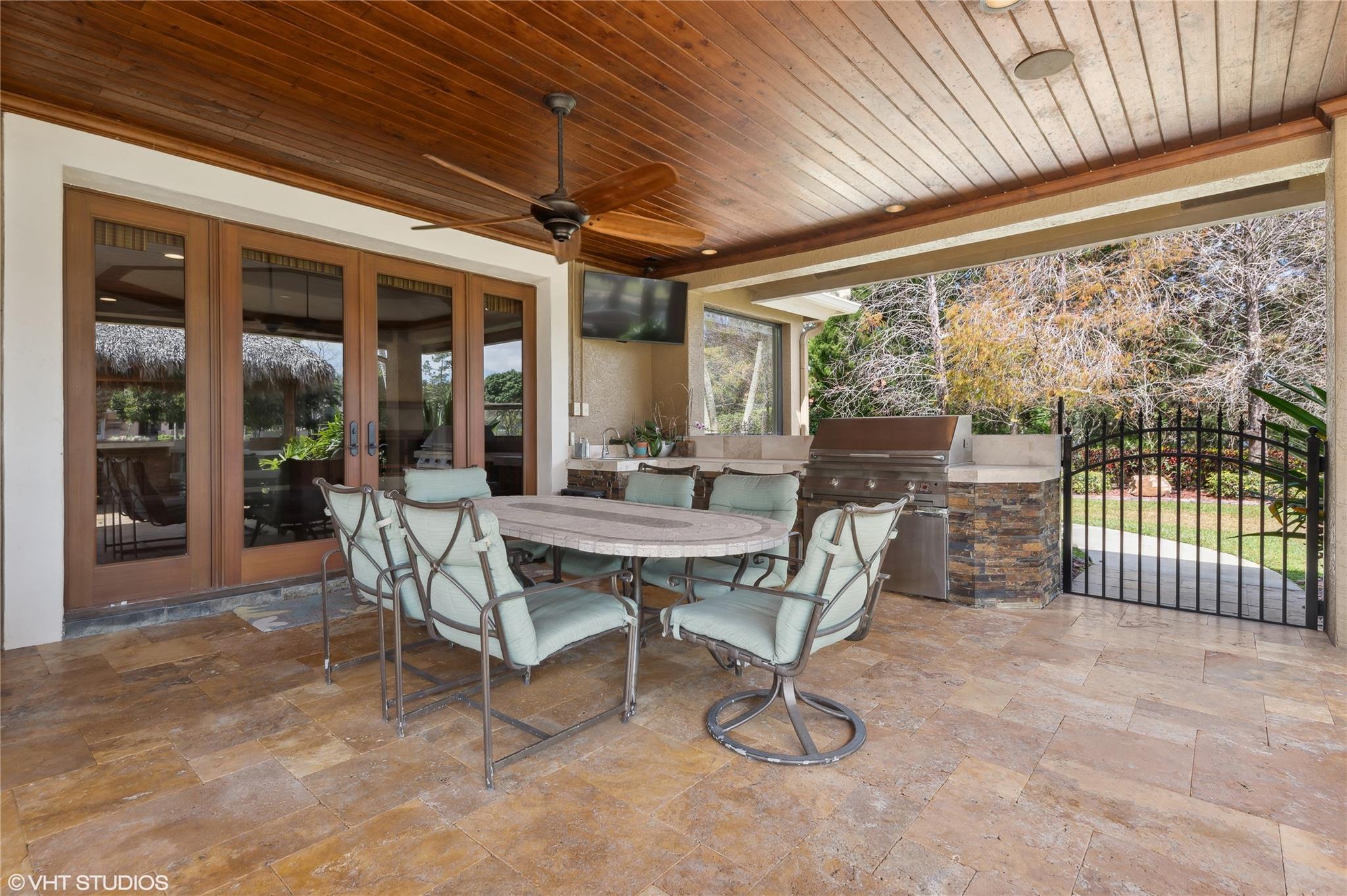 Indulge in unparalleled luxury on this 1 acre estate overlooking a stunning lake. 5 bed 5 bath over 6000 sq ft masterpiece boasts high-end finishes. Gourmet kitchen with a Sub Zero Refrigerator, Induction stovetop, Double oven & 2 Walk in Pantries. Separate bar to entertain w/ Sub Zero Wine Fridge. Enormous Media Room with Bar. Unwind in your lavish primary suite complete with a double bathroom, steam shower, Sauna, office and a private gym. Entertain w/ multiple covered patios, a resort style sparkling saltwater pool, Tiki area w/ TVs, Outdoor Kitchen, firepit & custom sport court. Water purifier and softener, 5 car garage. This home is the ultimate in indoor-outdoor living, creating a private oasis perfect for families who appreciate quality & tranquility. Make this dream home yours