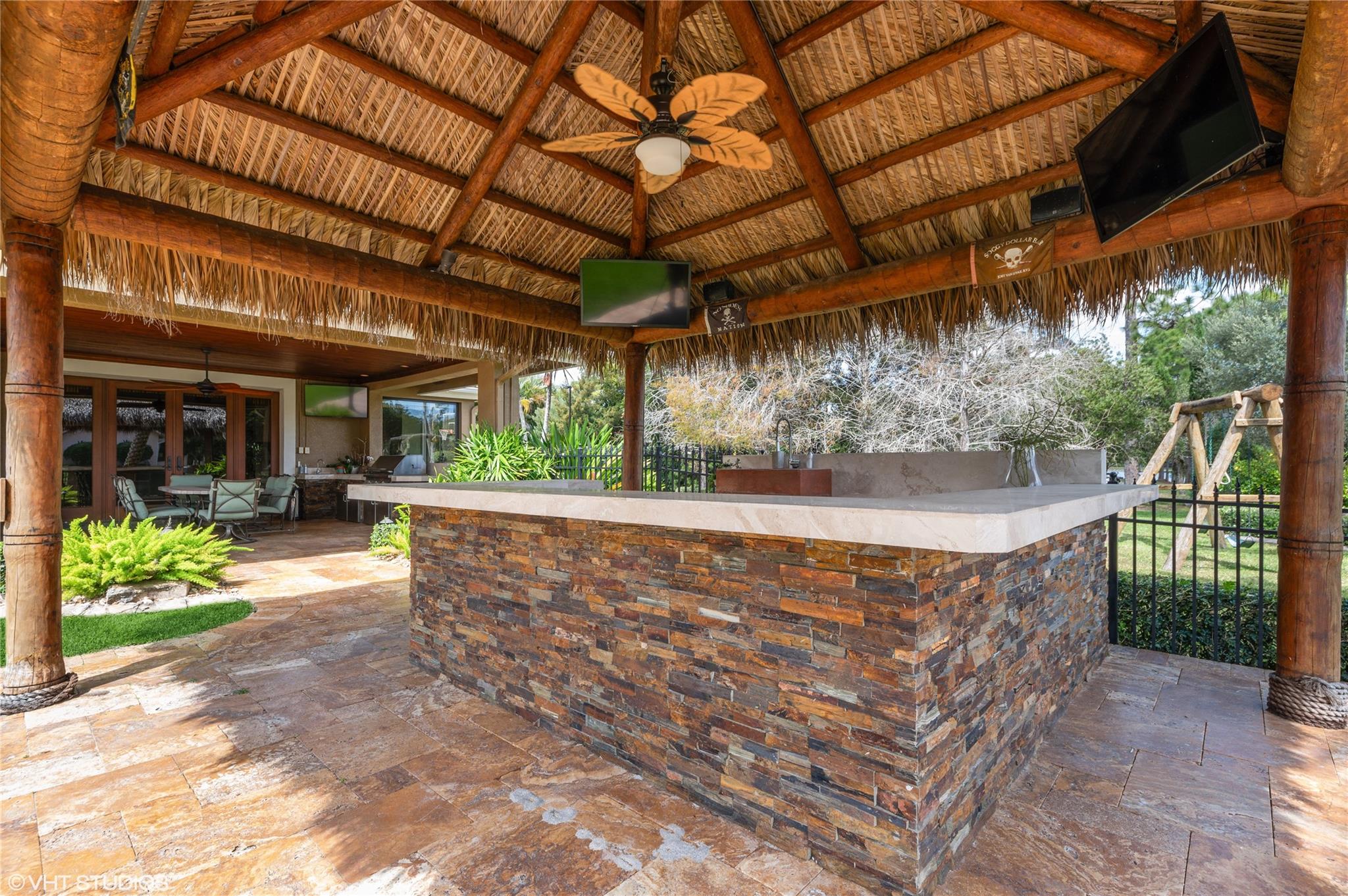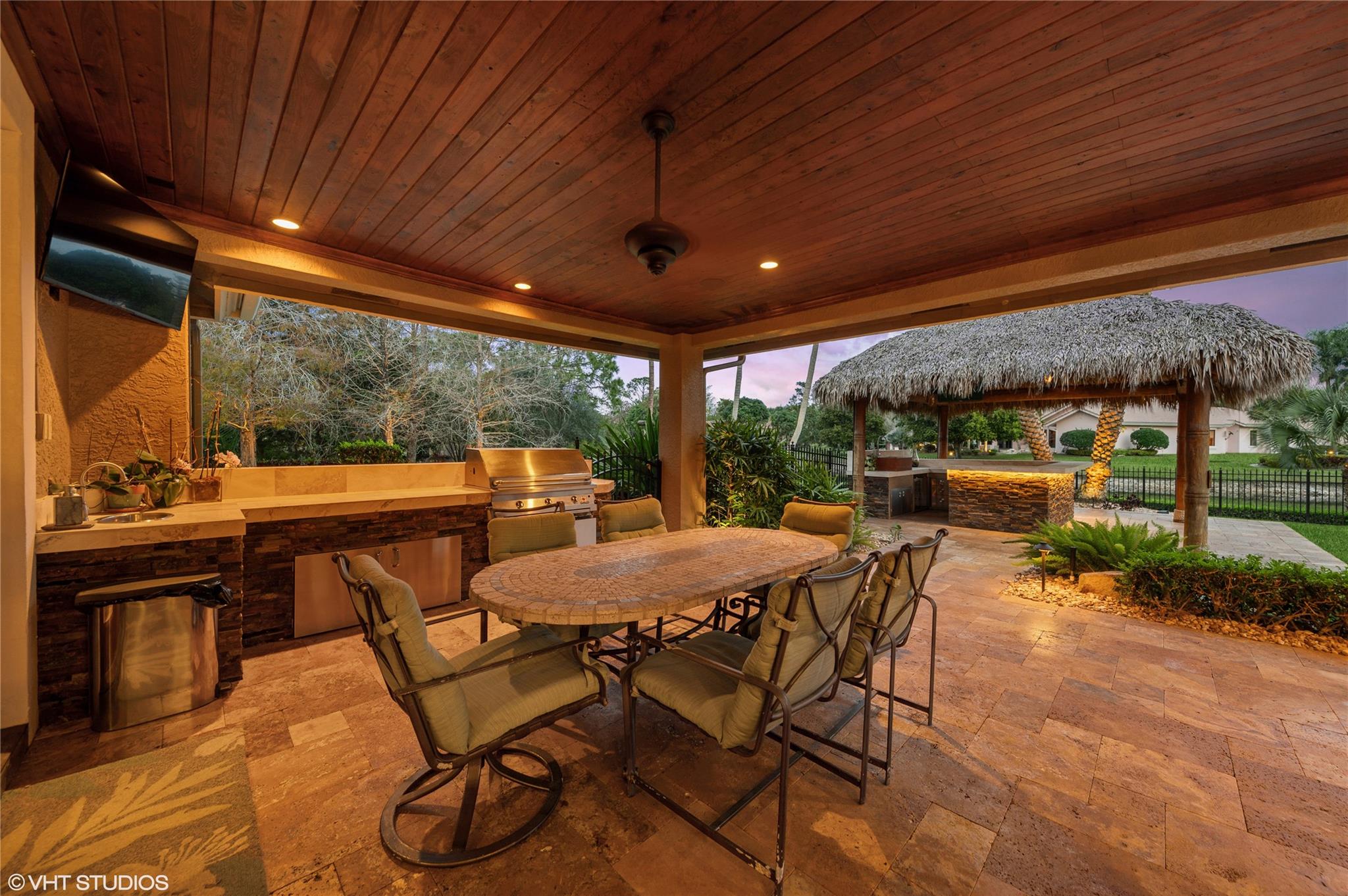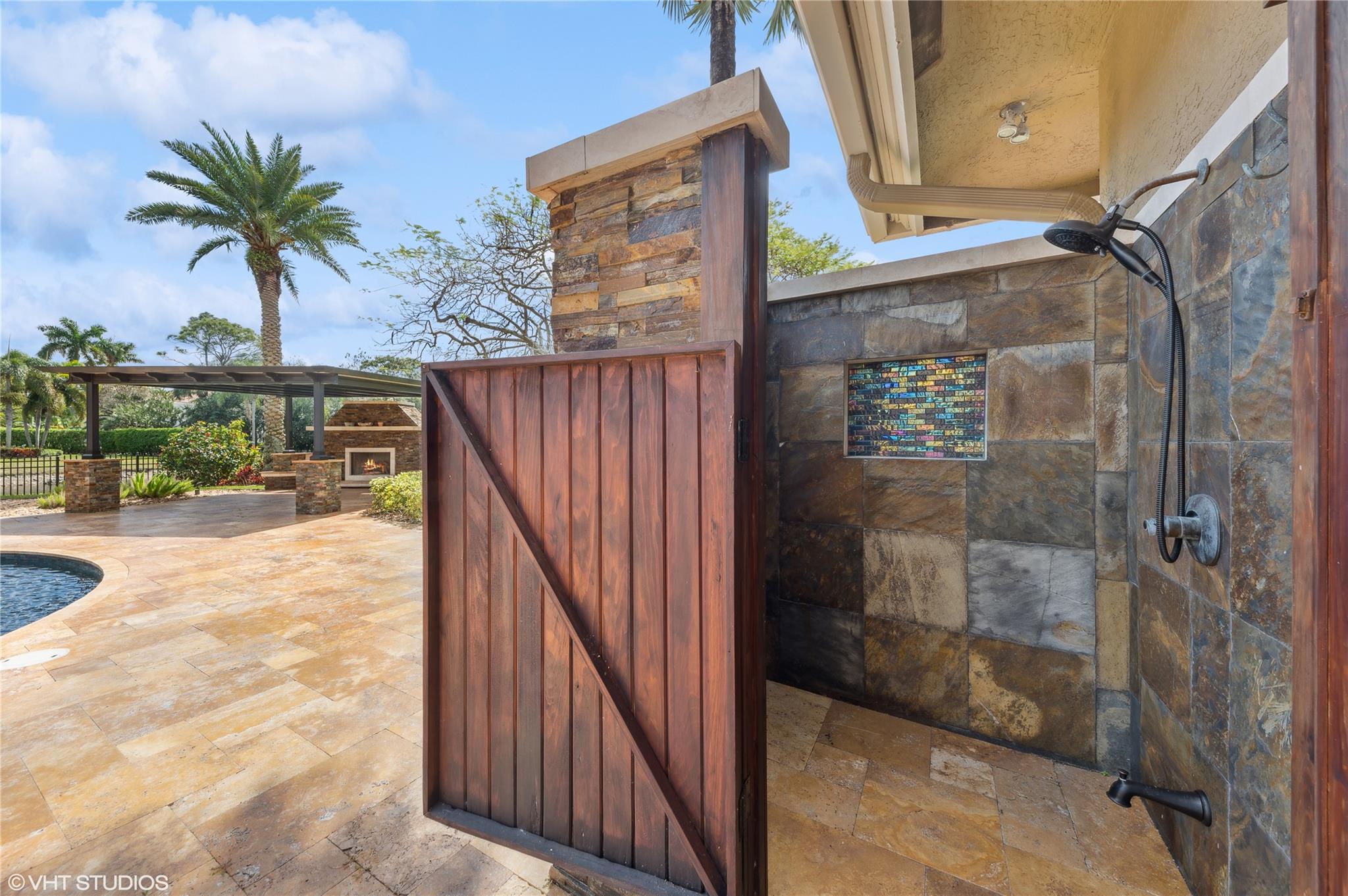 Indulge in unparalleled luxury on this 1 acre estate overlooking a stunning lake. 5 bed 5 bath over 6000 sq ft masterpiece boasts high-end finishes. Gourmet kitchen with a Sub Zero Refrigerator, Induction stovetop, Double oven & 2 Walk in Pantries. Separate bar to entertain w/ Sub Zero Wine Fridge. Enormous Media Room with Bar. Unwind in your lavish primary suite complete with a double bathroom, steam shower, Sauna, office and a private gym. Entertain w/ multiple covered patios, a resort style sparkling saltwater pool, Tiki area w/ TVs, Outdoor Kitchen, firepit & custom sport court. Water purifier and softener, 5 car garage. This home is the ultimate in indoor-outdoor living, creating a private oasis perfect for families who appreciate quality & tranquility. Make this dream home yours