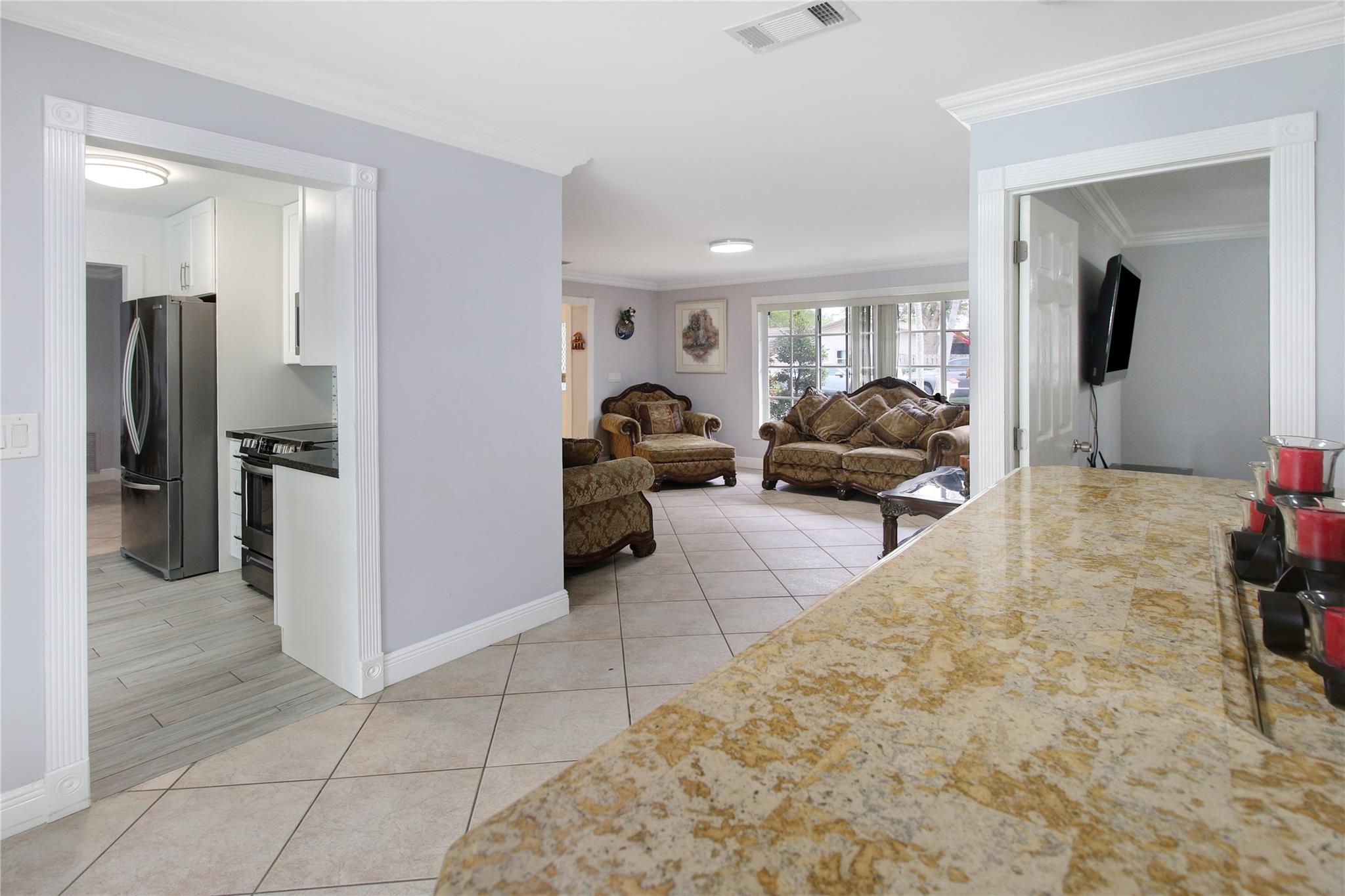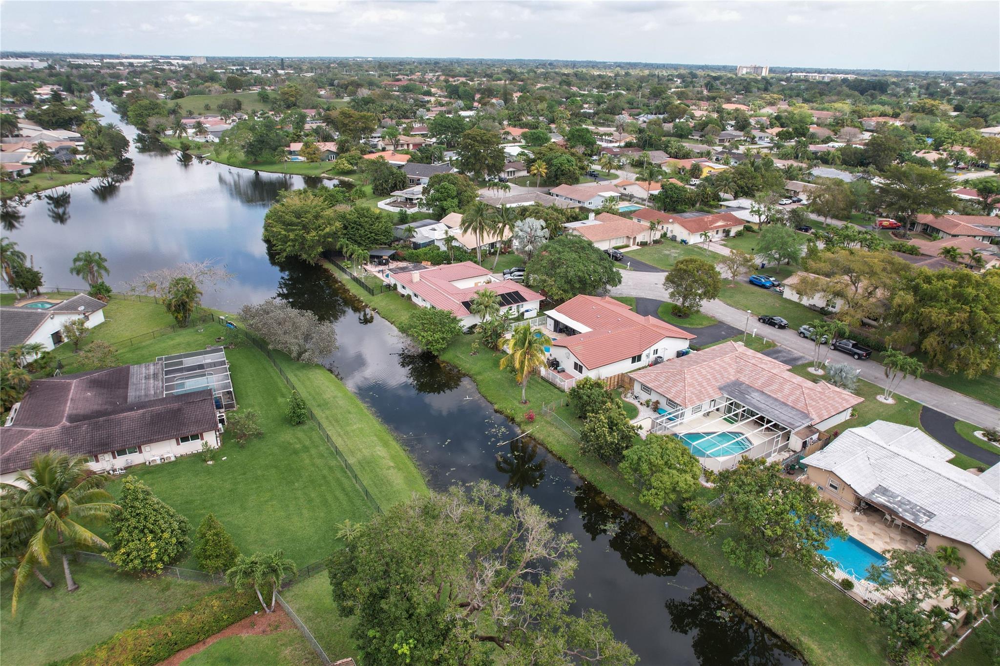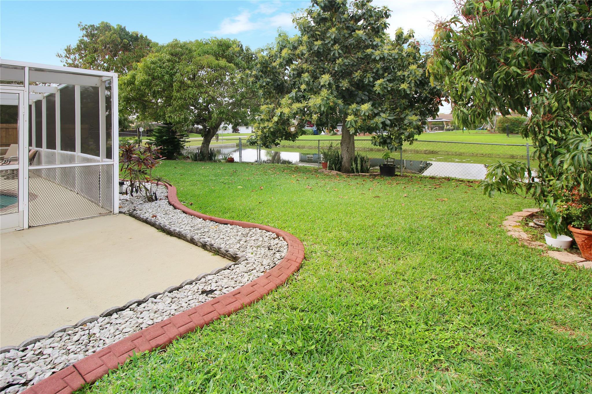 This is a wonderful 4/2 Waterfront Home in The Coral Springs Country Club. Recently painted, it has a lg living room w/ crown moulding. Recess Lighting. Tile floors throughout. Split bedroom. Large master bedroom, walk in closet and 2nd closet. Cabana bath in master upgraded 2023. 3 other bedrooms are large with good closet space and ceiling fans. 2nd bath recently upgraded; Double sink and 2nd cabana. The kitchen was remodeled in 2022. Stainless Steel appliances and Backsplash. Screened in Pool patio has stamped concrete. 2 ceiling fans & roll down for privacy. Lighted and diamond brite pool. Fenced for privacy. 3 large fruit trees. Mango & avacado. A/C 2019, tankless H/W htr, New electrical box. Hurricane panels for storm protection. This beautiful Home can be your forever Home.