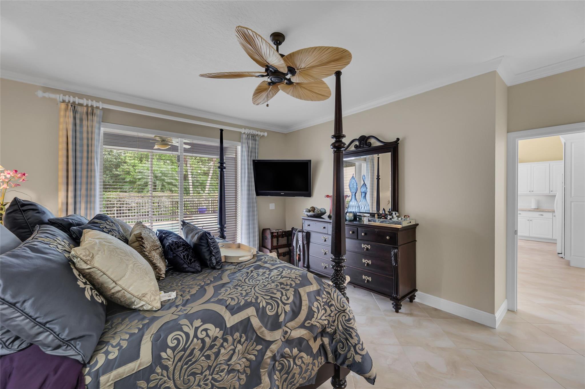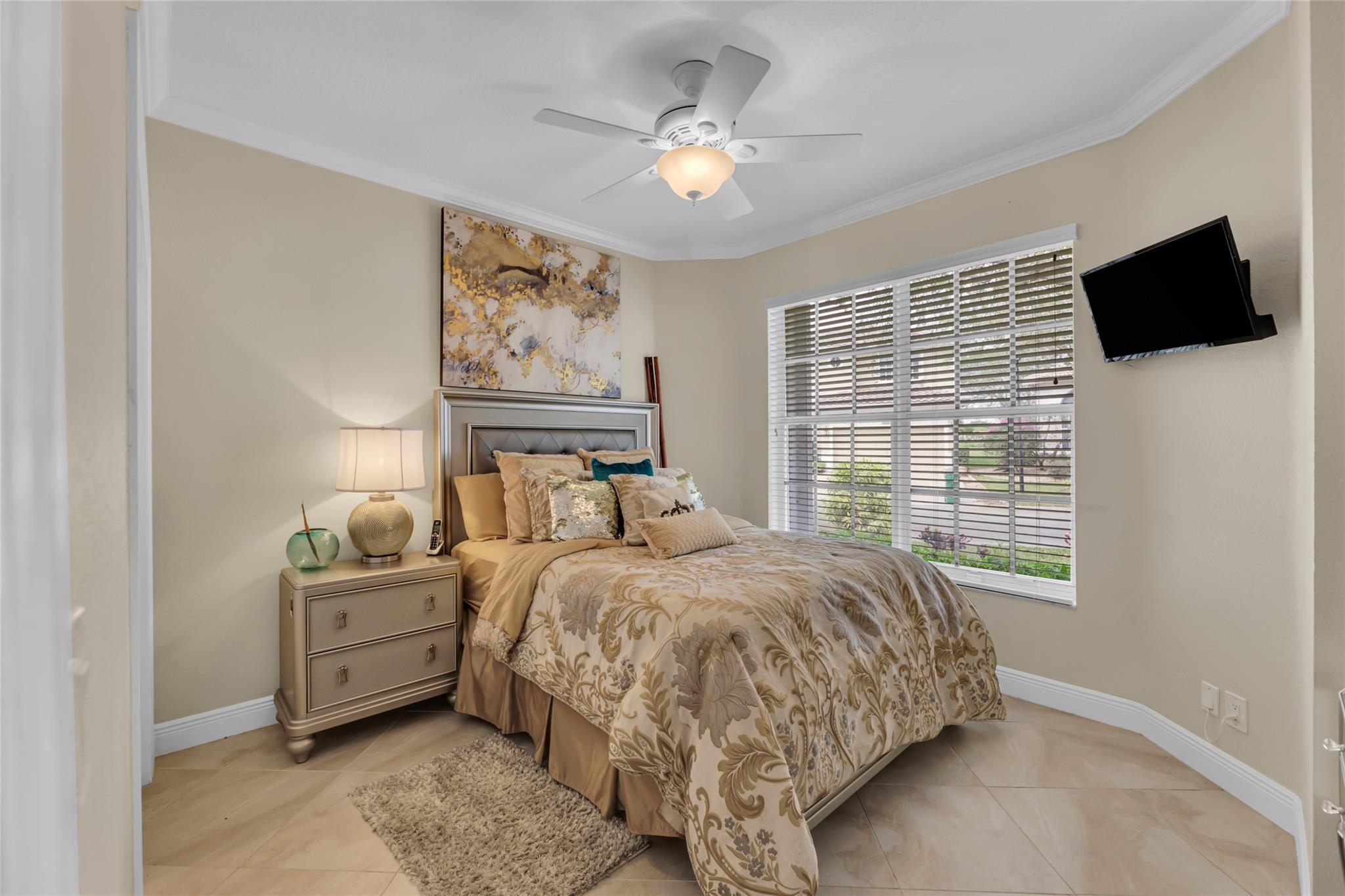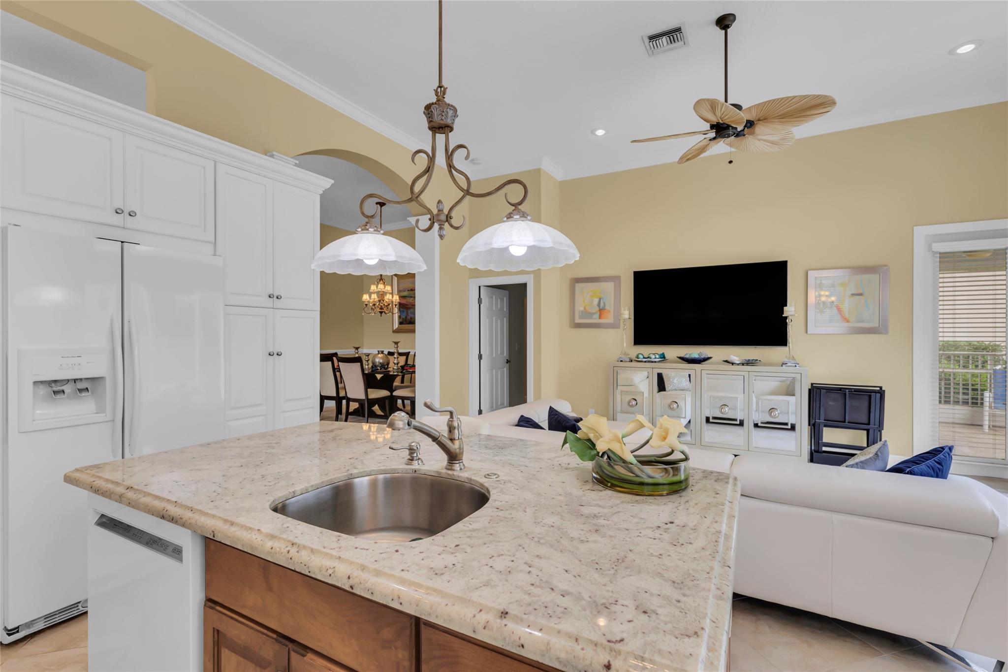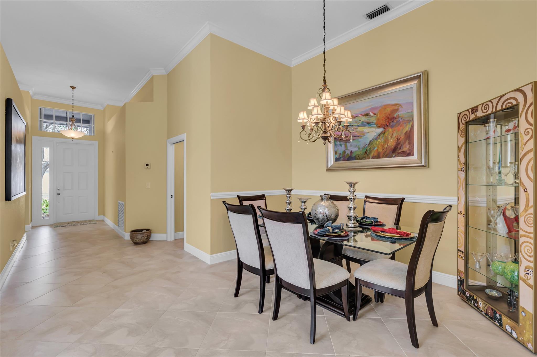 Beautiful 3 bedroom, 2 bathroom house in gated Eagle Trace golf community. Split floor plan includes: formal dining room, family room, and living room. High-vaulted ceilings and high-quality flooring throughout the home. All-white kitchen includes kitchen island, great for entertaining guests. Master bedroom has walk-in closet and spacious master bathroom. Screened patio has serene sitting area overlooking the pool. Fenced backyard is very private, surrounded by vegetation. The home features a 2-car garage with extra parking in the driveway and storm shutters for added safety. Amenities include: 24-hour security at gate entrance, basketball and tennis courts. This home is move-in ready!