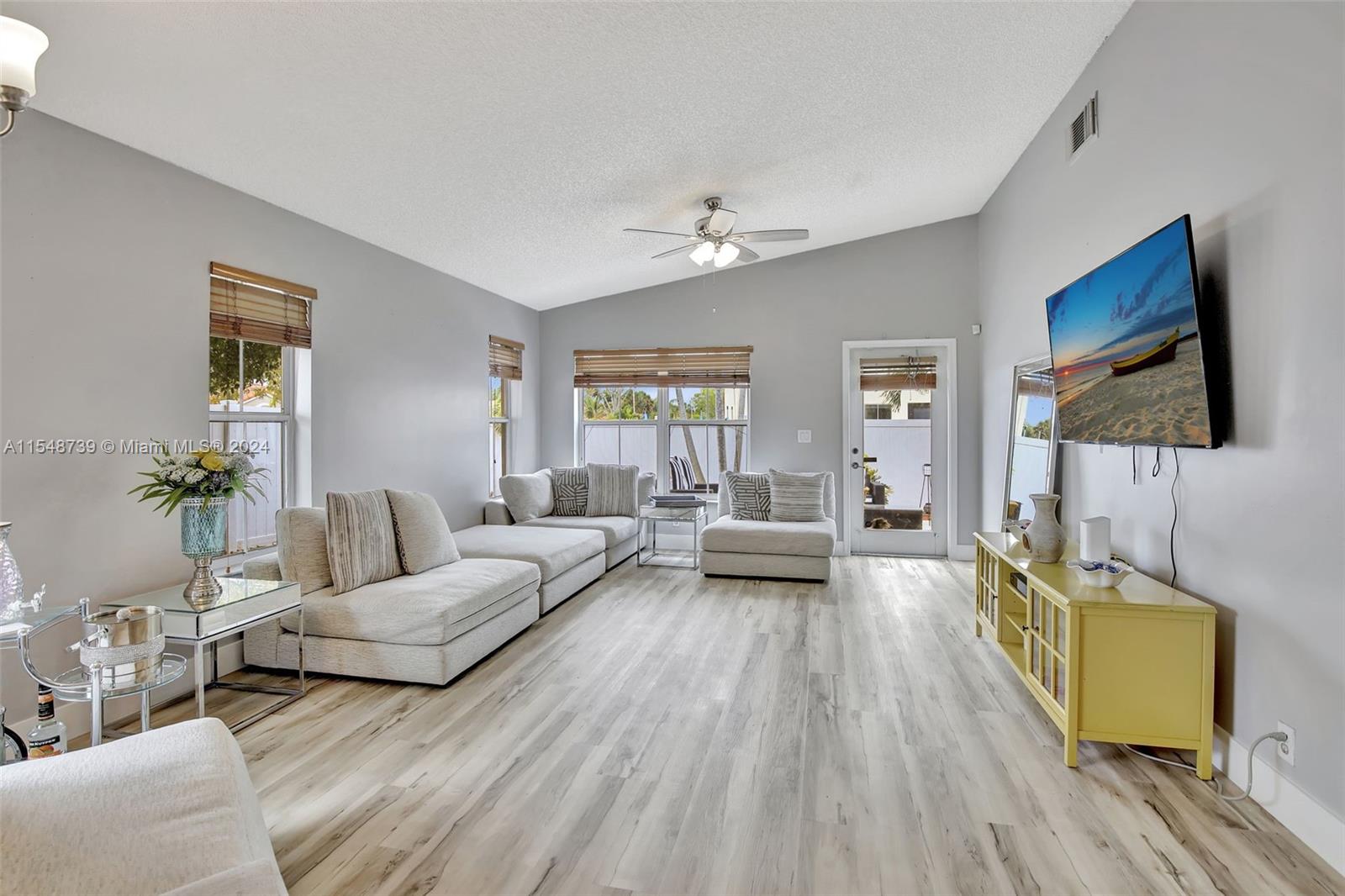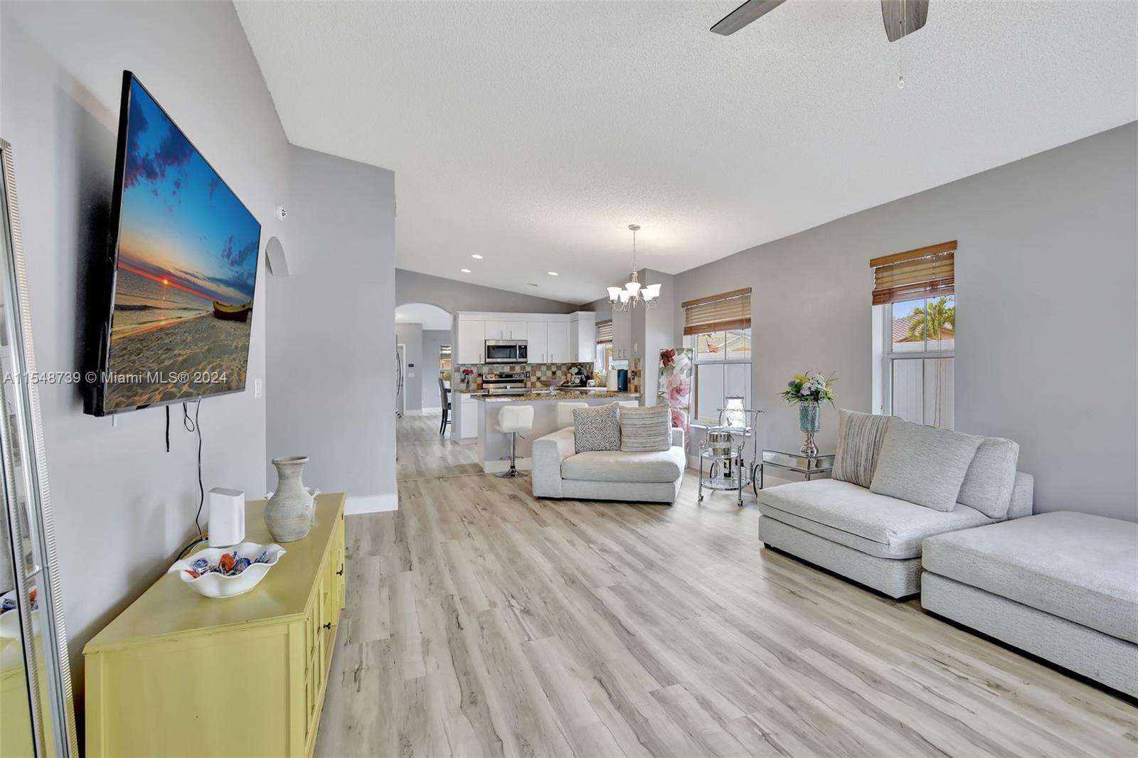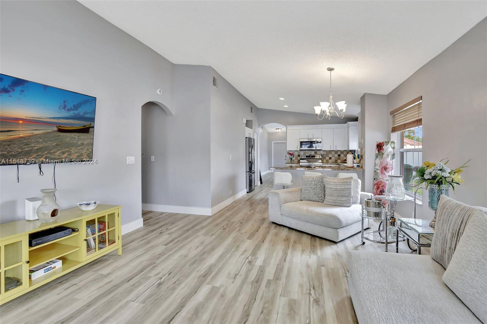 Beautifully maintained single-family home offers an open floor plan that radiates with natural lighting. This elegant home is located in a gated sub-division–Hidden Lakes in the desirable Chapel Trail Pembroke Pines. This home boast 3 bedrooms/2 remodeled bathrooms, walk-in closet, 2 car garage, dedicated laundry room, vaulted ceilings, new stainless-steel appliances, granite counter tops, white cabinets,new flooring throughout the entire house, new water heater, freshly painted exterior & interior, 6ft privacy fence, home warranty on all appliances. The fantastic backyard is your private oasis that provides a tropical feeling for incredible entertainment. Easy access to excellent A+ schools K-12, major highways, hospitals, restaurants, and many more. THIS IS A PERFECT PLACE TO CALL HOME!