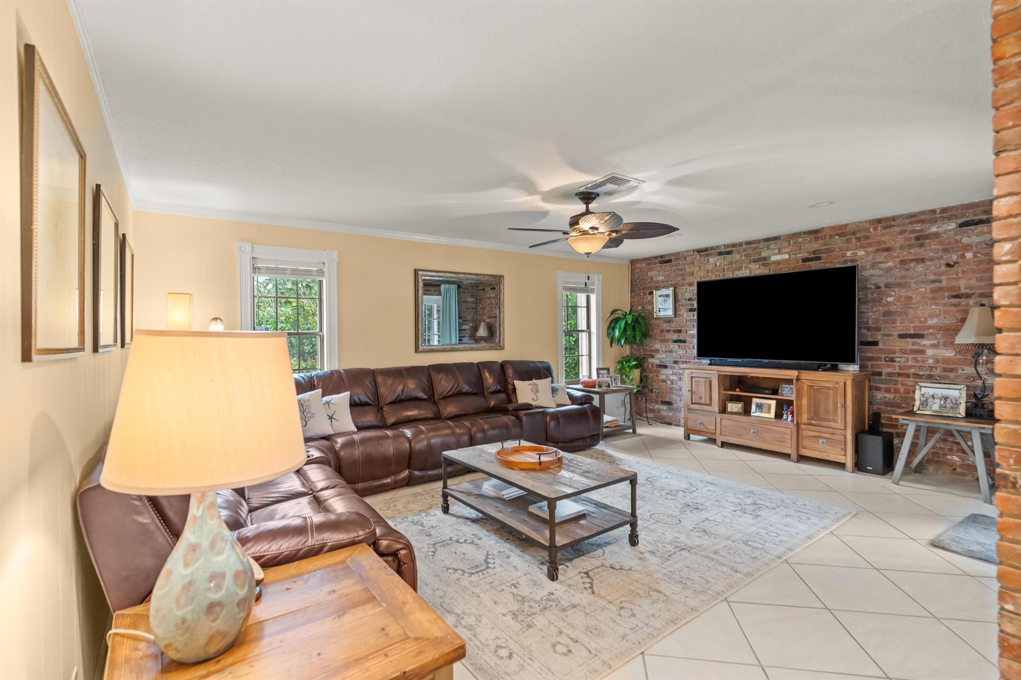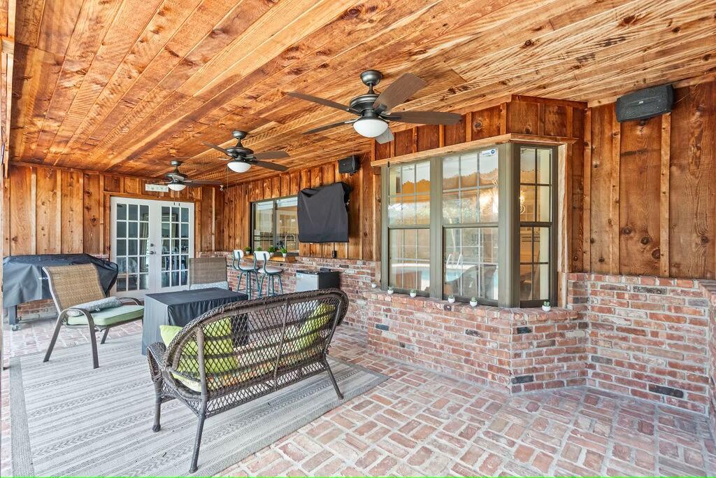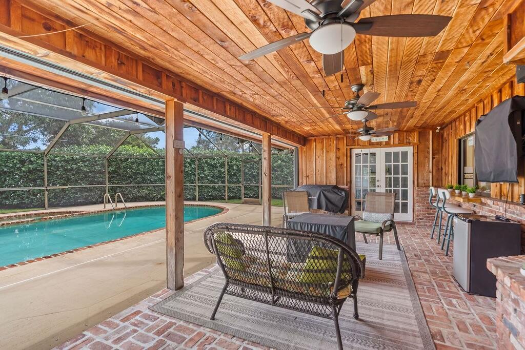 NEW ROOF & GUTTERS (June 2024) offering peace of mind and longevity.SOLID CONCRETE BLOCK CONSTRUCTION for durability and safety- built to last. Rustic Curb Appeal with decorative cedar wood siding and Chicago brick accents complement the robust block construction. STORM READY: Whole-house accordion shutters on all openings plus Hurricane Rated garage door and side door provide quality protection and security. Other features include:* A 250-gallon propane tank powers select appliances, including a tank-less gas water heater to enjoy efficient hot water on demand *Reliable Cooling: Carrier AC installed in 2020