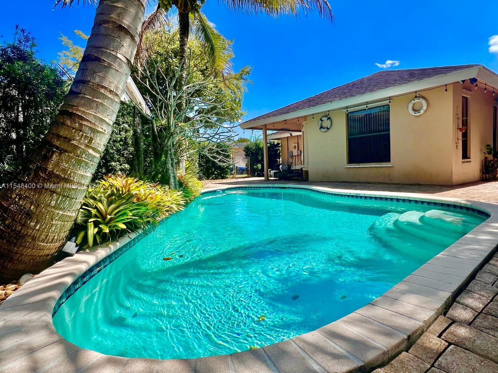 Welcome to your new oasis! Nestled in a tranquil cul-de-sac, this charming single-family pool home beckons with its 2023 AC unit, ensuring comfort year-round. Privacy is paramount here, with no rear neighbors and a secluded backyard providing the perfect backdrop for uninterrupted relaxation. Step inside to discover 3 beds, 2 baths, and a master bedroom boasting an enviable walk-in closet. A+ schools nearby ensure an exceptional education for your family, while a fumigation system offers peace of mind Outdoor living is a dream with backdoor access to a serene canal and a professionally designed private pool awaiting your enjoyment. Adding both sophistication and functionality, the California Closets design enhances every corner of this home.