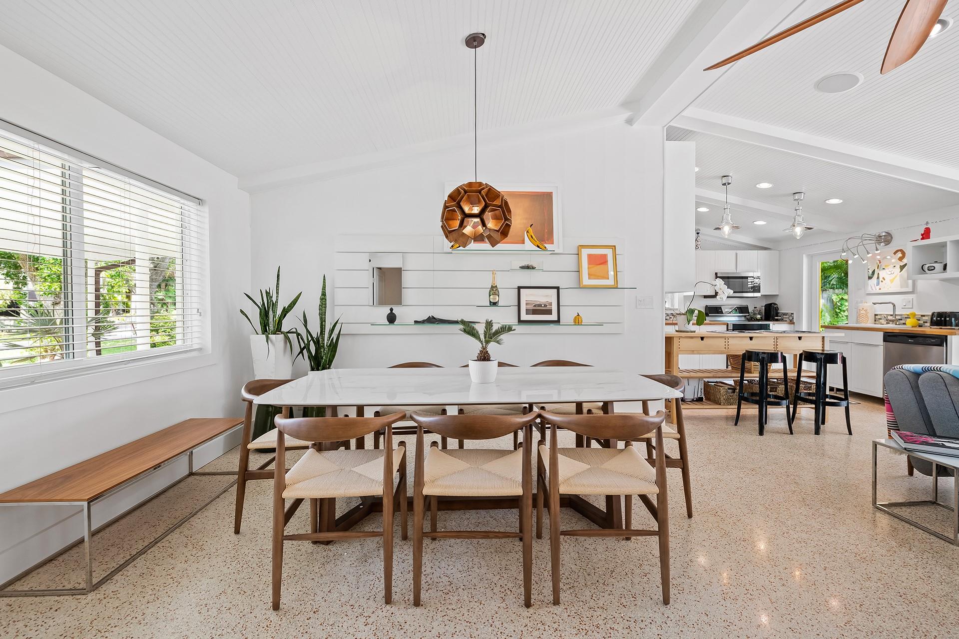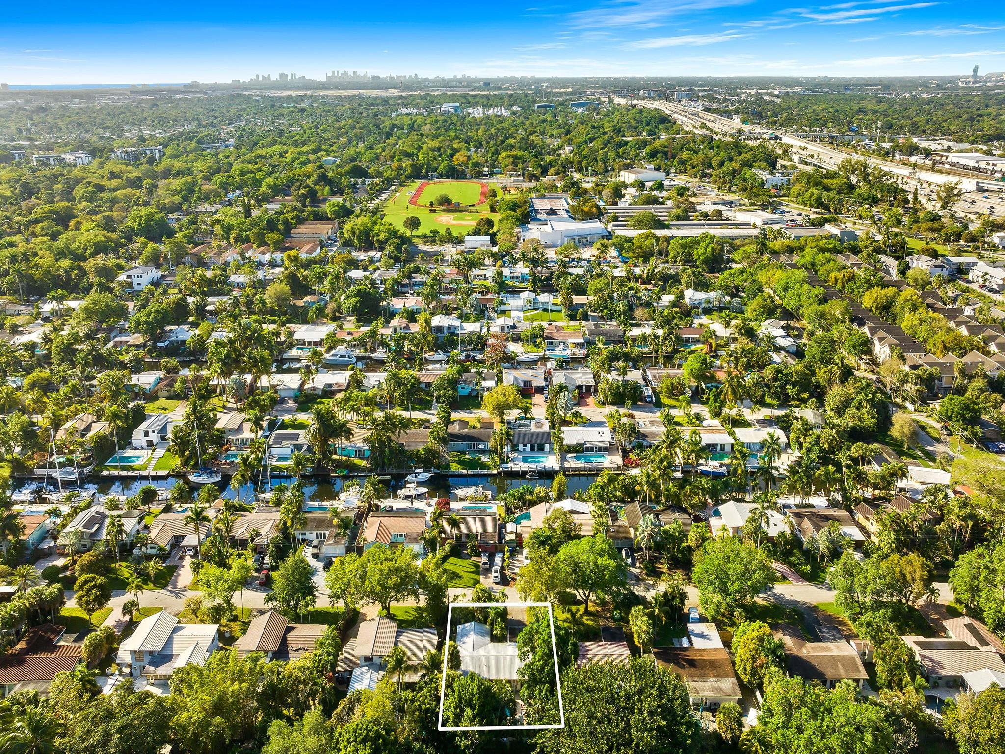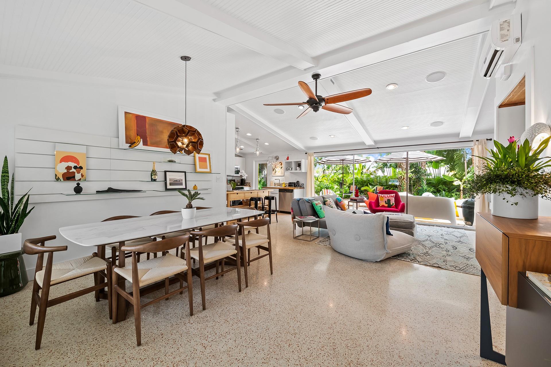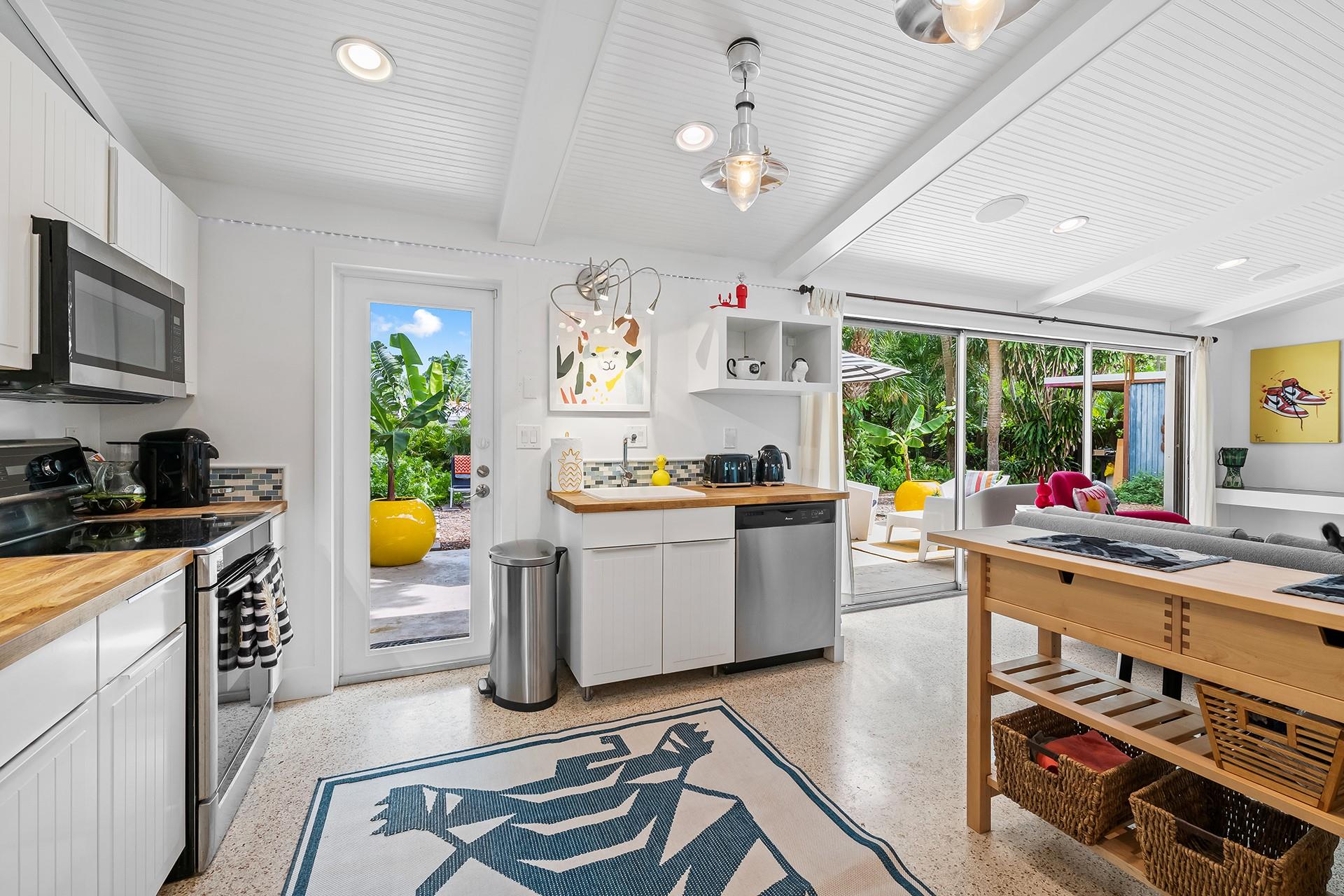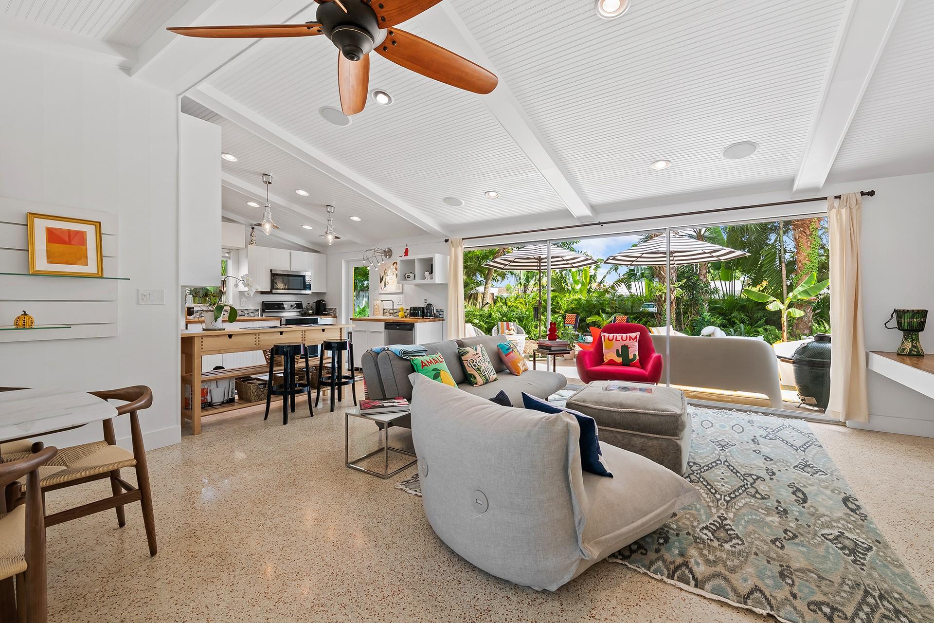 New price reduction for immediate sale! Mid-century modern home meets contemporary! Welcome to tranquil private retreat w/ interior designer finishes. This charming one story villa is an Oasis of nature with many mature palms and gorgeous oak tree! Great opportunity for investors as the house is licensed for short term rental w/ verifiable numbers. $150k spent on upgrades in 2023! Some of the features include: brand new baths, new PVC pipes, brand new AC units, impact doors and windows, salt water heated pool with underwater LED lights, polished original terrazzo floors, new landscaping, new metal roof, iPhone controlled smart home system, cameras & sound system and many more! - all minutes from downtown, Brightline and I-95 in park like setting of prestigious Gill Isles neighborhood.