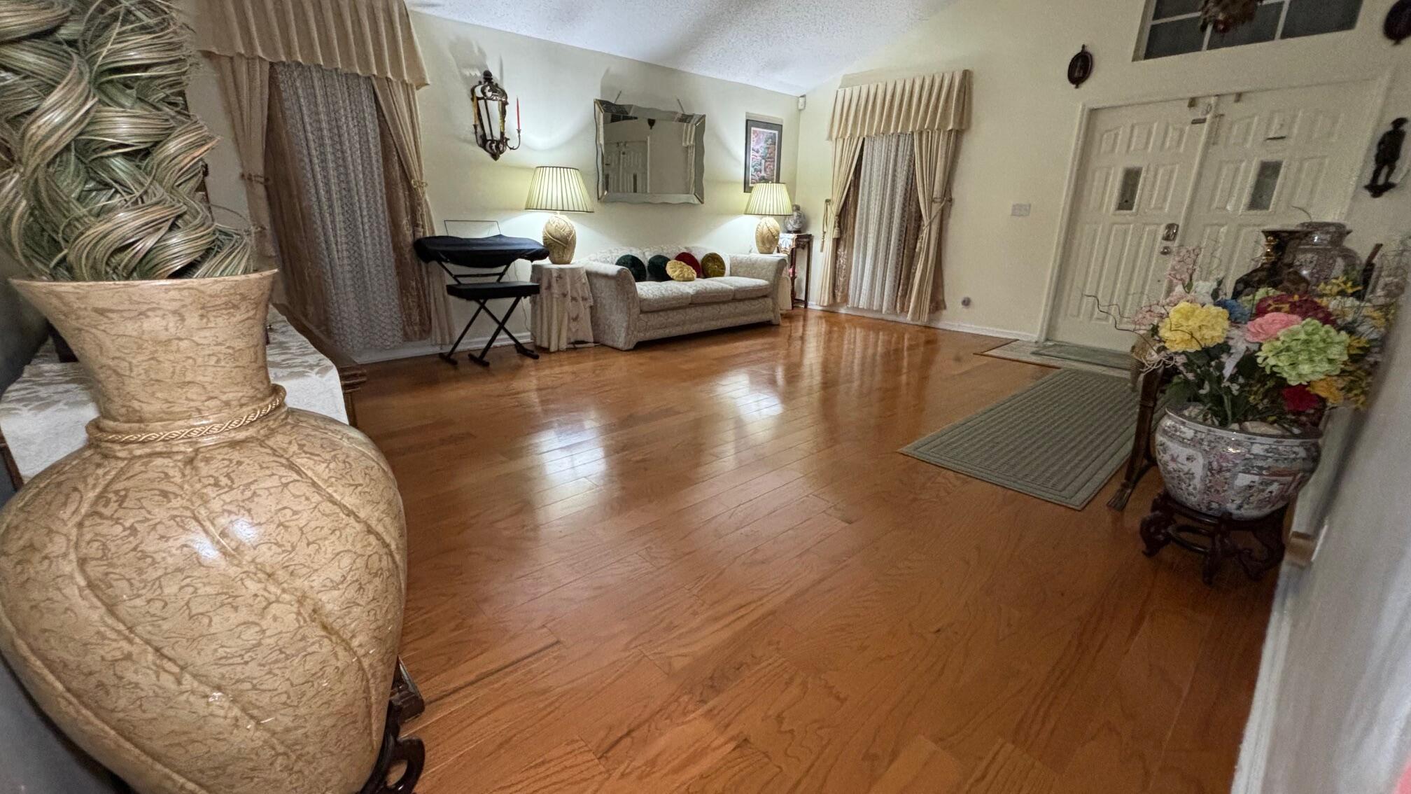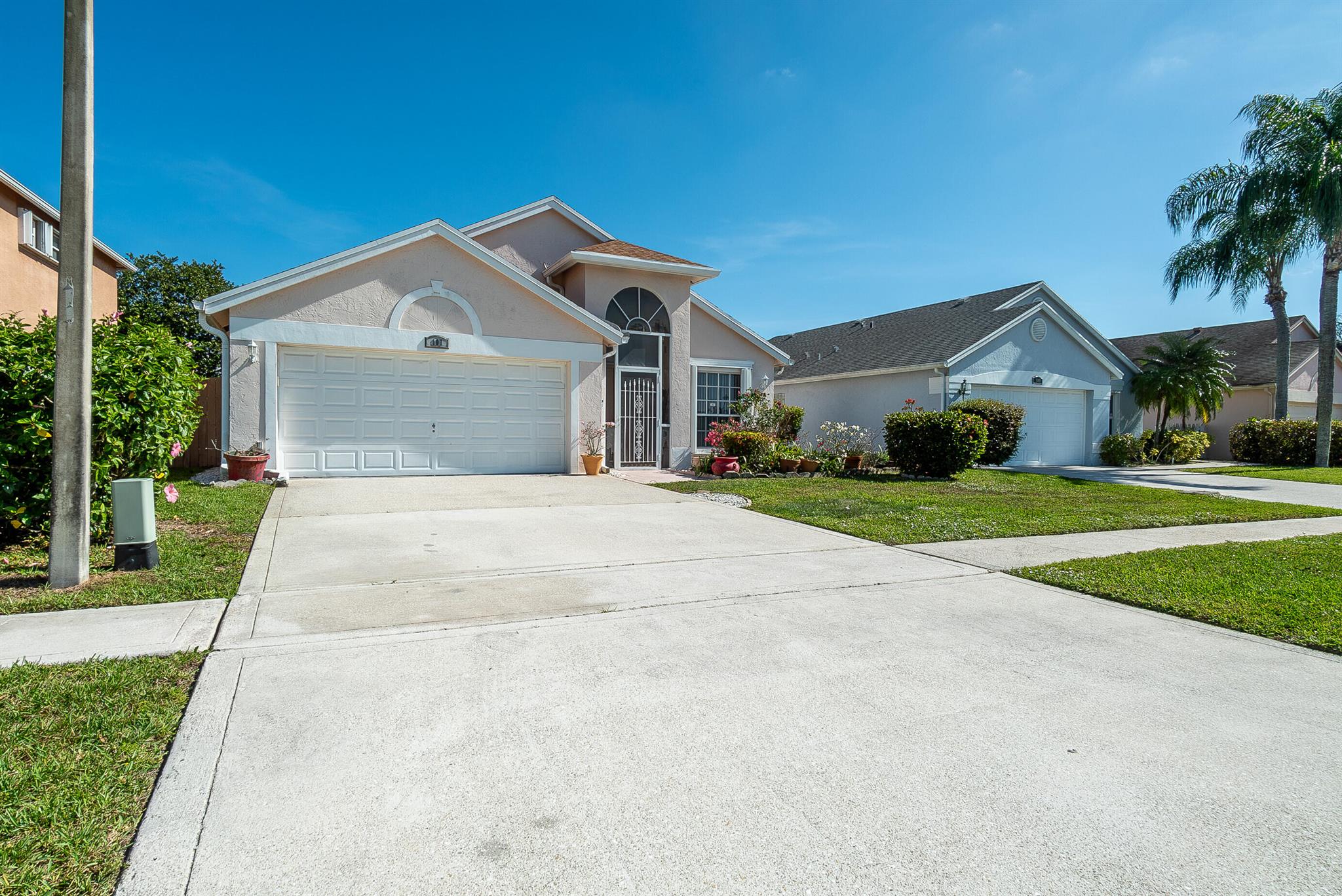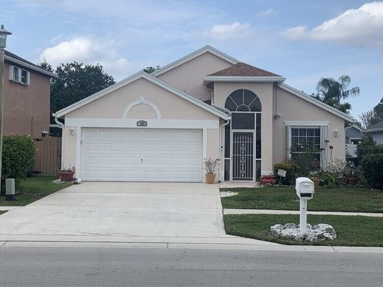Beautiful Saratoga Lakes Home in Royal Palm Beach, Florida. Featuring 3 beds, 2 baths, and 1673 sq ft. Highlights include a covered lanai, screen enclosure, & a tiled outer screed patio. New Roof 2016 with leaf guard on the gutters, kitchen updated 2022. Hardwood Flooring and Tile throughout. Hot Water Heater 2017. A/C 2016. Enjoy the community amenities, pool and tennis courts just across the street. Plus the convenience of being next to the Madison Green Golf Course only a 2 minute drive. Only a 20-minute drive from West Palm Beach Airport and 34 minutes to the Brightline Train for easy access to Miami or Orlando. 15 minutes drive to the Florida Fairgrounds. Shopping and Dining options nearby. Don't miss out on this opportunity to live near everything you need!