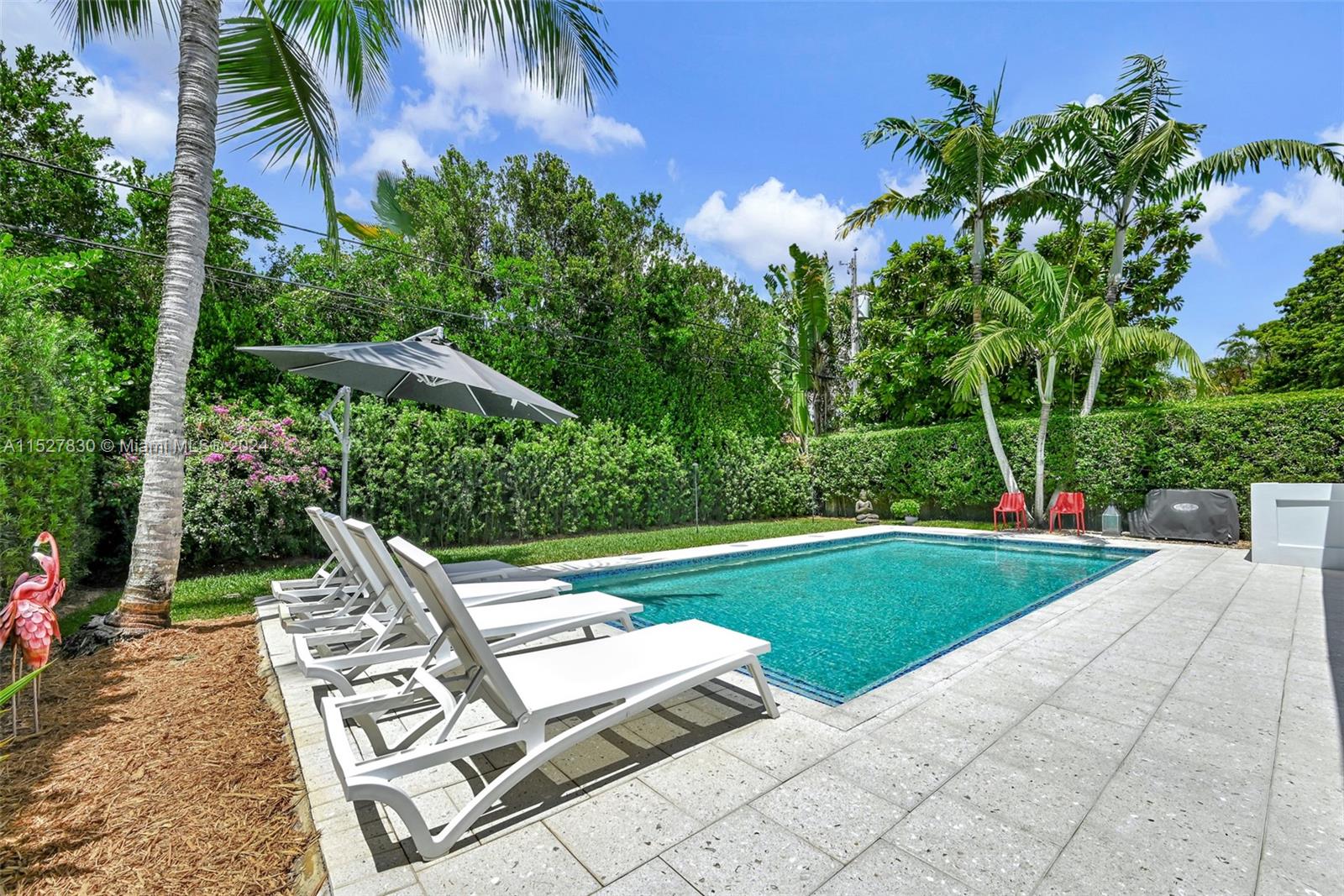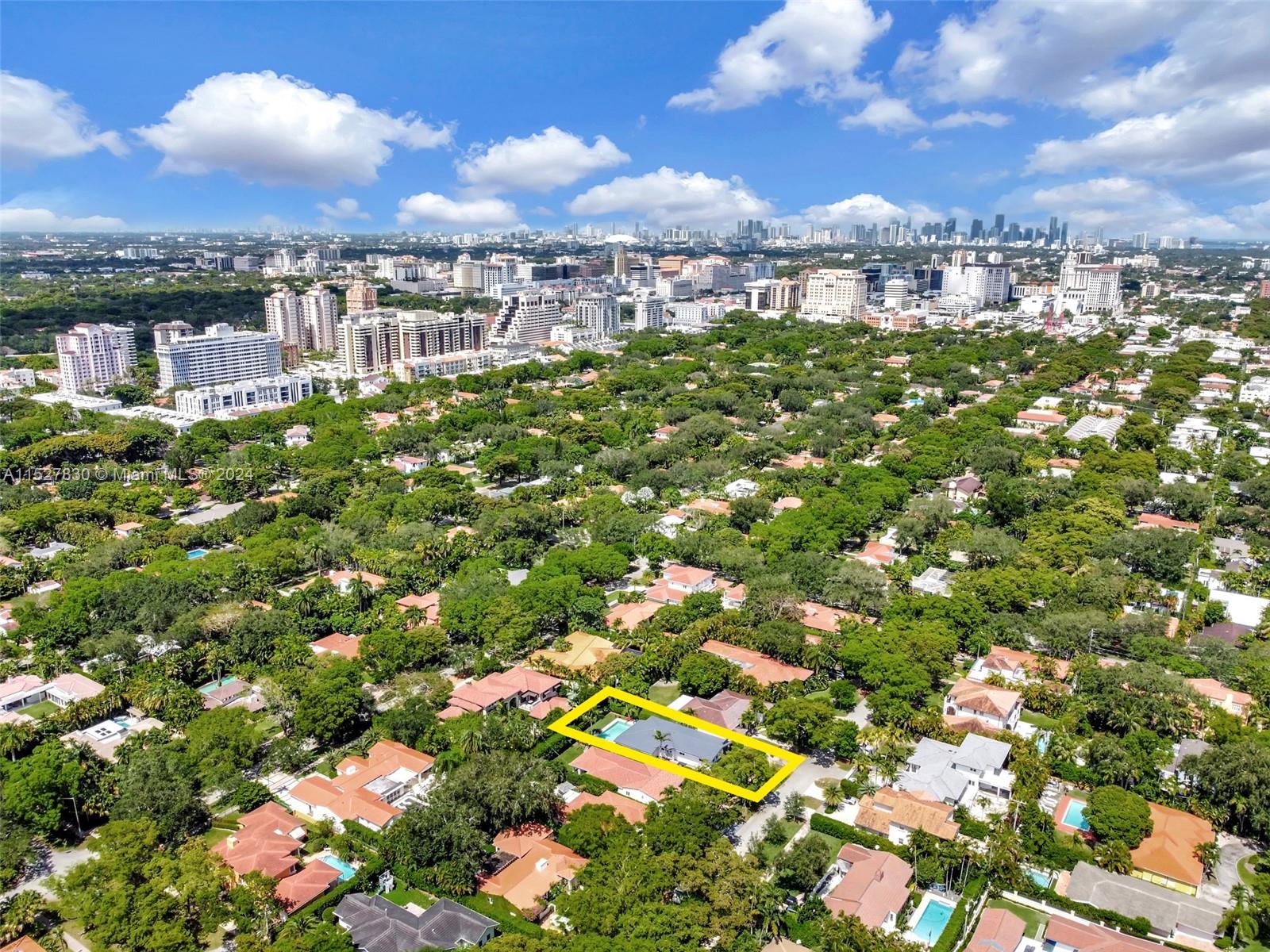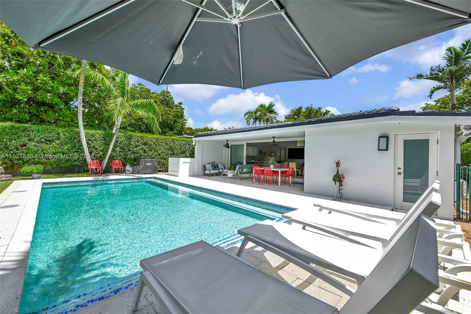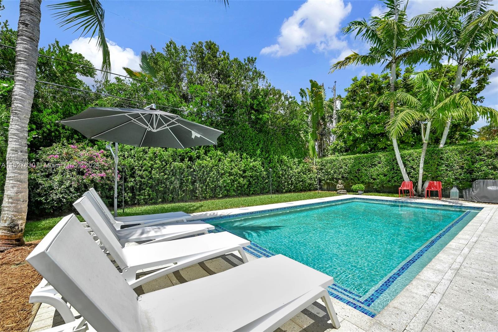 Excellent opportunity to own this modern home on prime location of coral gables golden triangle steps from Biltmore Hotel. Located in much desired tree lined street within walking distance to parks, recreation, markets and downtown coral gables. House has been updated with new bathrooms, high impact windows,italian kitchen with Miele and Sub zero appliances, bright spaces with separate dining, living and extra area to entertain. One car garage. Walk into a foyer which separates both entertaining spaces and your private 3 bedroom suites with many closet space. Walk out to private terrace/patio area from both dining living through wall to wall glass modern sliding doors combining the inside with the outside of home. Salt water pool and patio is privately fenced with surrounding landscaping.