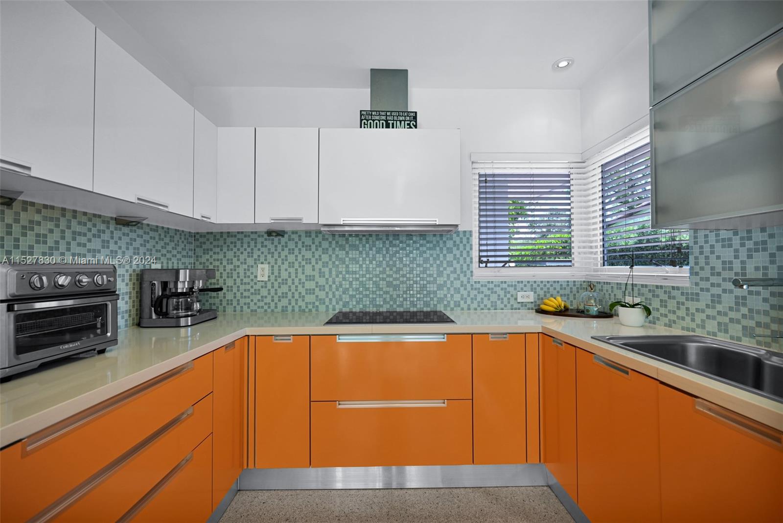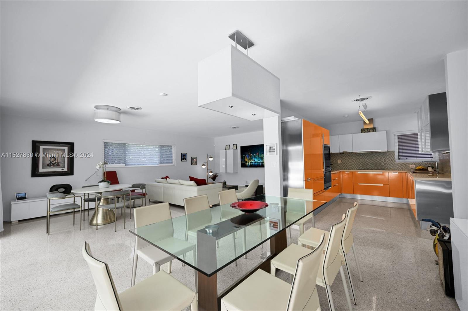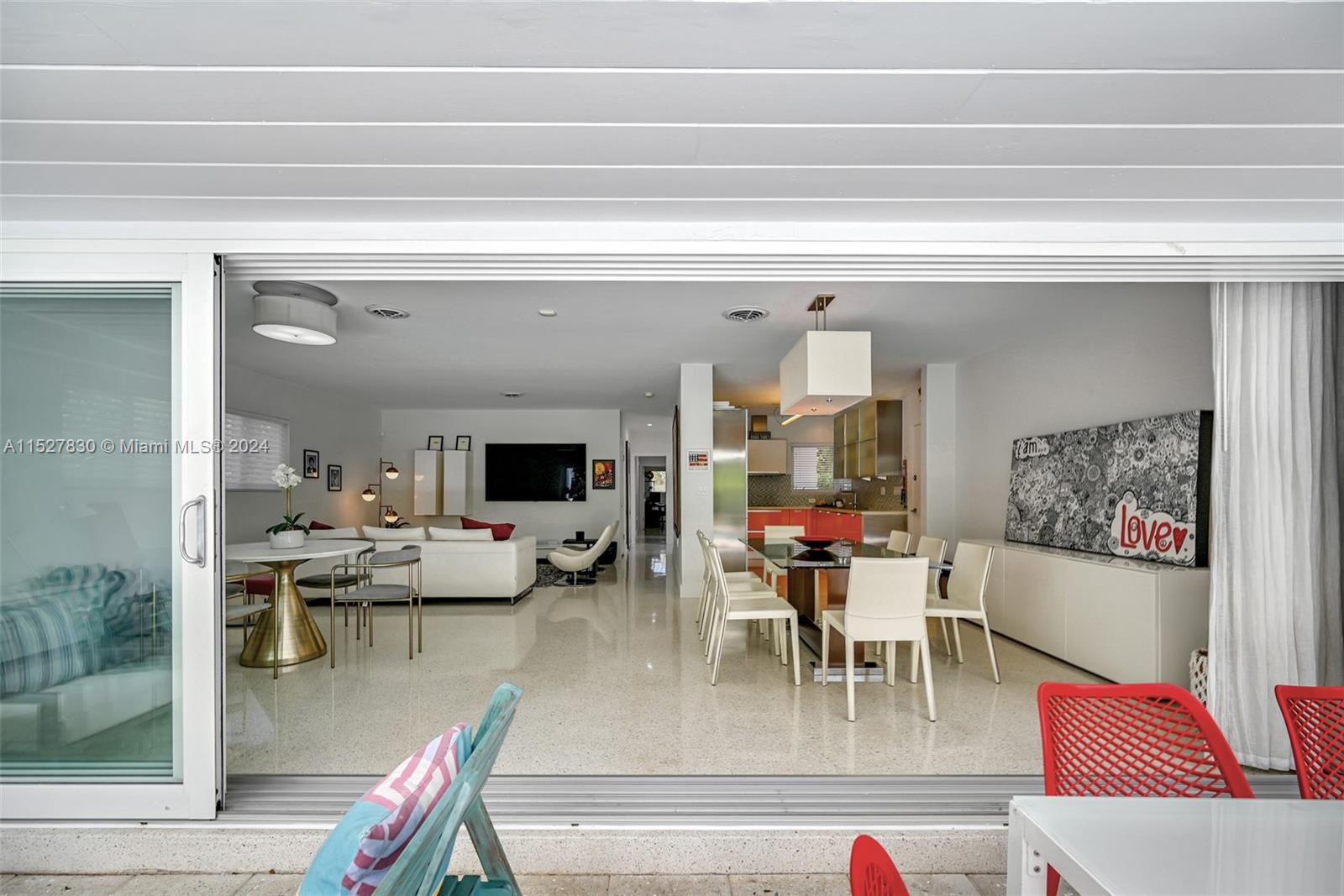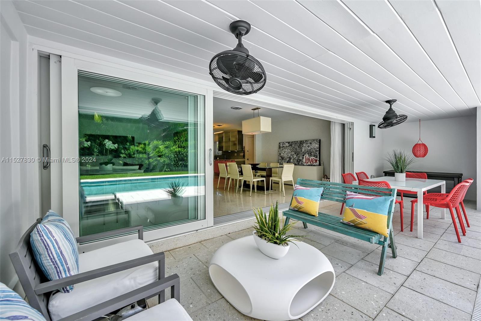 Excellent opportunity to own this modern home on prime location of coral gables golden triangle steps from Biltmore Hotel. Located in much desired tree lined street within walking distance to parks, recreation, markets and downtown coral gables. House has been updated with new bathrooms, high impact windows,italian kitchen with Miele and Sub zero appliances, bright spaces with separate dining, living and extra area to entertain. One car garage. Walk into a foyer which separates both entertaining spaces and your private 3 bedroom suites with many closet space. Walk out to private terrace/patio area from both dining living through wall to wall glass modern sliding doors combining the inside with the outside of home. Salt water pool and patio is privately fenced with surrounding landscaping.