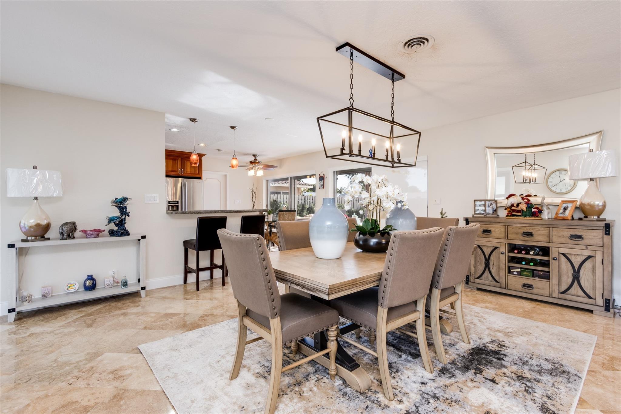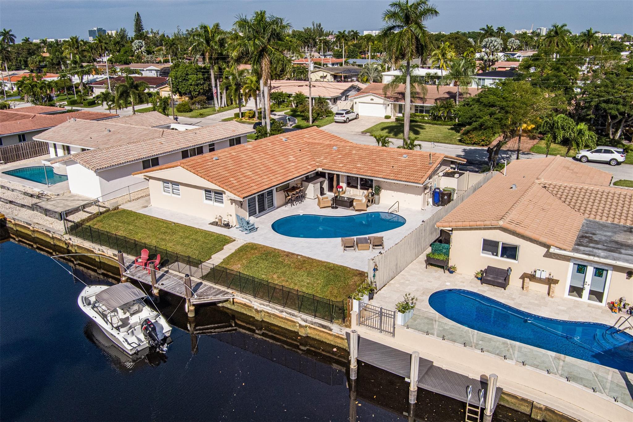 Highly desirable CORAL RIDGE ISLES neighborhood minutes from Pine Crest School. This home sits on a beautiful waterfront and just mins to the intercoastal. From floor to ceiling nothing has been left out. This home has been upgraded starting with the outside being painted, new gutters, tiled porch and the carport. New fence on both sides of home, solar lighting on fence & dock. Inside you have NEW 4ton A/C with blue light, electrical box, 40 gal hot water heater, washer/dryer, with impact sliding doors & window, 2nd bath completely remodeled with impact window, Primary bamboo, in other 2 bedrms laminated floor. Impact front door. Plumbing lines cleaned with new lining. Out back NEW marble tile around pool & patio pool was re-marcited , 100 ft seawall, 24ft dock. Boat negotiable. MUCH MORE.