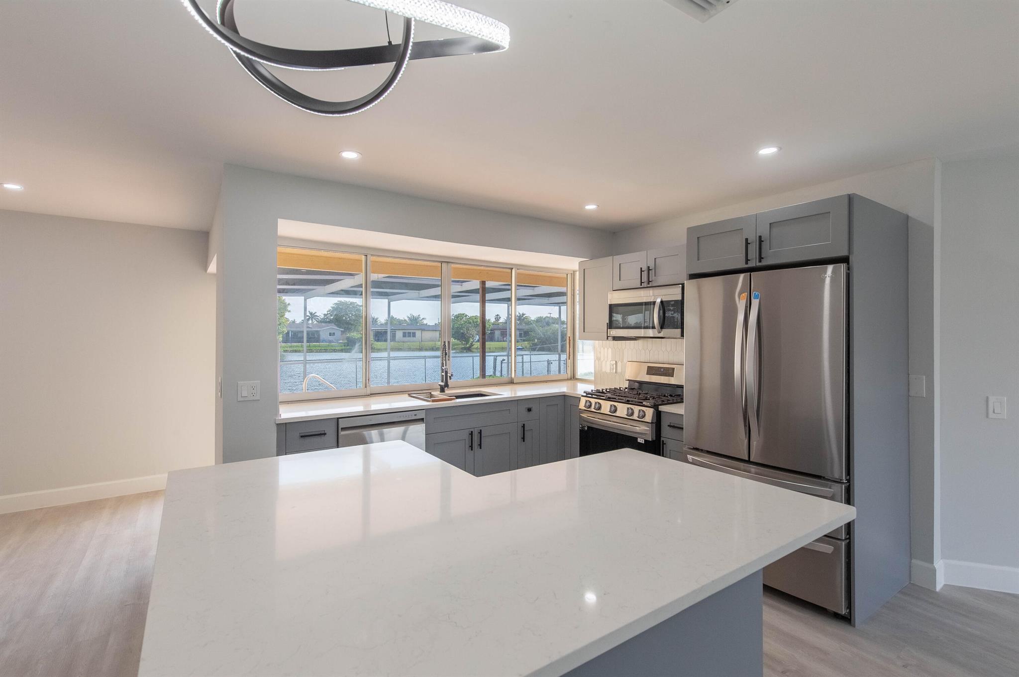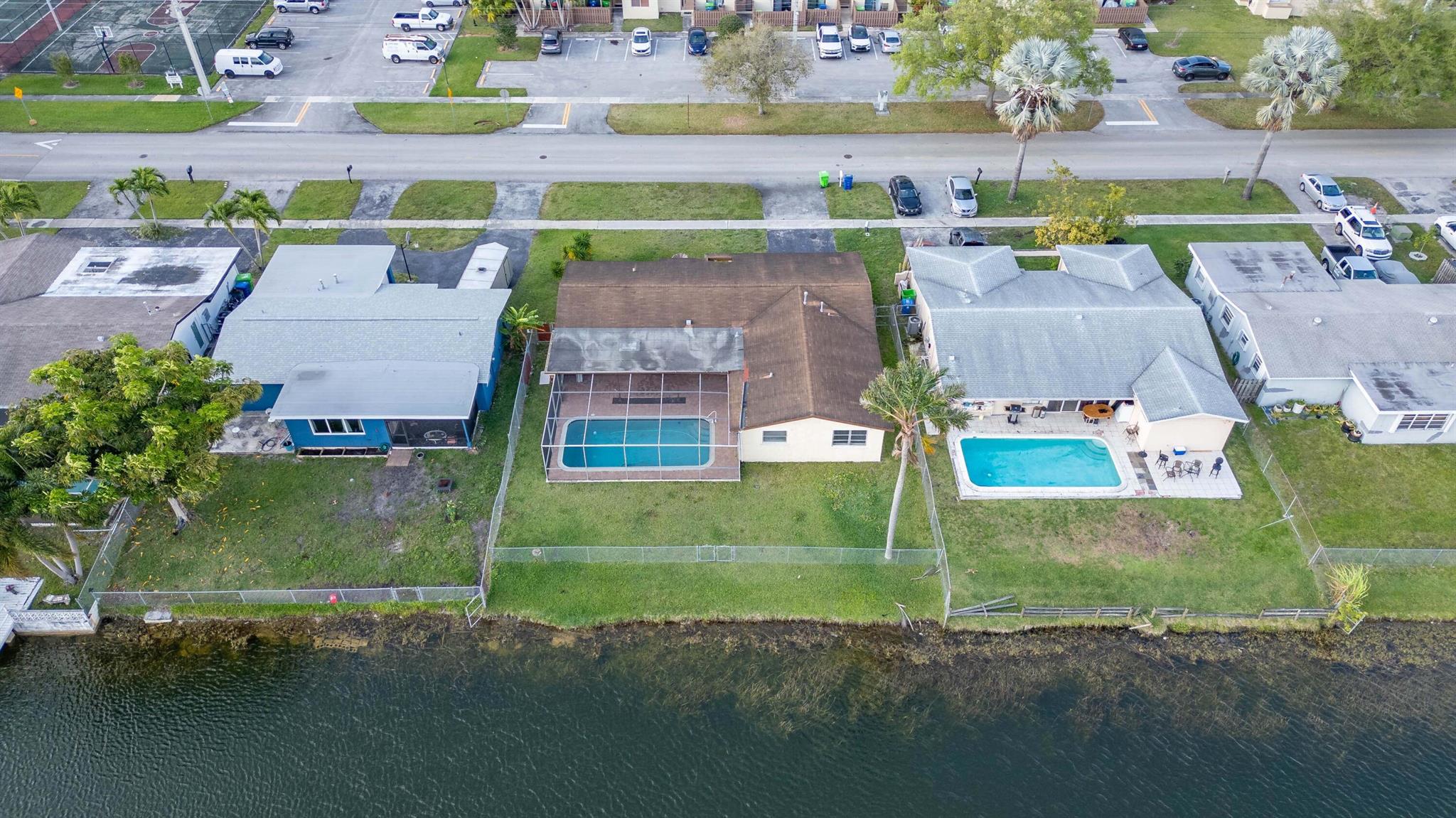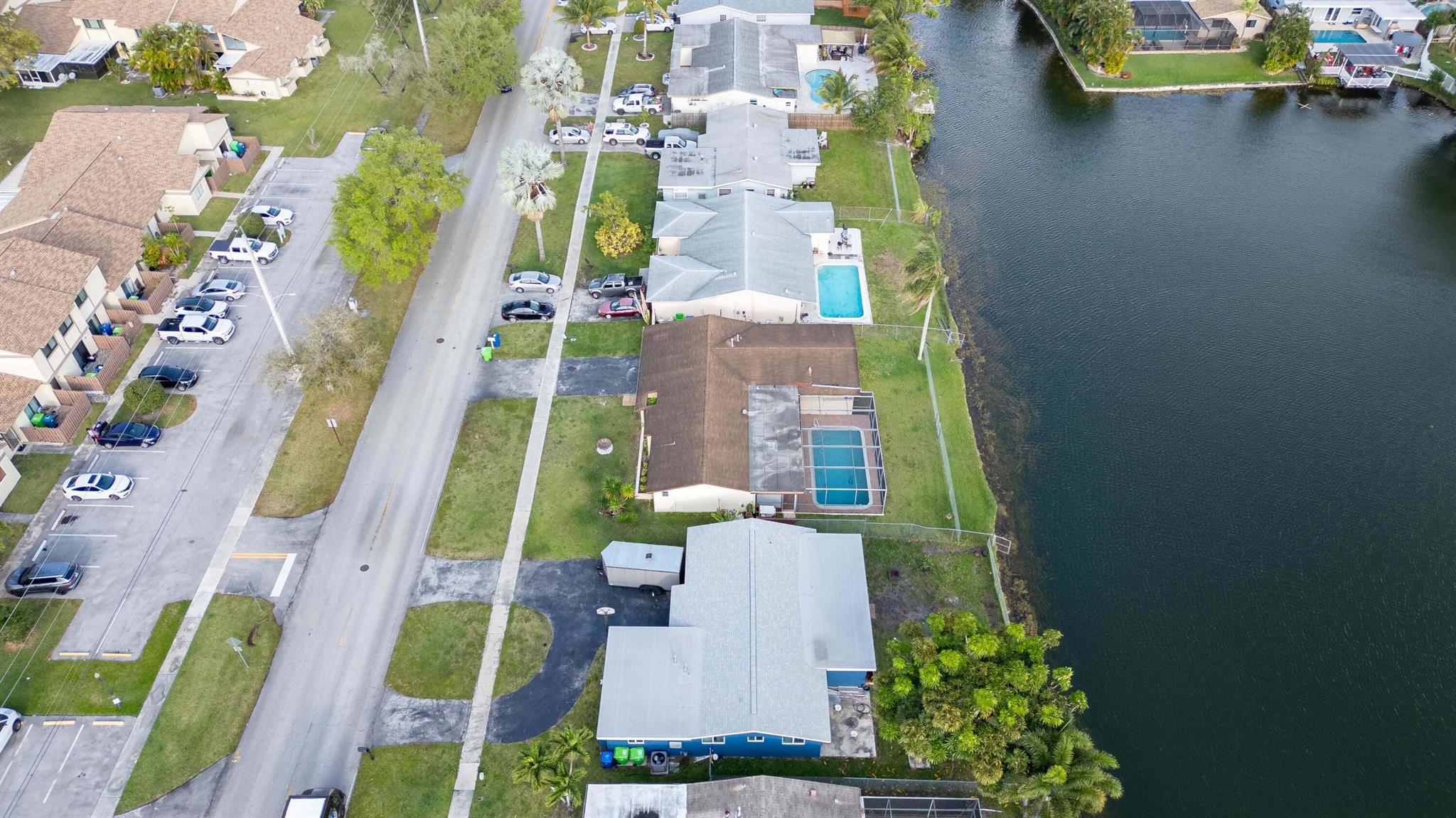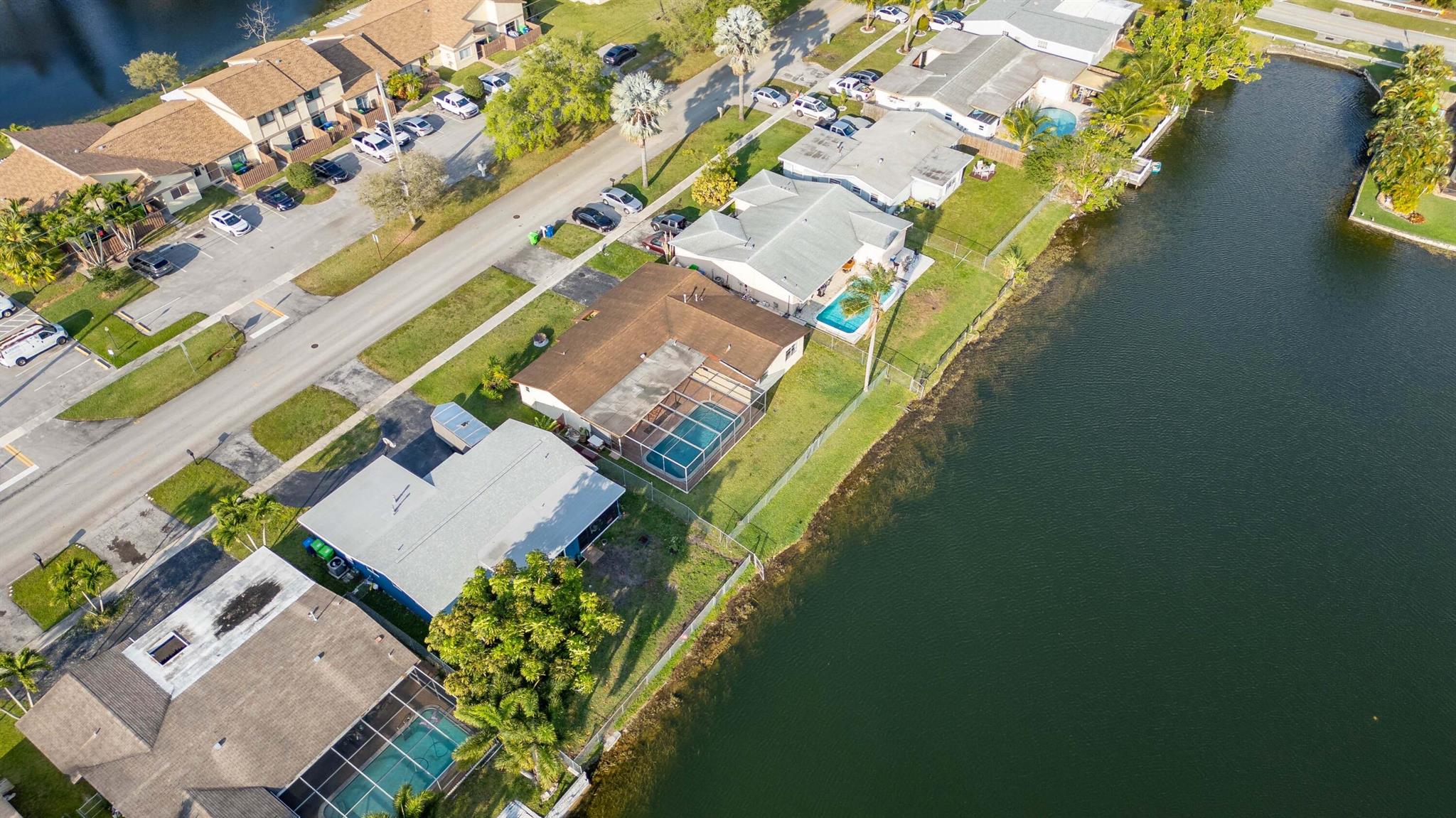 This lake-view remodeled home has three bedrooms, two bathrooms, a den, and a pool. It has been completely updated and features a new Open-concept kitchen with quartz countertops, new top-of-the-line appliances, updated bathrooms, laminate floors, and fresh paint. It also has a new washer, dryer, and recently updated water heater.