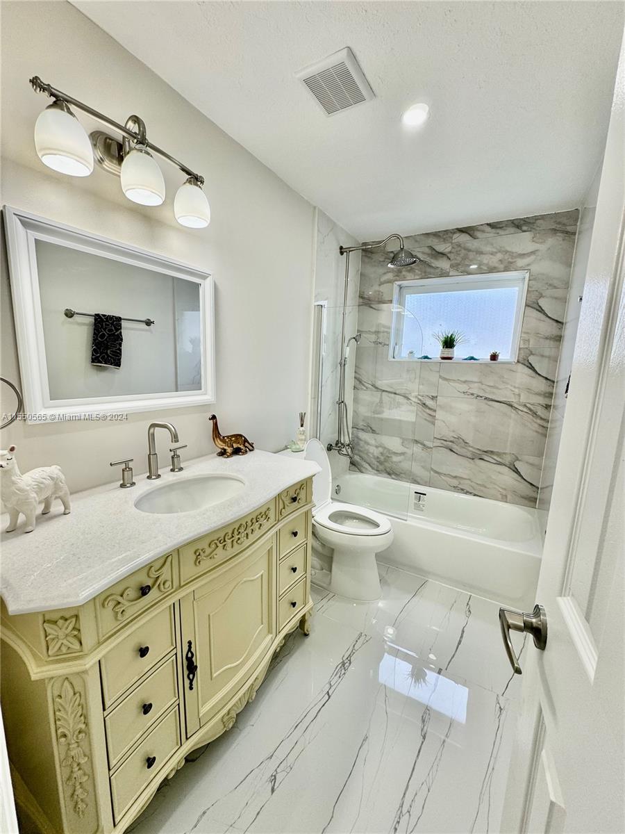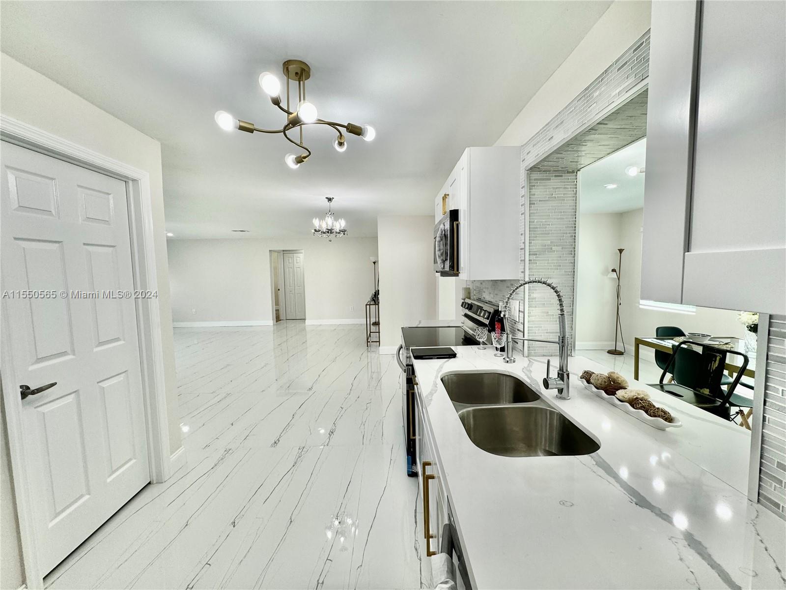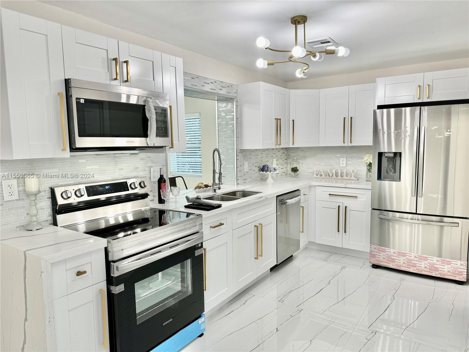 This unique GEM is in a league of its own in this area. Luminous elegant one story 3 bedroom and 2 bathroom with a large back yard. Newly Roof 2019.New garage Door with permit.New interior electrical panel,New Elec. wiring.New A/C and New duct entire the house.New smoke detectors.New flooring Tile on entire living room and Florida room. Wood laminate in Bedrooms .New bathrooms full remodeled w/new vanity, glass doors. New luxury kitchen w/Quartz counter top on Italian design hard wood Cabinets with New SS Appliances.New Plumbing & Electrical fixtures.New full size washer&dryer.Gas water heater big saving on your elect. bills.New interior doors and New impact exterior doors and windows in Florida room.New landscaping with New Irrigation piping and equipment.New blinds.New driveway asphalt.