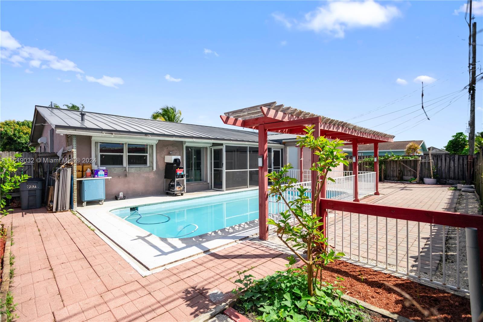 Come see this cozy, Move in Ready 3/2 pool home in a desirable no HOA Sunrise Golf Village. The tropical yard includes fruit trees and plants (Mango, Guava, Papaya, June Plum and Coconut Tree). Home comes with Hurricane Accordion Shutters, Private fence back yard with screened patio perfect for a family gathering. BRAND NEW: Metal roof, flooring, kitchen, bathrooms and Brand new underground pipes throughout the entire house. Large family room with open concept to the eat-in kitchen. Split bedrooms floor plan and walk in closet in master bedroom. Walking distance to gas stations, daycare, elementary schools and supermarket. 5 minutes to the Sawgrass Mall. Don't miss out this opportunity to own this home. Can be rent out or Airbnb as an Investment.