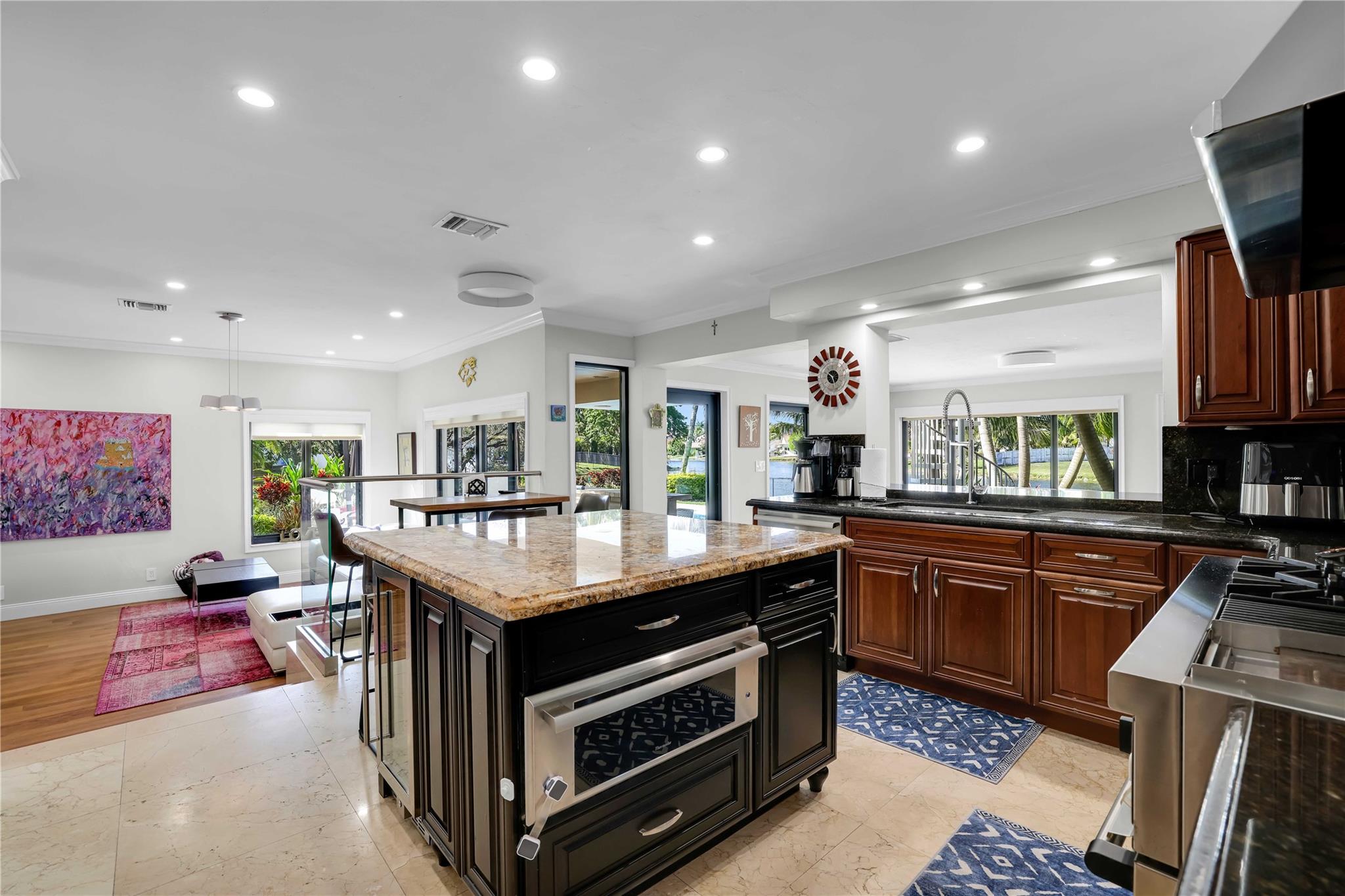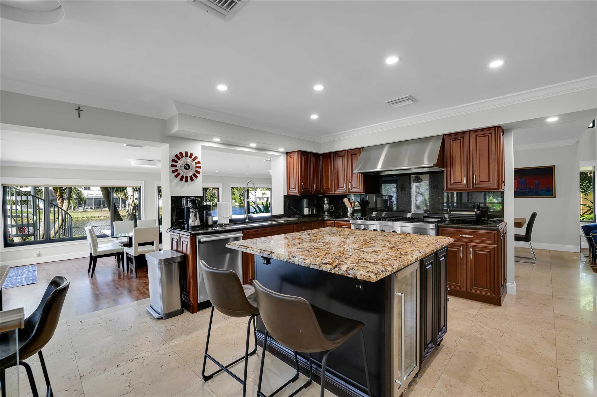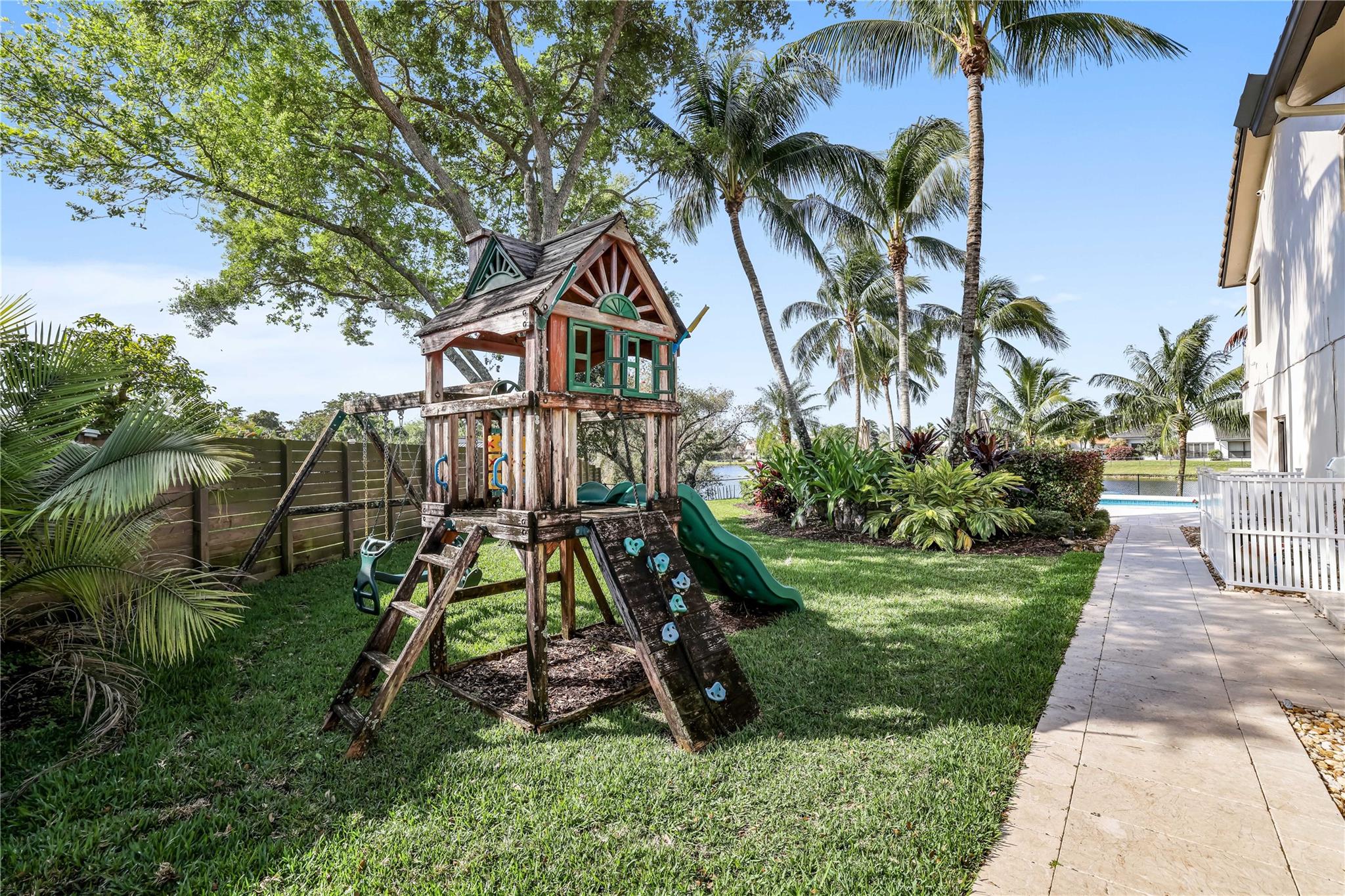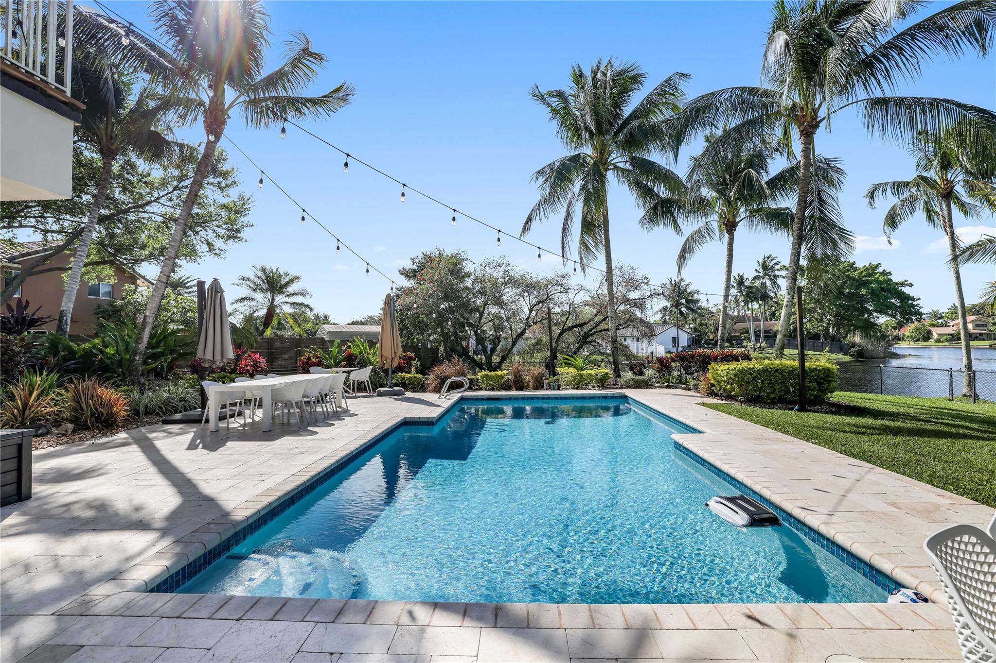 Largest Point Lakefront Lot in sought-after Jacaranda Country Club of Plantation on quiet cul-de-sac. Updated gourmet kitchen with Thermador gas stove, Sub Zero, warming drawer and wine fridge. Impact windows, garage and doors, 2 newer variable speed A/C units. Marble Floors perfectly blended with Real Wood. Massive Add on Family Room plus permitted additional garage which could be stand alone office space. Roof replaced 5 years ago. Serene backyard oasis with amazing water views. Pool had new diamond brite; salt system; outdoor travertine and Professional Kitchen. Tesla charger and generator hookup also included.