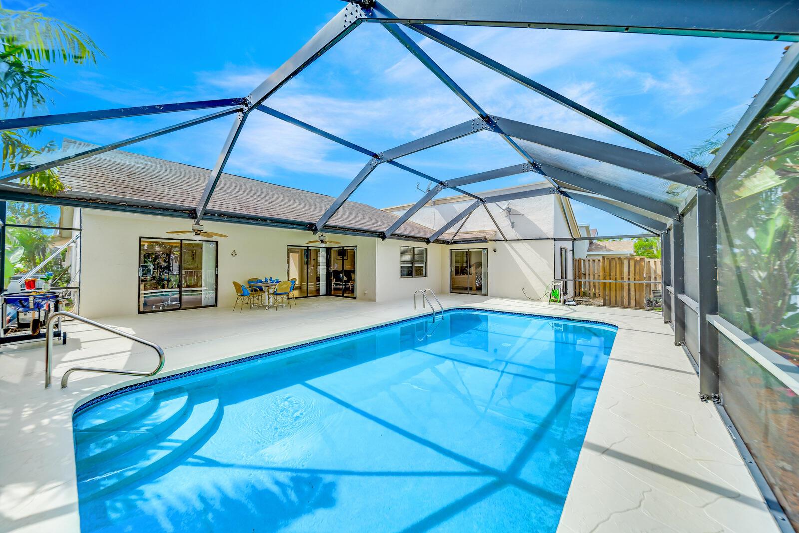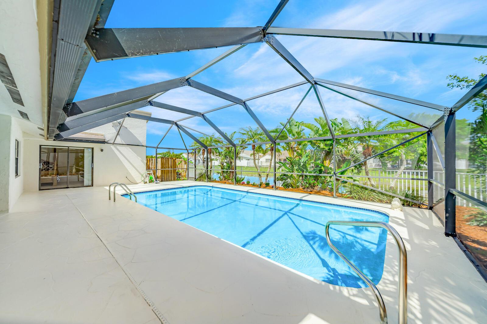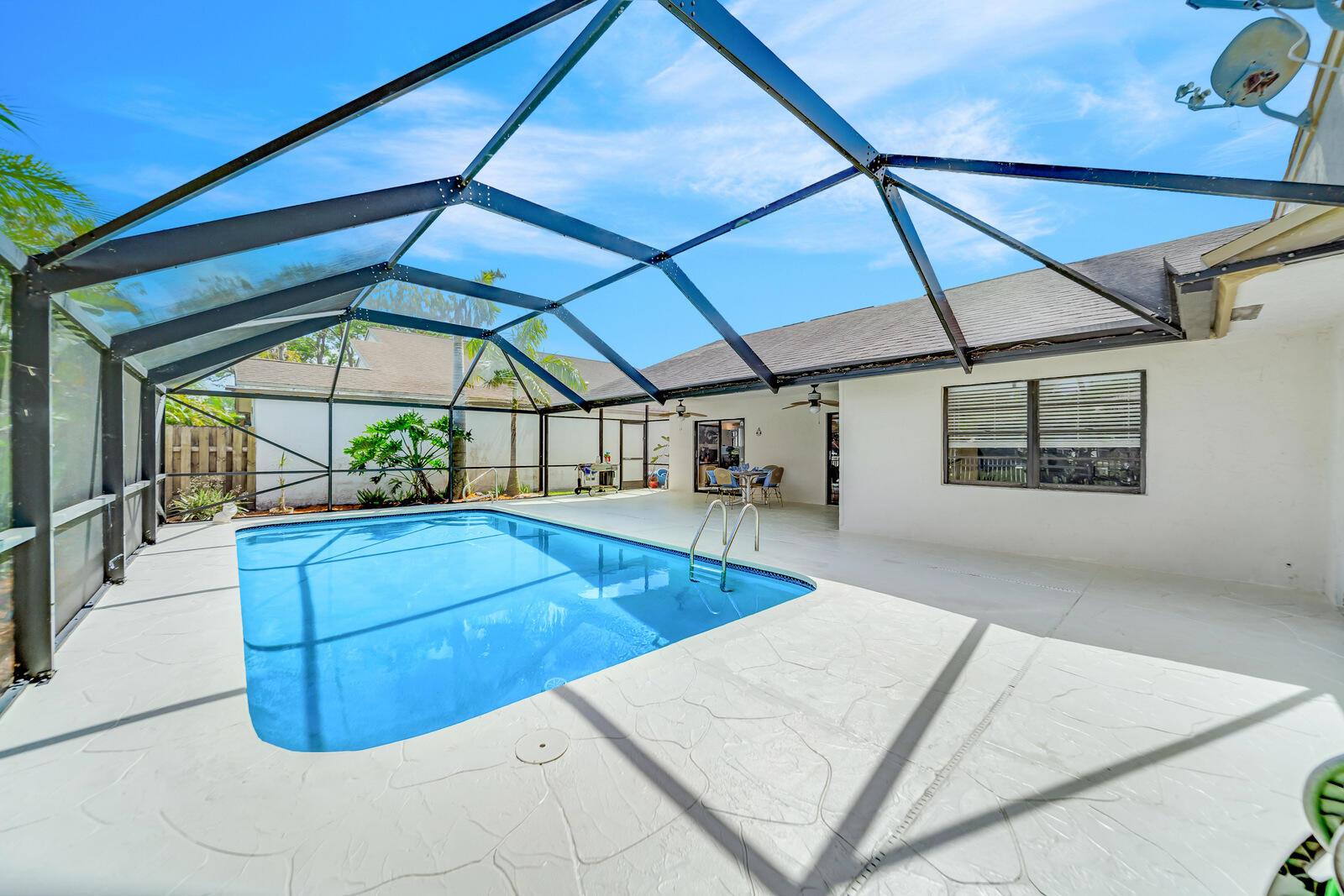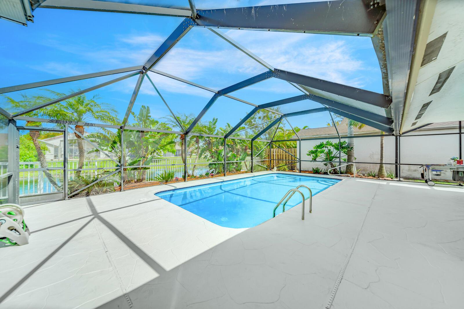 Spacious three bedrooms, 2 baths, 2 car garage, screened in pool and on the water in Country Landing III in Loggers Run!! Open & bright with vaulted ceilings & tile on a diagonal throughout! Fabulous kitchen w/granite countertops & backsplash, ''black stainless'' finger print resistant higher end Kitchen Aid appliances including a double French door fridge that is self-closing. Tons of sliders, all leading out to the screened in, huge pool that over looks the canal. New oversized screen enclosure from 2019 with large covered area. Great place to enjoy the outdoors, BBQ, throw the ball or just relax in a hammock. The fisherman in the family can catch peacock and largemouth bass right from the backyard.