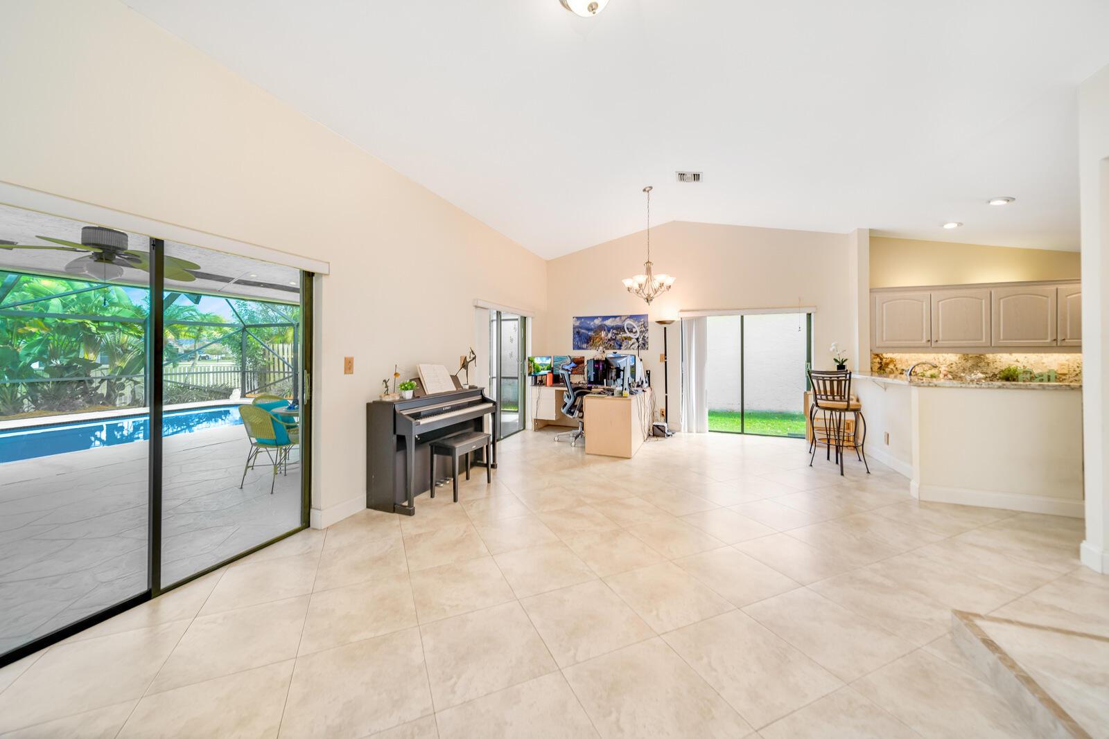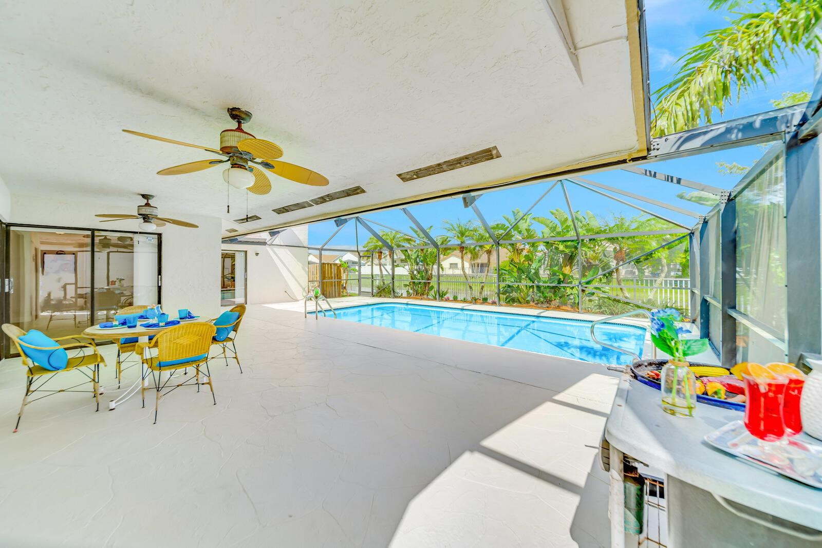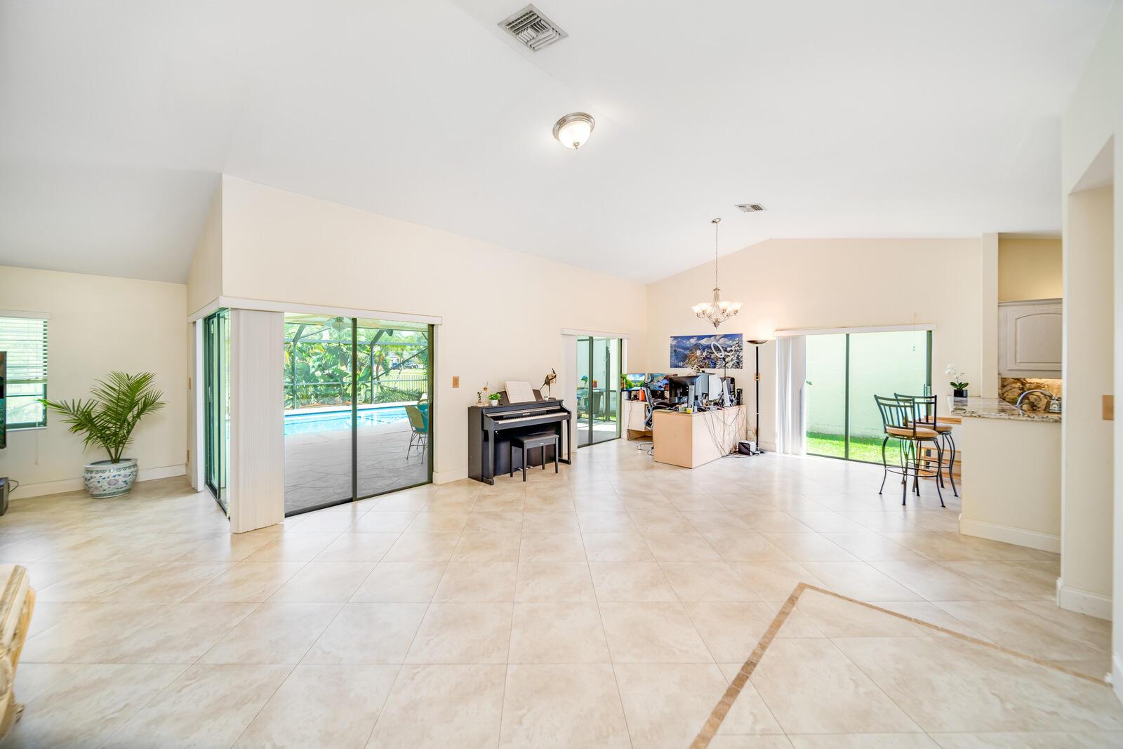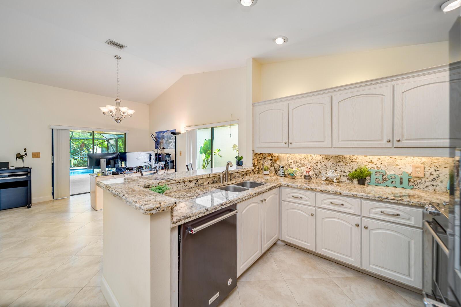 Spacious three bedrooms, 2 baths, 2 car garage, screened in pool and on the water in Country Landing III in Loggers Run!! Open & bright with vaulted ceilings & tile on a diagonal throughout! Fabulous kitchen w/granite countertops & backsplash, ''black stainless'' finger print resistant higher end Kitchen Aid appliances including a double French door fridge that is self-closing. Tons of sliders, all leading out to the screened in, huge pool that over looks the canal. New oversized screen enclosure from 2019 with large covered area. Great place to enjoy the outdoors, BBQ, throw the ball or just relax in a hammock. The fisherman in the family can catch peacock and largemouth bass right from the backyard.