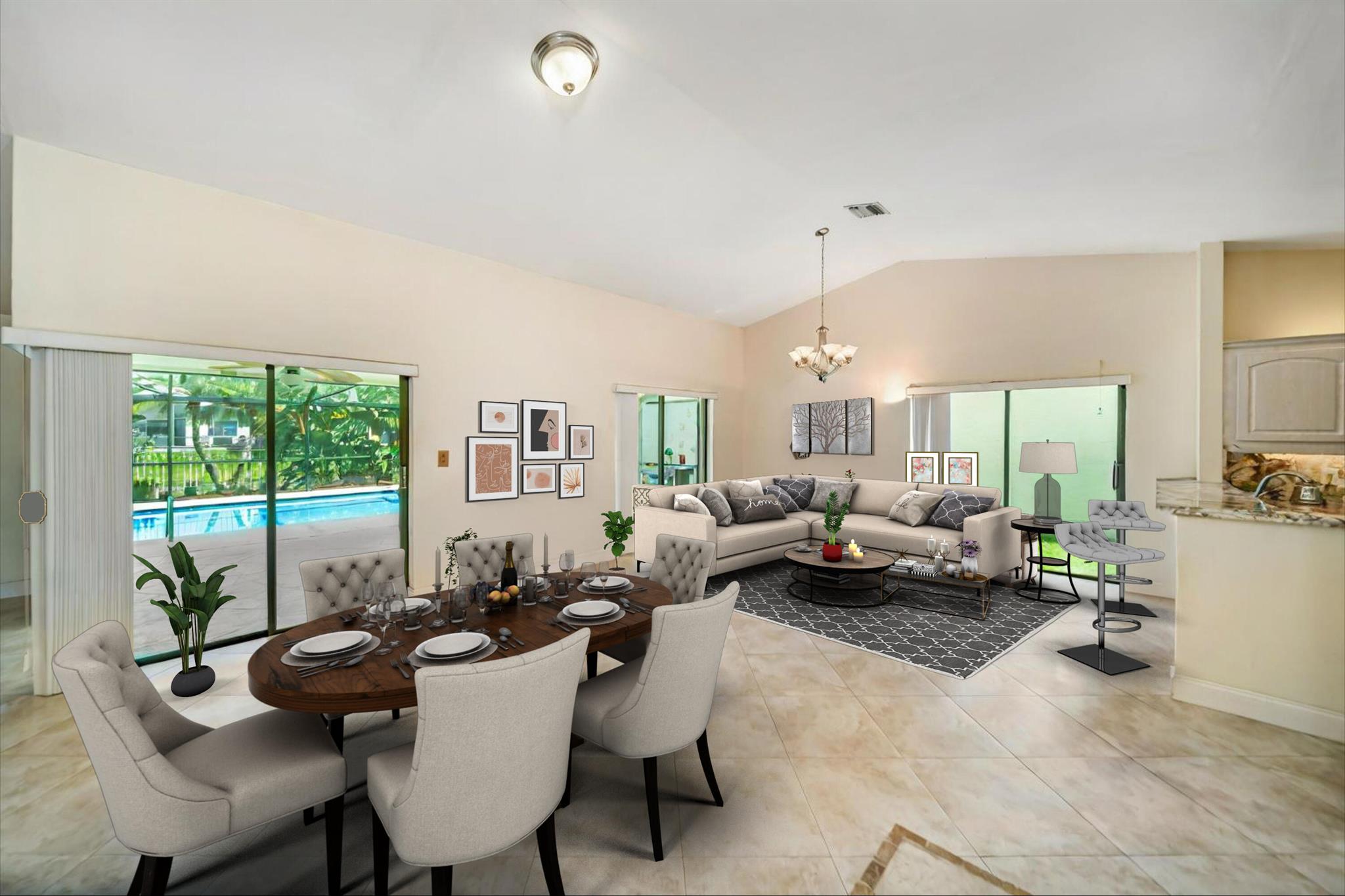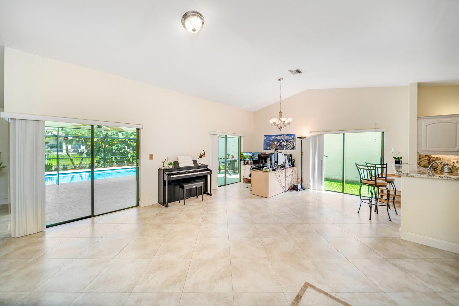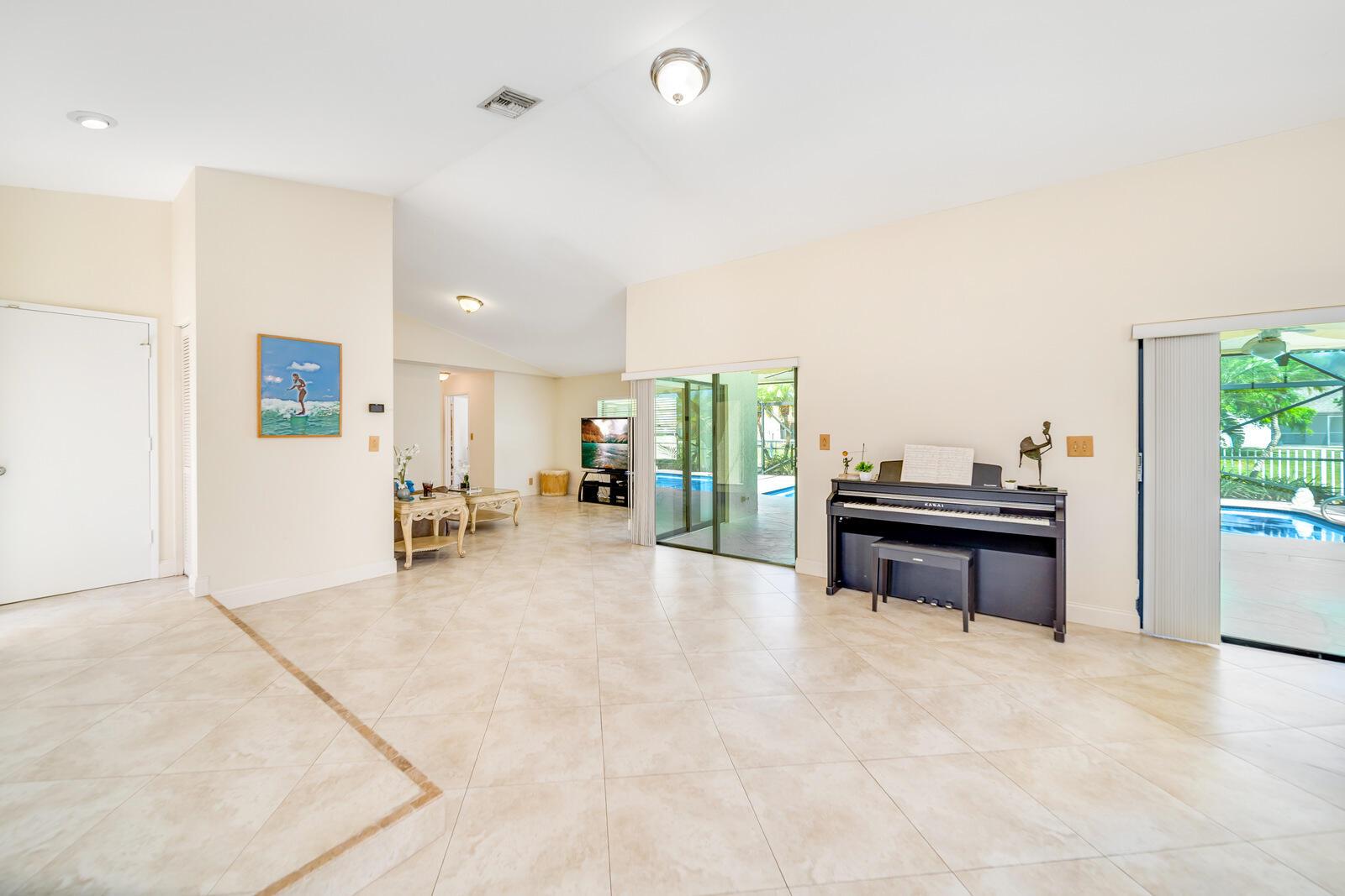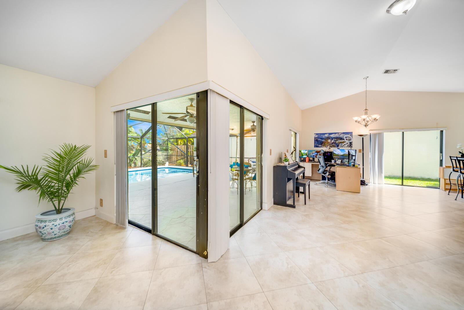 Spacious three bedrooms, 2 baths, 2 car garage, screened in pool and on the water in Country Landing III in Loggers Run!! Open & bright with vaulted ceilings & tile on a diagonal throughout! Fabulous kitchen w/granite countertops & backsplash, ''black stainless'' finger print resistant higher end Kitchen Aid appliances including a double French door fridge that is self-closing. Tons of sliders, all leading out to the screened in, huge pool that over looks the canal. New oversized screen enclosure from 2019 with large covered area. Great place to enjoy the outdoors, BBQ, throw the ball or just relax in a hammock. The fisherman in the family can catch peacock and largemouth bass right from the backyard.