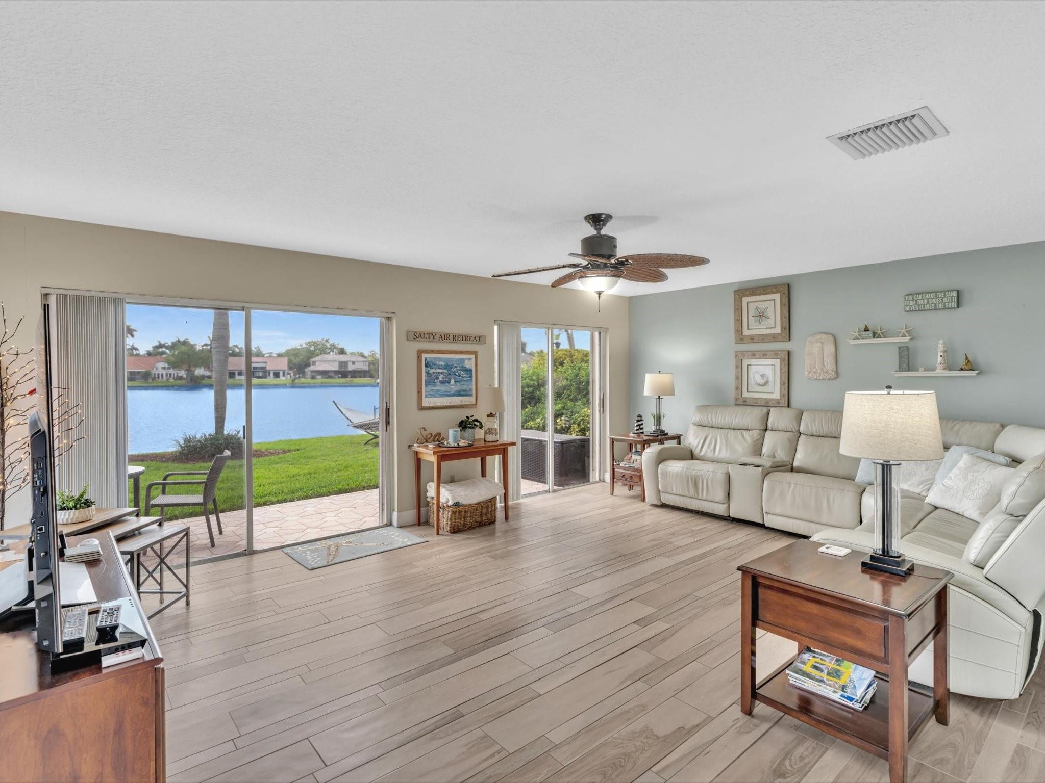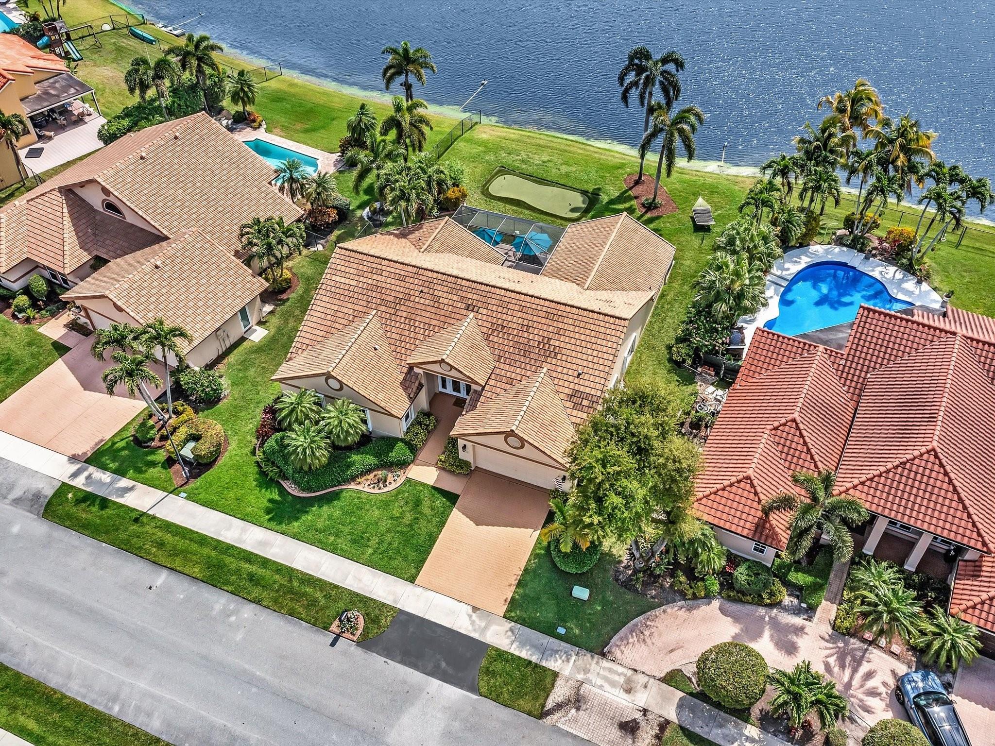 Beautiful lakefront home in desirable Forest Ridge. This 3 bedroom plus office (4 br model) has peaceful water views from all living areas & primary bedroom. South Florida living with oversized lot, large screened patio to enjoy those views & a putting green in your own backyard! The Florida beach aesthetic welcomes you from the minute you open the front door. Spacious floor plan with sizeable family room & large bedrooms. Updated cottage kitchen with Corian countertops and stainless steel appliances. Brand new A/C, accordion shutters on all windows, private cul-de-sac street, low hoa & neighborhood amenities include: community pool, tennis, pickleball, basketball courts, and walking/running/biking trails. Top rated schools and ideal central location close to 595, airport & shopping.
