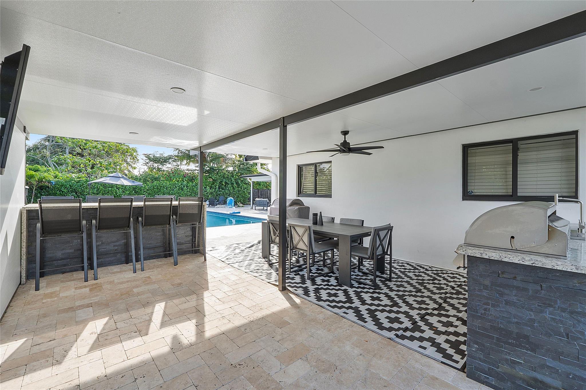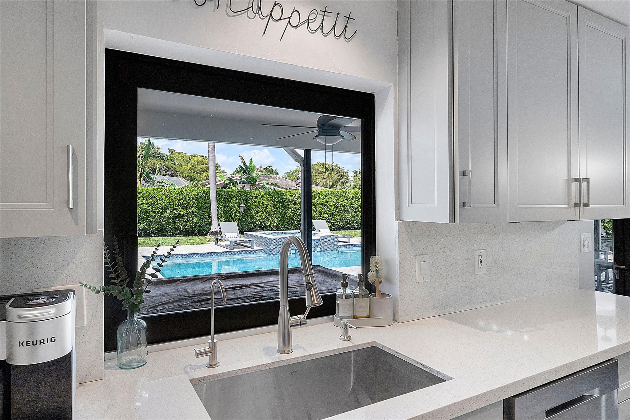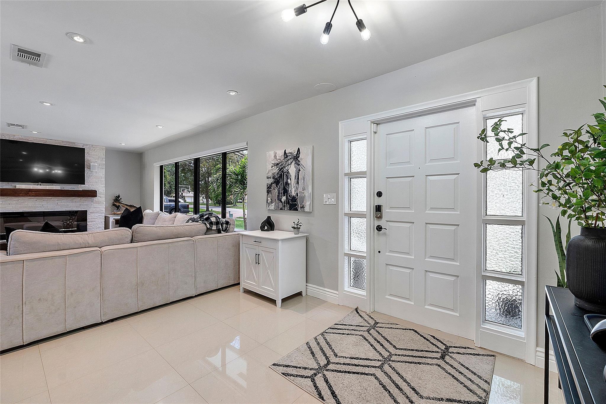 Step into luxury with this fully renovated home, featuring a contemporary open-concept layout. Enjoy a chef's kitchen with quartz countertops, custom cabinetry, and stainless steel appliances. The spacious living area boasts a stunning quartz fireplace wall. Retreat to the owner suite with a walk-in closet and spa-like bathroom. Additional upgrades include a half bath,laundry room,updated lighting,tankless water heater, Rainsoft whole house water system,and reverse osmosis drinking system. Outside, a 37' pool with LED-lit waterfall spa creates a serene outdoor oasis, complete with a brand-new pergola and built-in kitchen. Stay refreshed with a spritzer water system for plants , gorgeous lanscaping. This home offers the perfect blend of modern luxury and functionality.