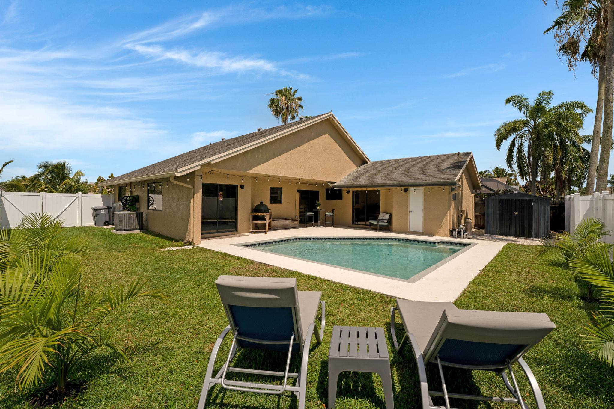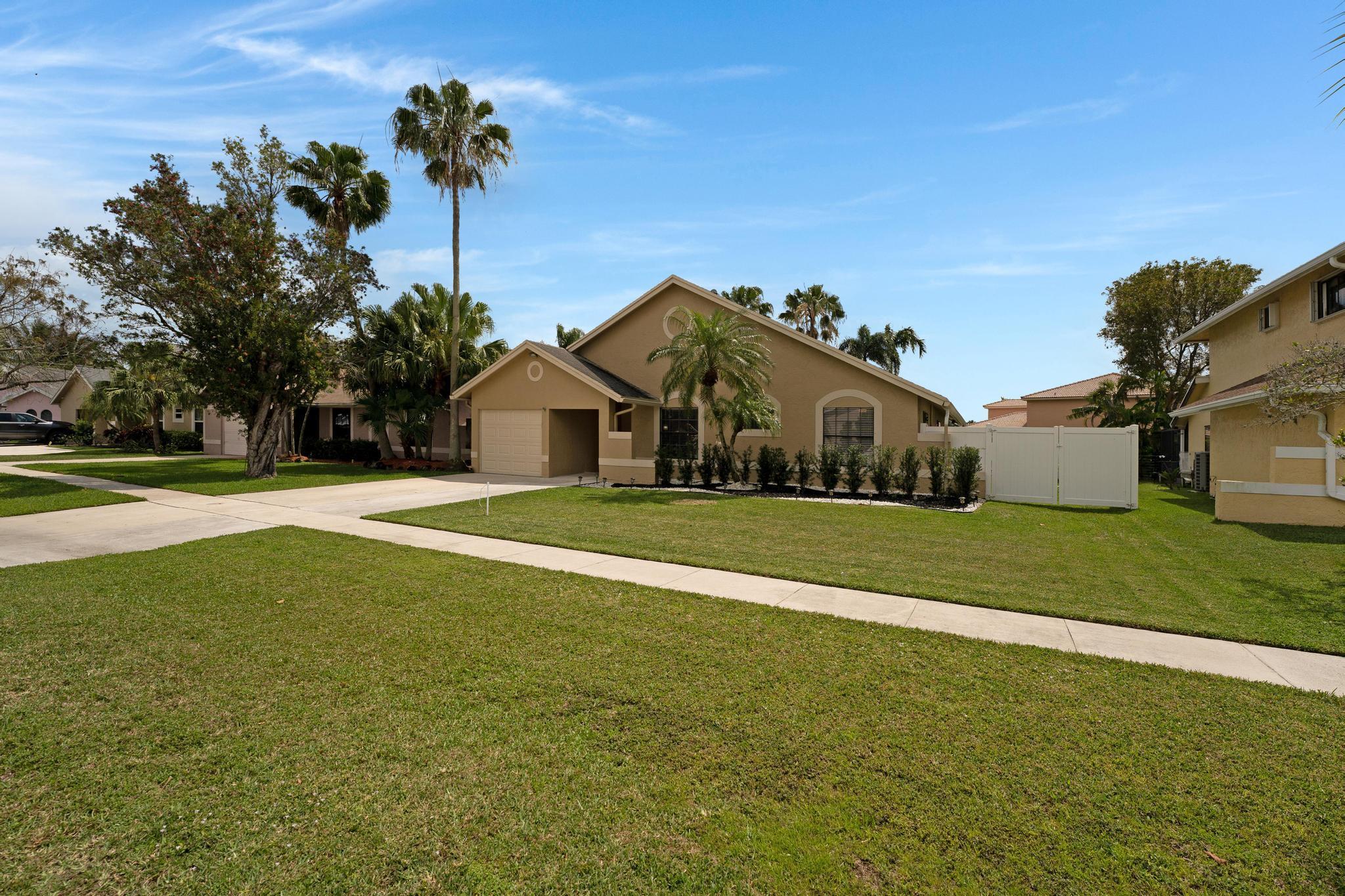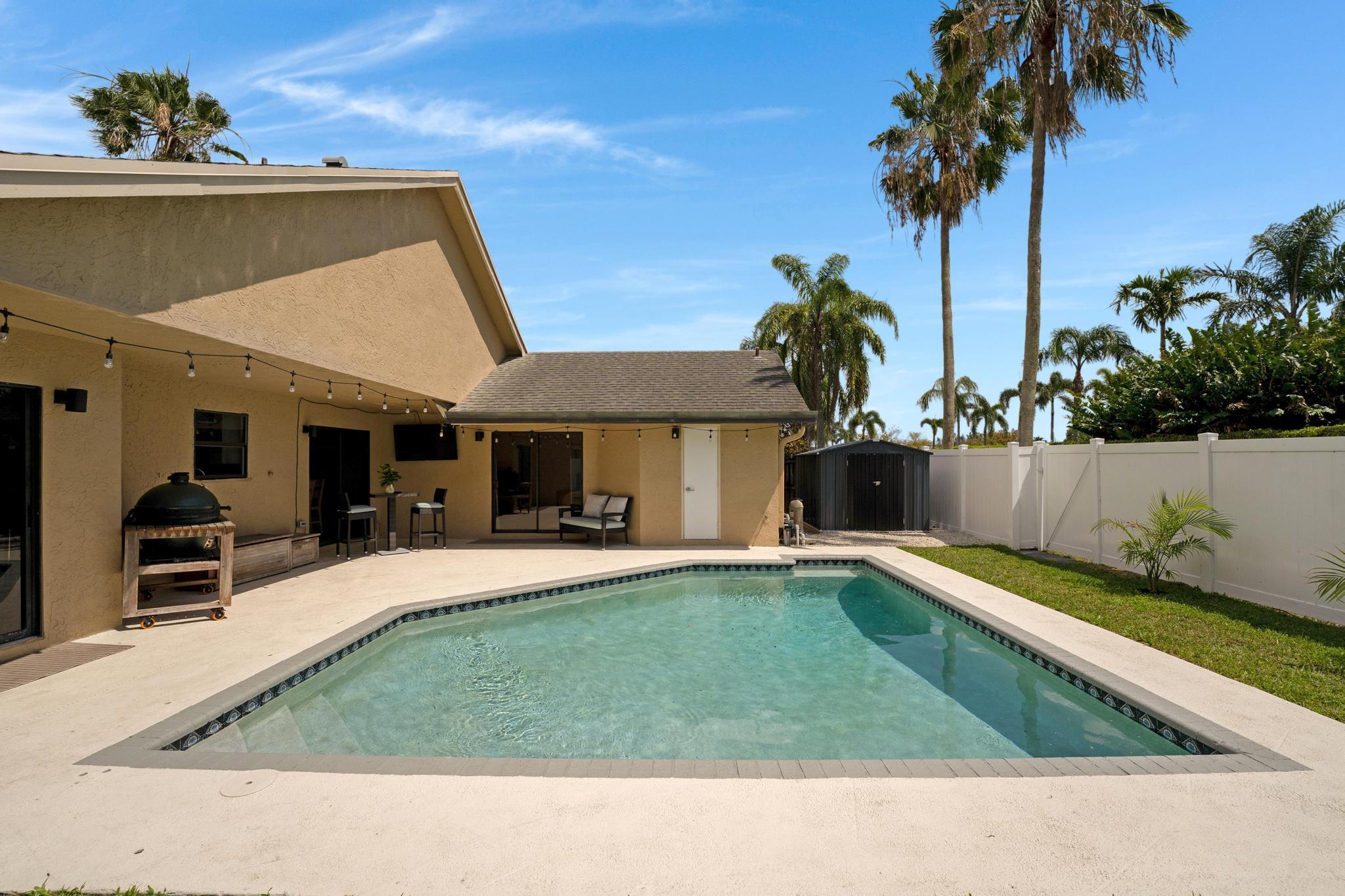 This property features 3 bedrooms, 2 bathrooms and a pool in a newly fenced in private backyard. The kitchen includes stainless steel appliances and white soft-close modern cabinets. Bathrooms include granite countertops. The home features smooth ceilings and a split bedroom plan. Equipped with new lights, smart thermostat, WiFi enabled garage door, and a shed in the backyard. Natural light fills the home with Southern exposure. Situated in the remarkable Boca Winds Community with A rated schools. The community has a resort style pool and clubhouse, tennis courts, and a park. This is also very close to the best parks in Palm Beach. Close to shopping centers, colleges, restaurants, galleries, beaches and a lot more! This will not last!