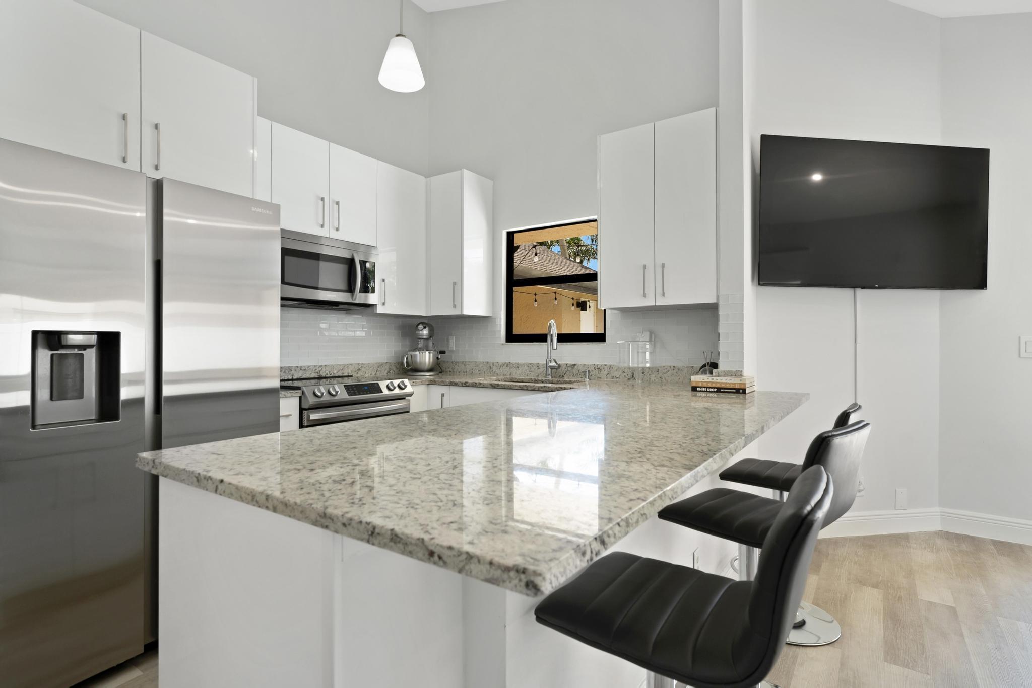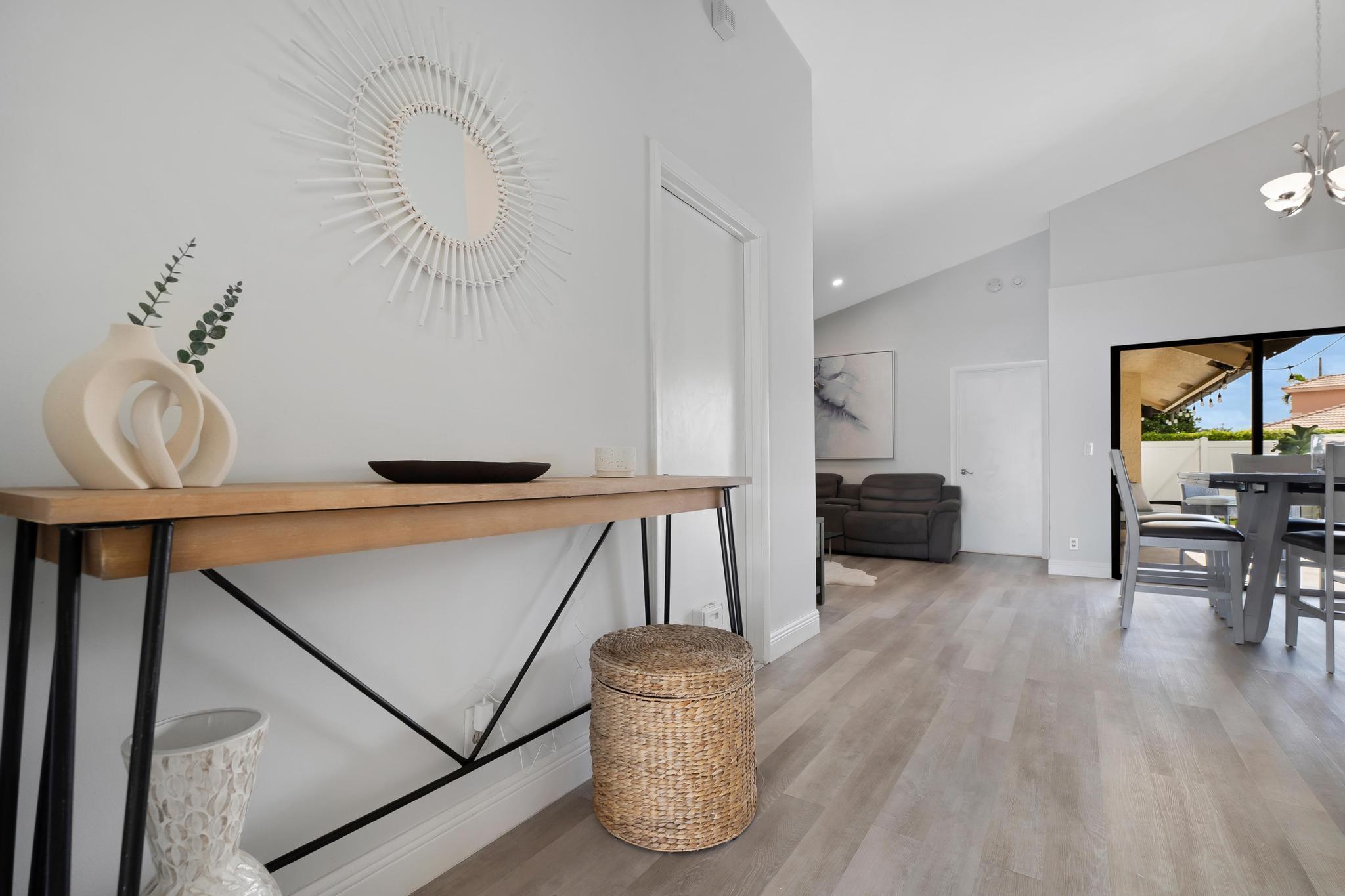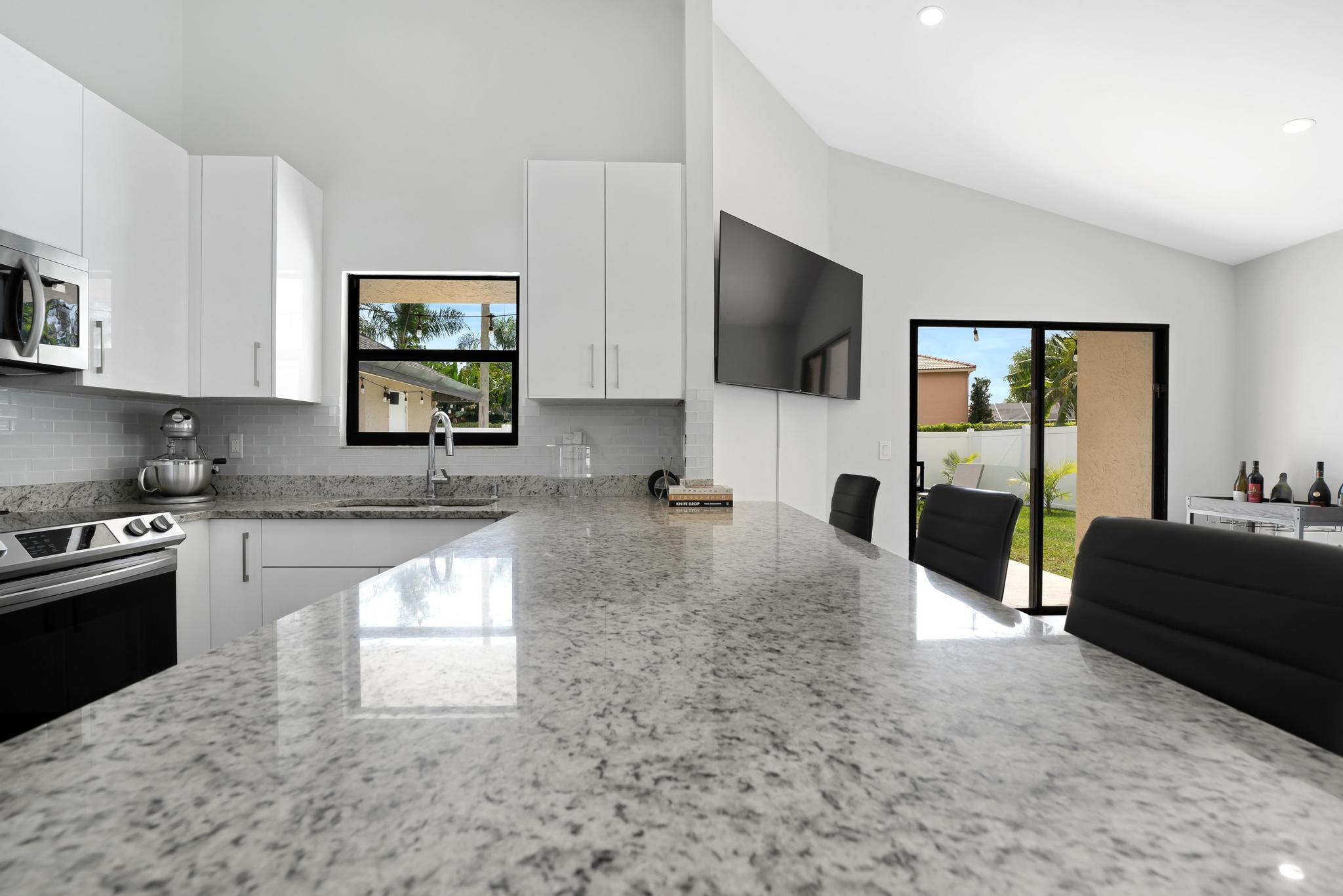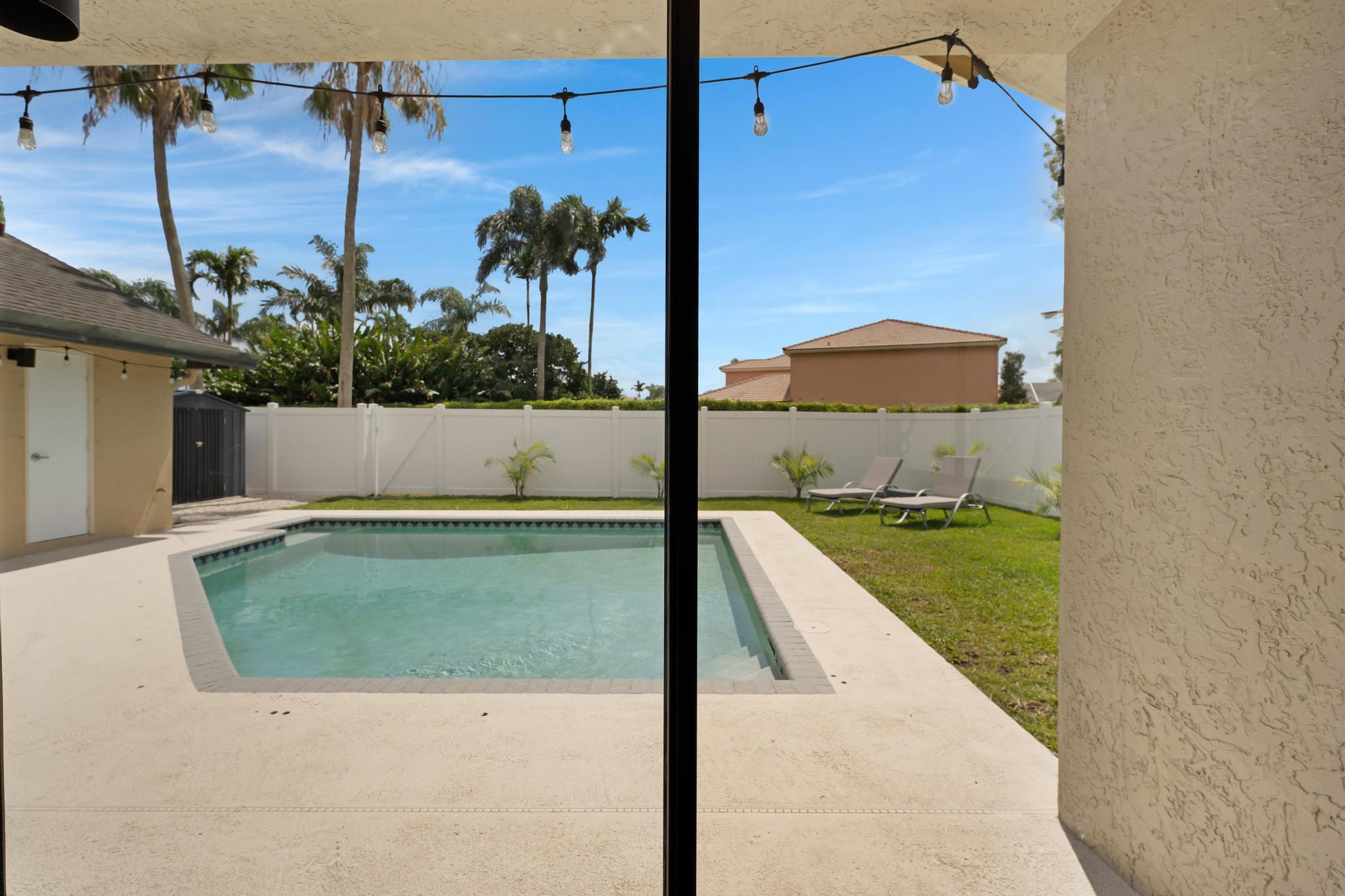 This property features 3 bedrooms, 2 bathrooms and a pool in a newly fenced in private backyard. The kitchen includes stainless steel appliances and white soft-close modern cabinets. Bathrooms include granite countertops. The home features smooth ceilings and a split bedroom plan. Equipped with new lights, smart thermostat, WiFi enabled garage door, and a shed in the backyard. Natural light fills the home with Southern exposure. Situated in the remarkable Boca Winds Community with A rated schools. The community has a resort style pool and clubhouse, tennis courts, and a park. This is also very close to the best parks in Palm Beach. Close to shopping centers, colleges, restaurants, galleries, beaches and a lot more! This will not last!
