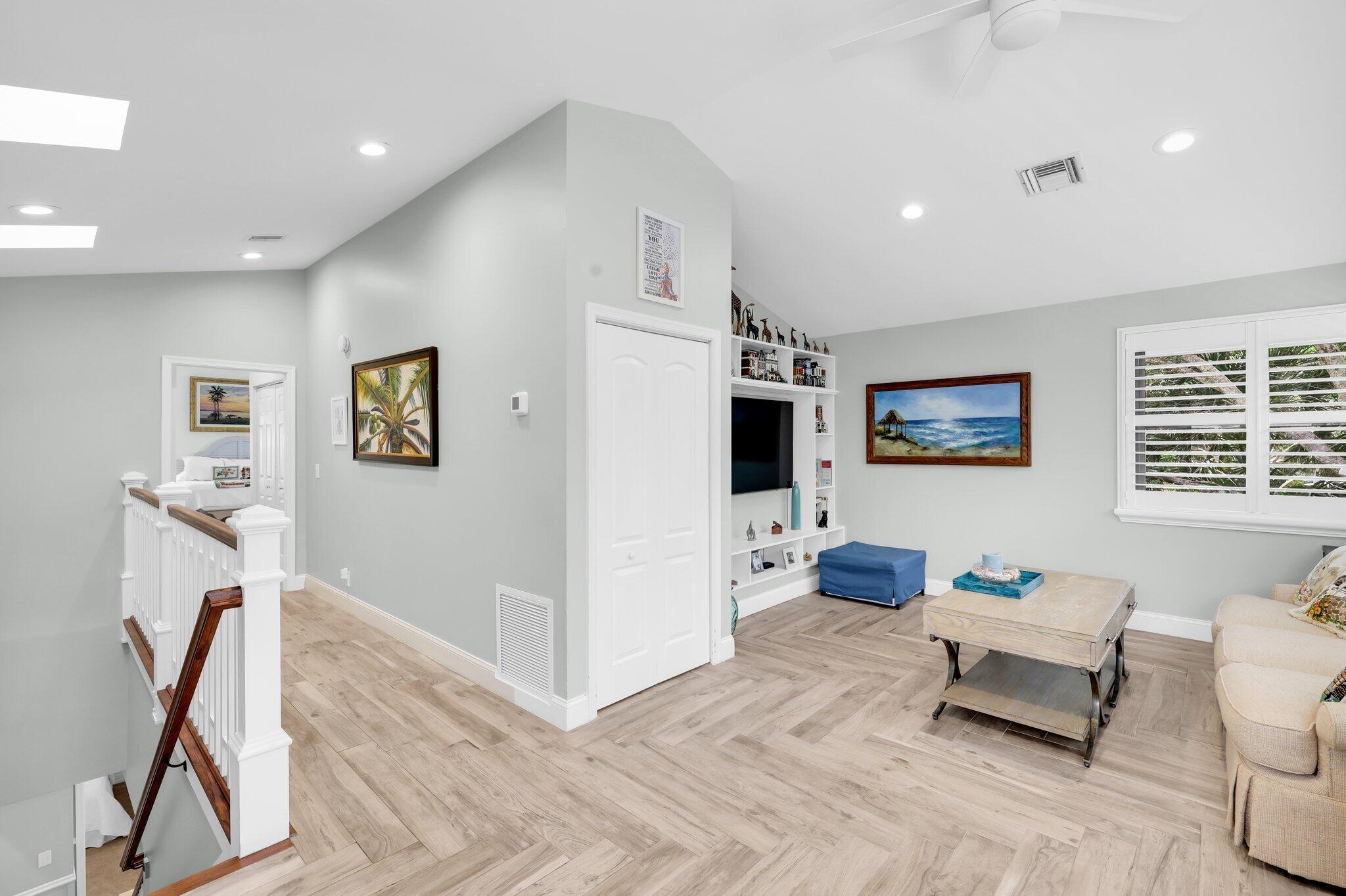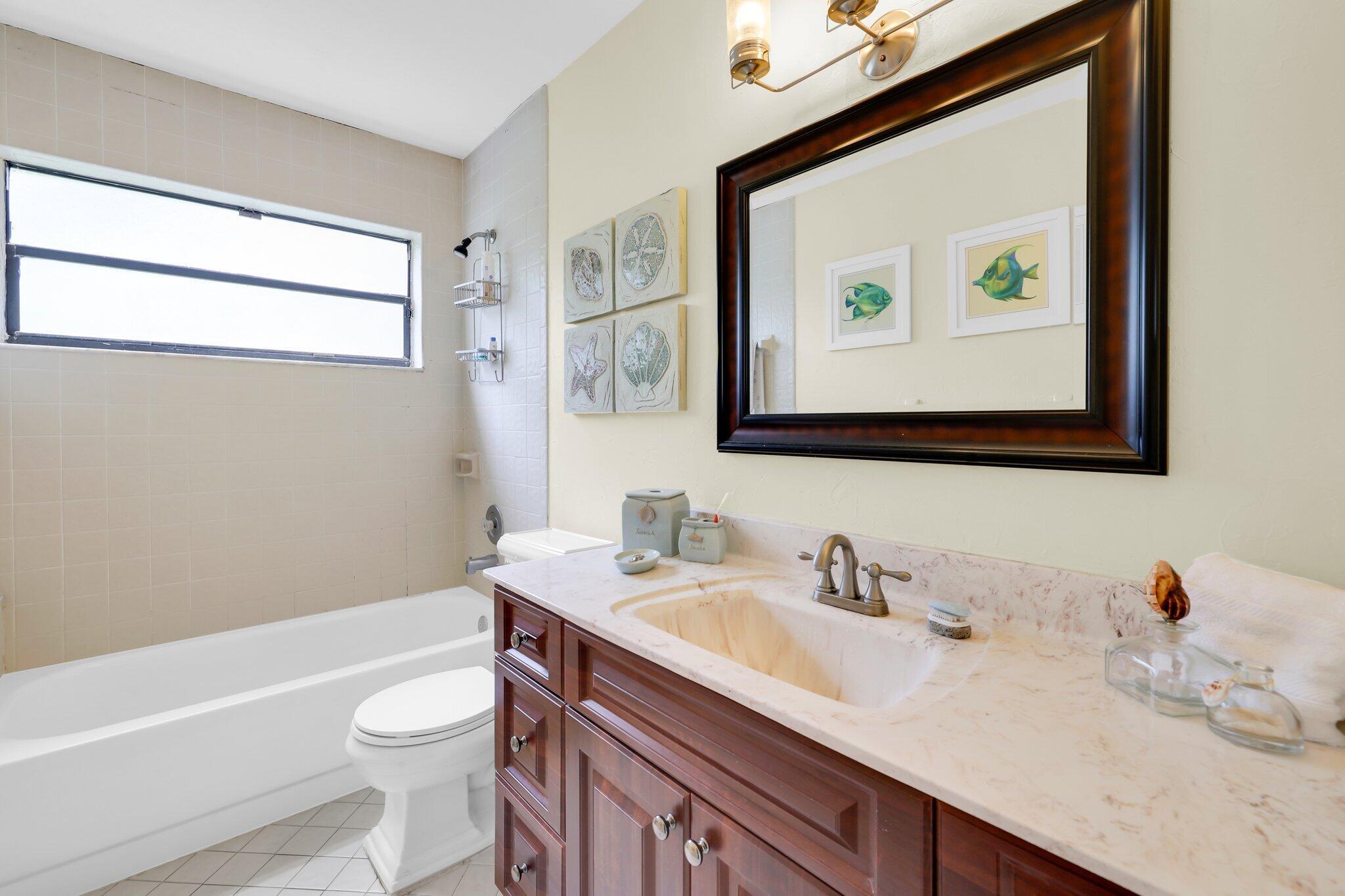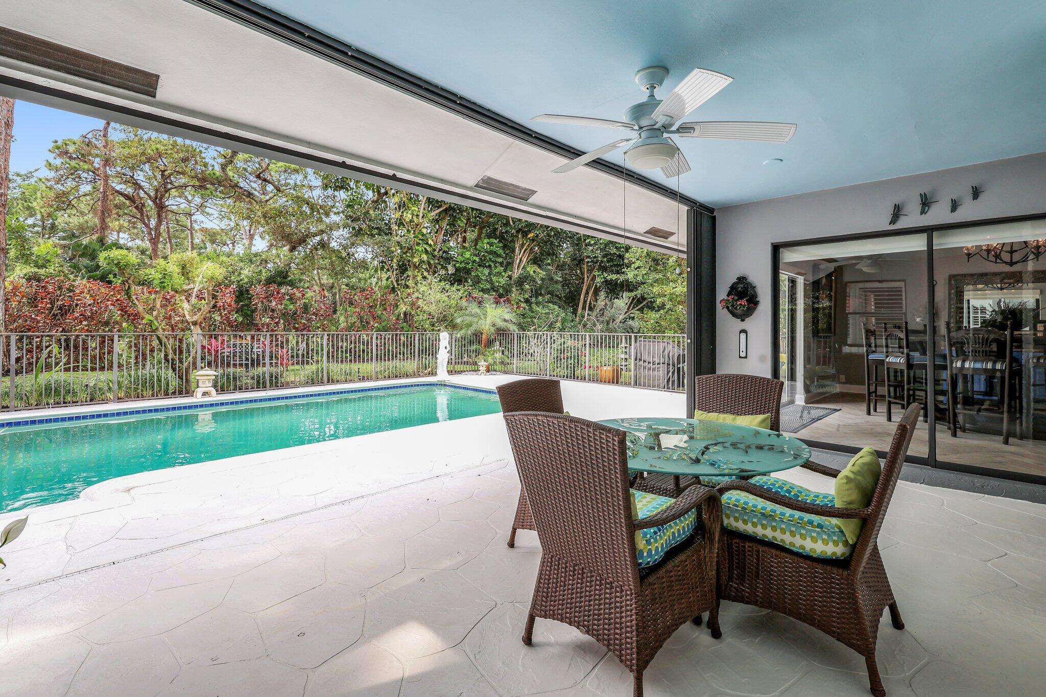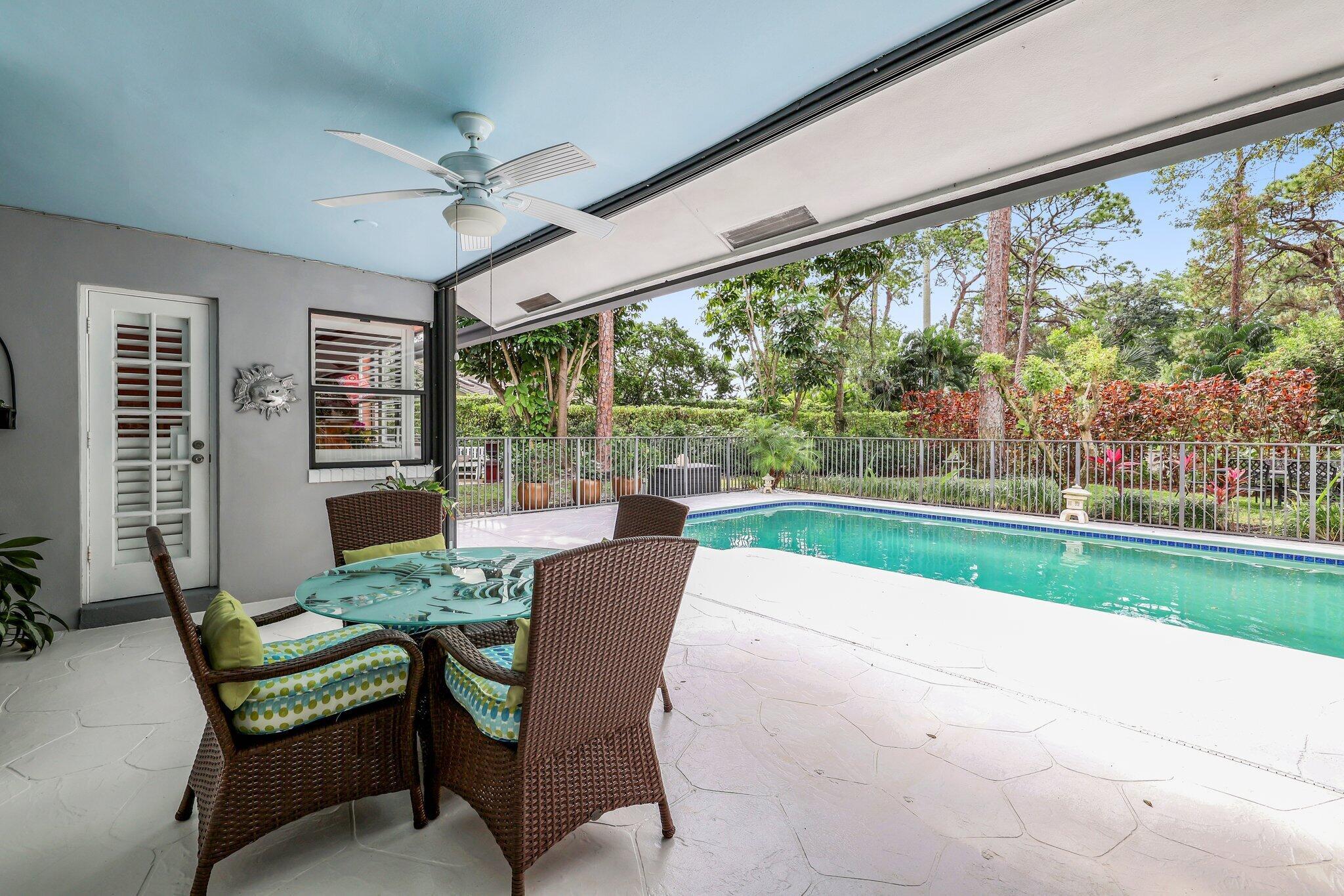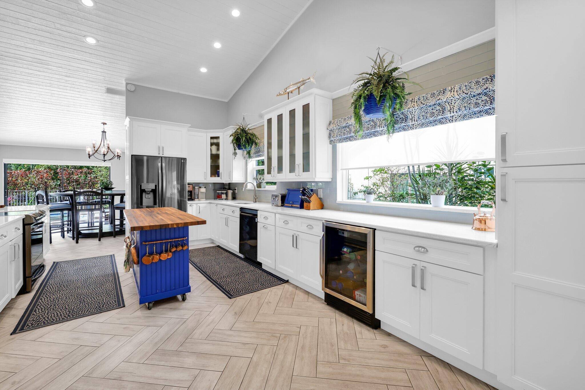 Located in sought-after Millpond in Boca Raton, this elegant home features wood floors, expansive windows, and sliding glass doors, filling the space with natural light. With a spacious open floor plan, shiplap cathedral ceilings, and a cozy fireplace, it offers 3 bedrooms downstairs (one primary) and one bedroom upstairs (second primary) with a stunning loft/office/den with garden views. The masterful chef's kitchen boasts quartz countertops, stainless steel appliances, large pantry w lazy Susan, rolling island and custom window treatments. Outside, enjoy a private backyard with a large fenced in pool, lush landscaping, no rear neighbors and whole house solar panels. Close to Town Center Mall, top-rated private and public schools, beaches, parks and entertainment, Best location in Boca.
