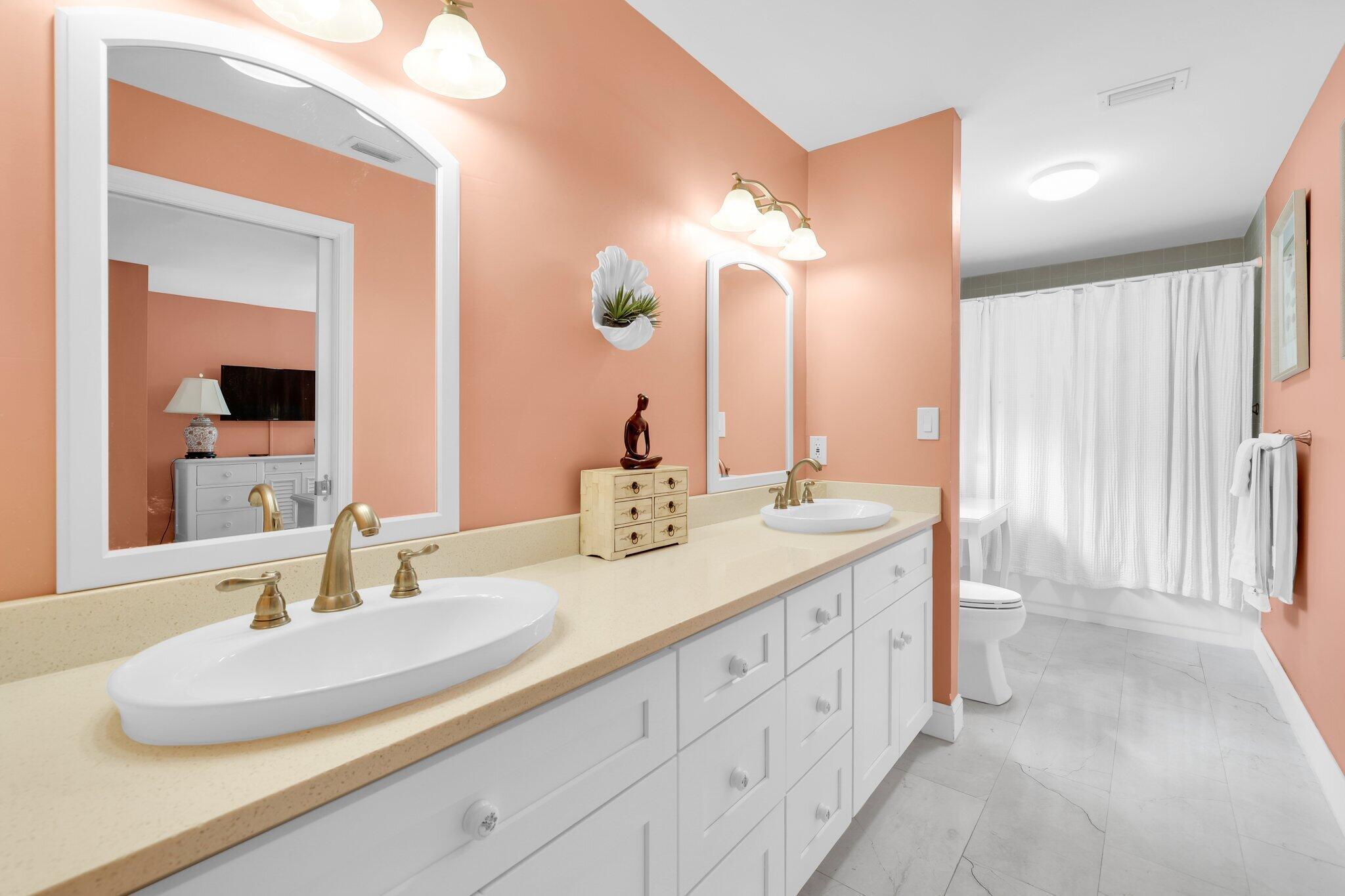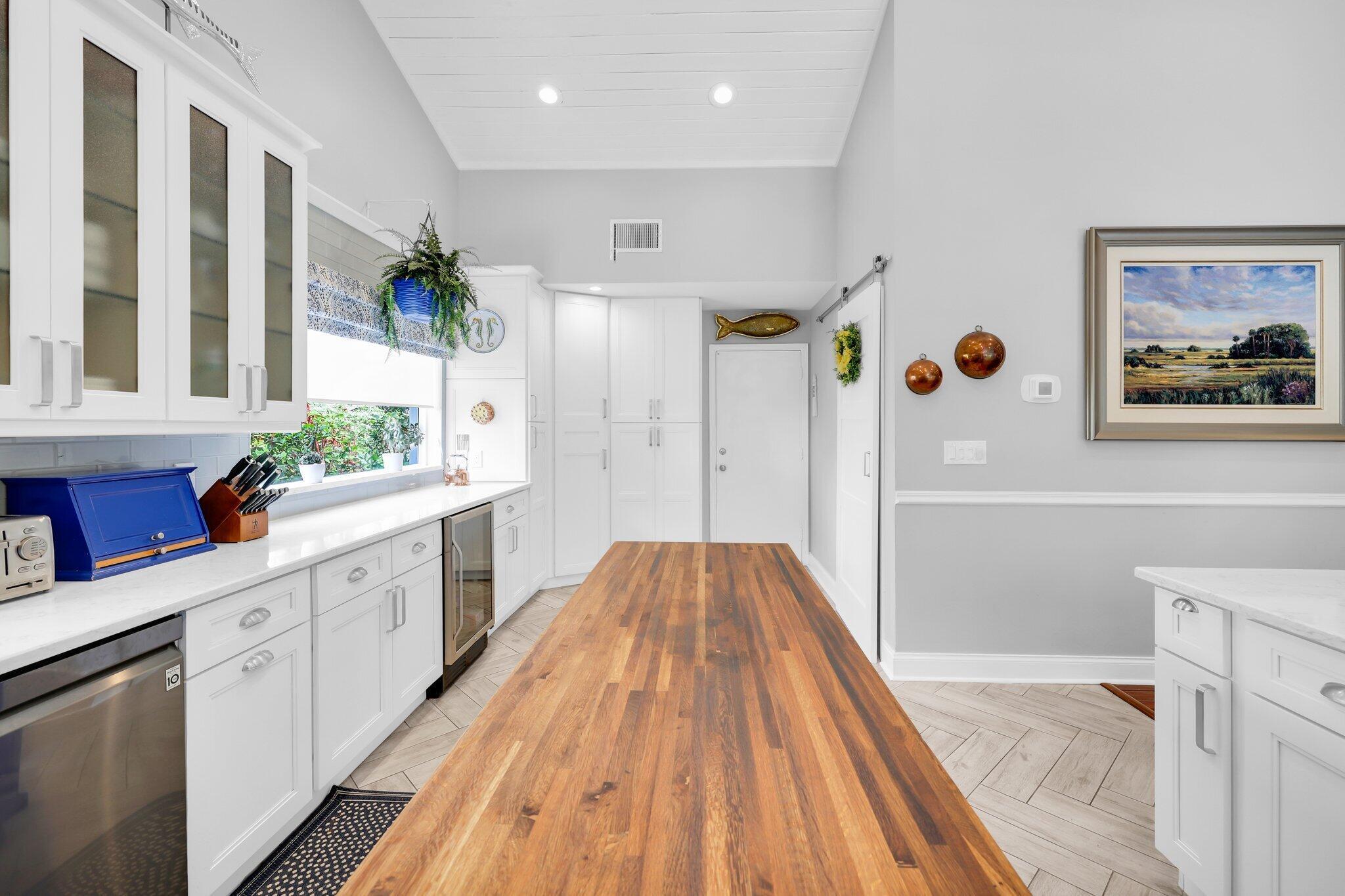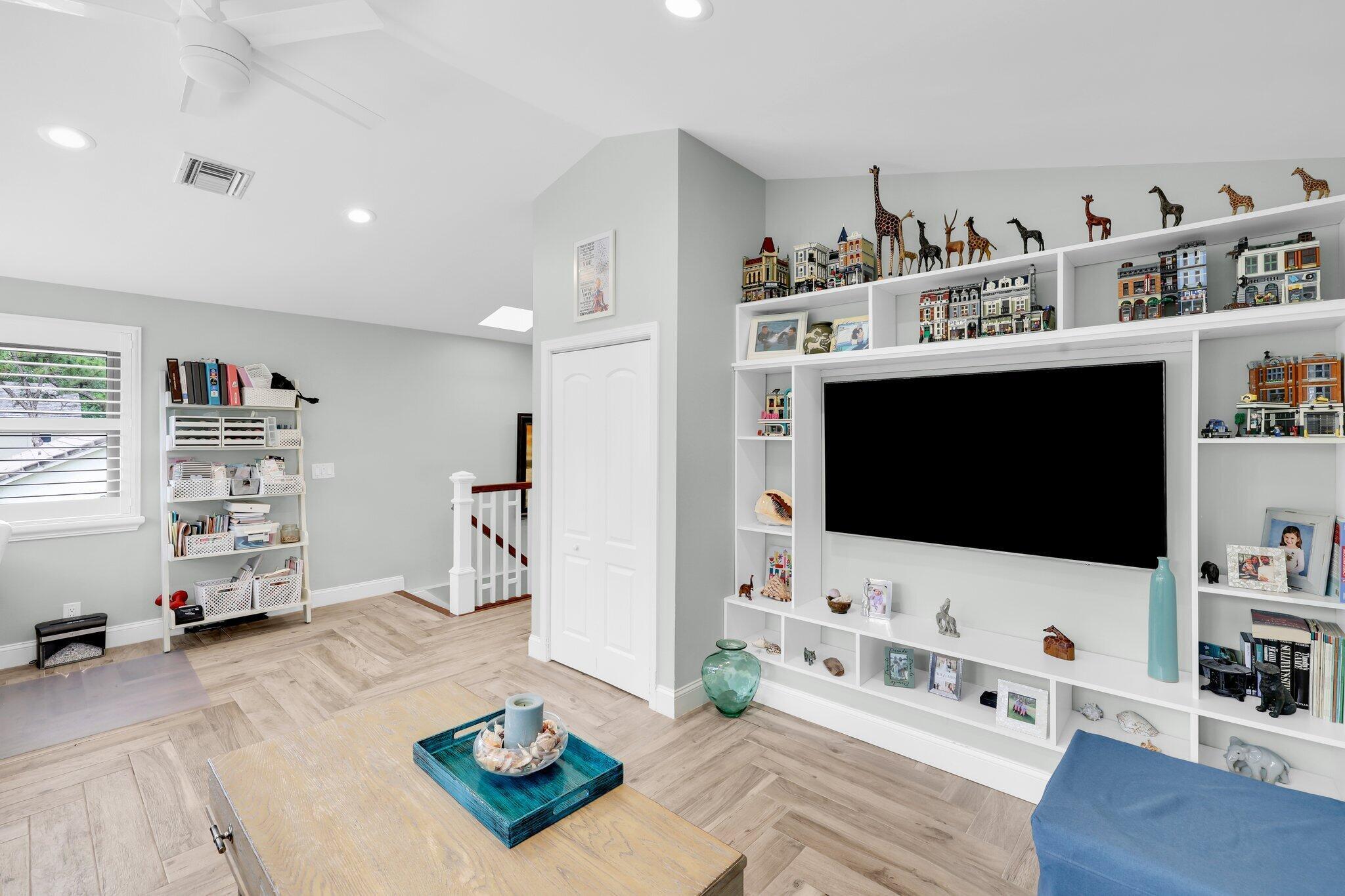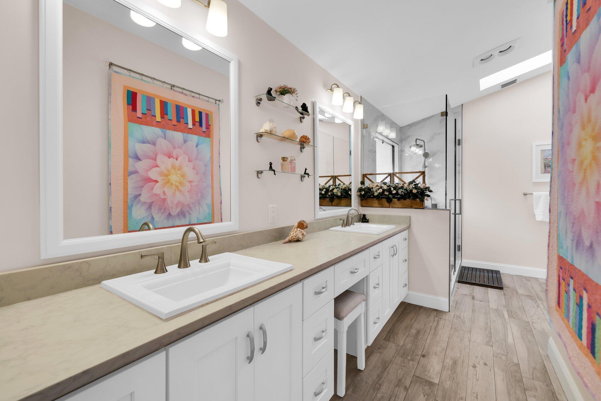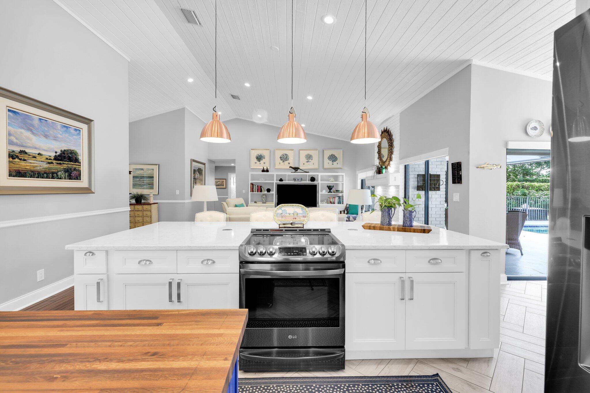 Located in sought-after Millpond in Boca Raton, this elegant home features wood floors, expansive windows, and sliding glass doors, filling the space with natural light. With a spacious open floor plan, shiplap cathedral ceilings, and a cozy fireplace, it offers 3 bedrooms downstairs (one primary) and one bedroom upstairs (second primary) with a stunning loft/office/den with garden views. The masterful chef's kitchen boasts quartz countertops, stainless steel appliances, large pantry w lazy Susan, rolling island and custom window treatments. Outside, enjoy a private backyard with a large fenced in pool, lush landscaping, no rear neighbors and whole house solar panels. Close to Town Center Mall, top-rated private and public schools, beaches, parks and entertainment, Best location in Boca.