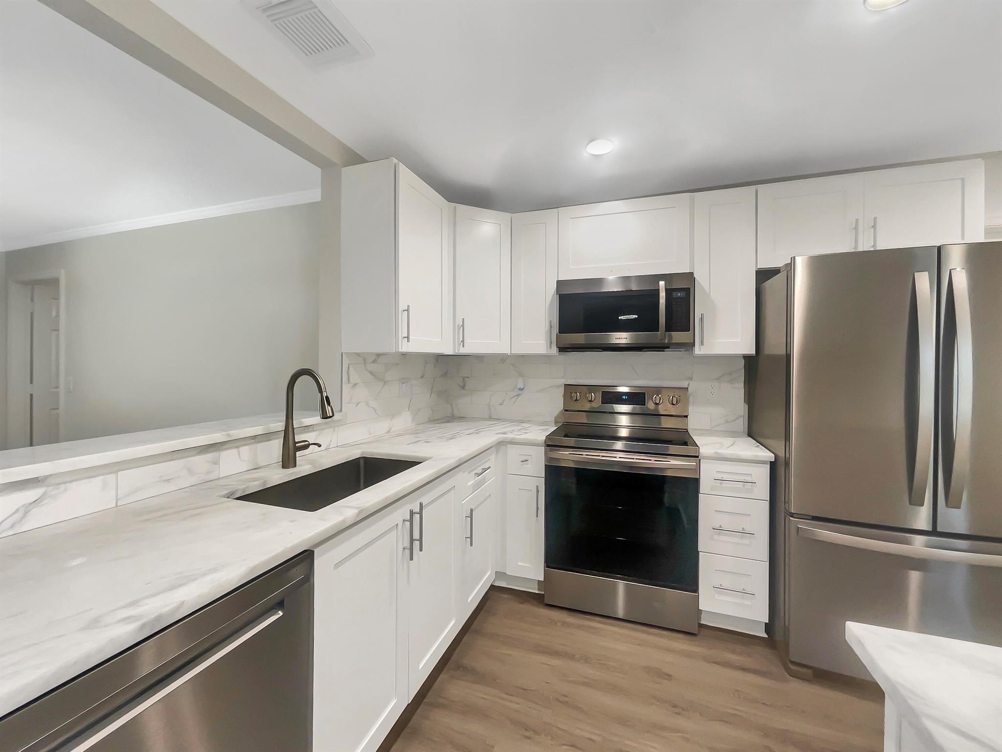 Welcome to this charming property with a natural color palette throughout, complemented by a nice backsplash in the kitchen. The flexible living space includes rooms that can be tailored to your needs, while the primary bathroom offers good under sink storage. Step outside to the fenced backyard, perfect for enjoying the outdoors in privacy. With fresh interior paint and partial flooring replacement in some areas, this home is move-in ready. Don't miss the opportunity to make this your own!