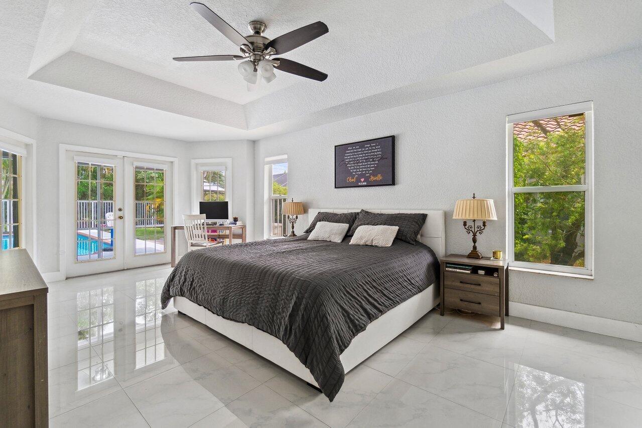 Beautiful one-story home in Mission Bay. Boasting 4 bedrooms PLUS BONUS ROOM and 2.5 baths, it's adorned with Italian porcelain tile throughout. The heart of the home, an open kitchen, merges seamlessly with the family room and breakfast nook, guiding you to the screened patio and private, fenced pool. Surrounded by lush gardens with no rear neighbors, privacy abounds. Features include a NEW ROOF, meticulously maintained, and a spacious main bedroom with direct pool access via French doors. Situated in a resort-style community, enjoy access to lakeside pools, a gazebo, clubhouse, fitness rooms, tennis courts, a tot lot, jacuzzi, and more. Perfectly located in a premier school district, close to shopping, entertainment, and all the best in Boca