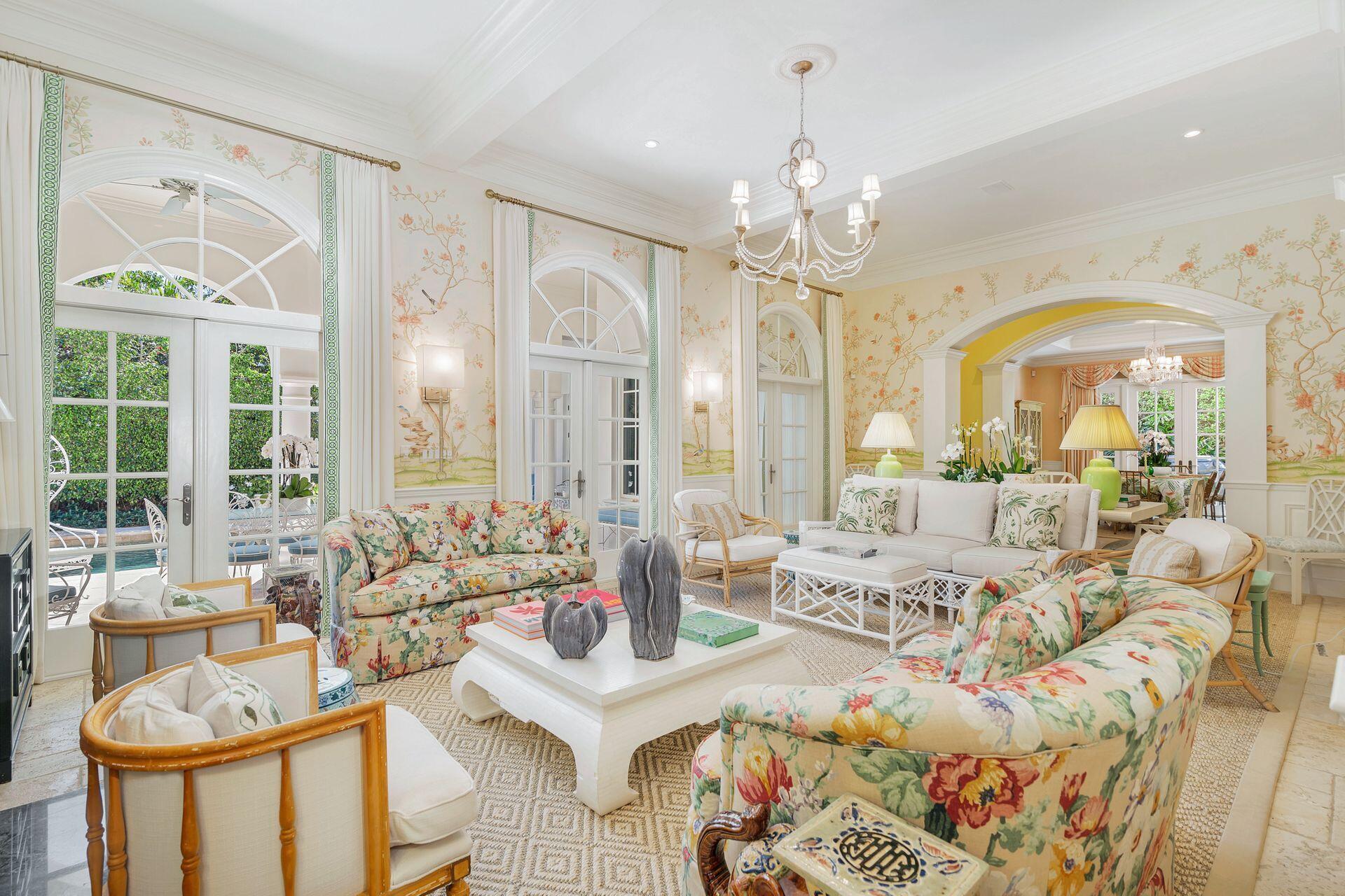 Exquisite Palm Beach home is now available for sale on one of the best streets in the North End of the Island. The floor plan is superb with the ceiling heights over 10ft. The layout includes 4 bedrooms with ensuite baths plus a formal dining room, living room and library. The primary bedroom has doors leading out to the pool and has his and her closets and bathrooms. There is also a covered loggia which is ideal for entertaining. Lush tropical landscaping surrounds the property giving this residence total privacy and the pool is south facing. There is deeded beach access and bike path access.