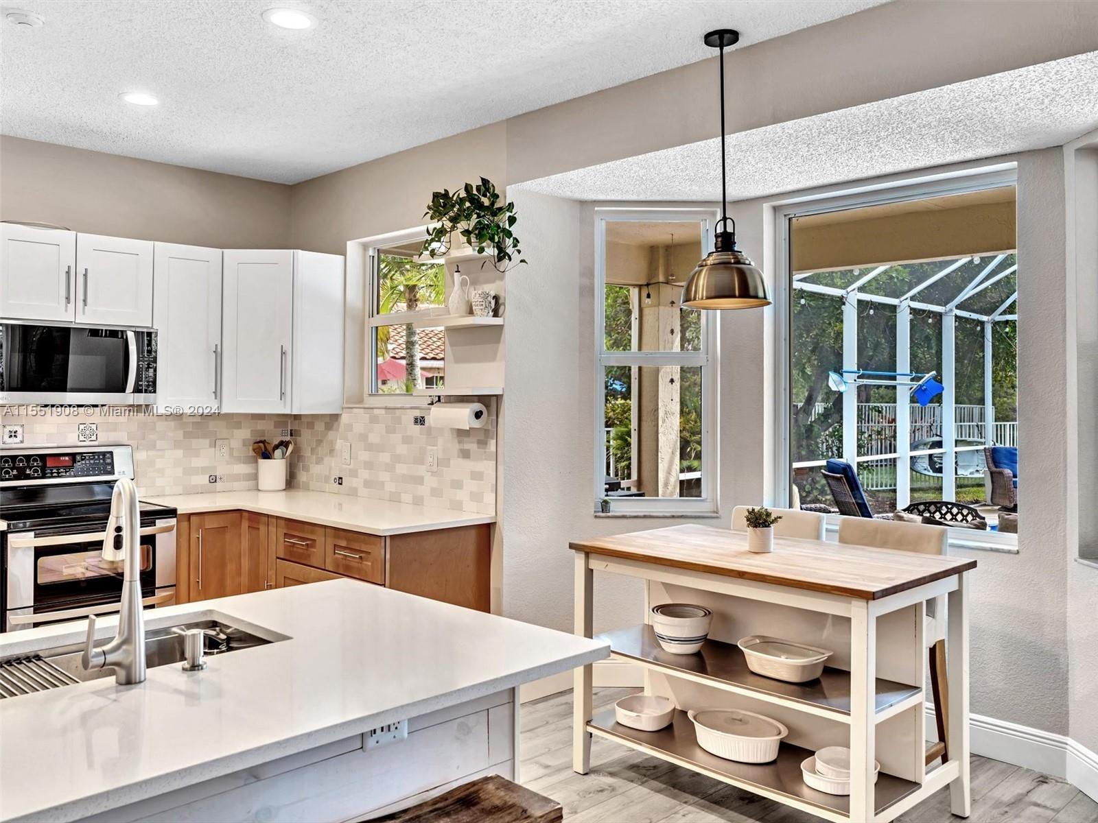 Create memories in this newly updated, coastal chic 4 bed/2.5 bath home nestled on private waterfront lot w/no neighbors behind. Entertain or relax on expansive screened patio accompanied by inviting salt pool surrounded by sprawling fenced yard. Step inside where comfort meets casual sophistication. Kitchen boasts wood cabinets, ss appliances, quartz countertops, snack bar and breakfast nook overlooking generous family rm. Upstairs, retreat to the spacious master bed featuring sitting area and spa-like bathroom complete w/artistic flair. All bathrooms are uniquely updated. Other major improvements include luxury vinyl flooring downstairs, roof 2021, pool resurfaced 2022, impact windows/doors 2021-2023. Guard gated neighborhood w/community pool, play area, soccer field etc. A Must See!