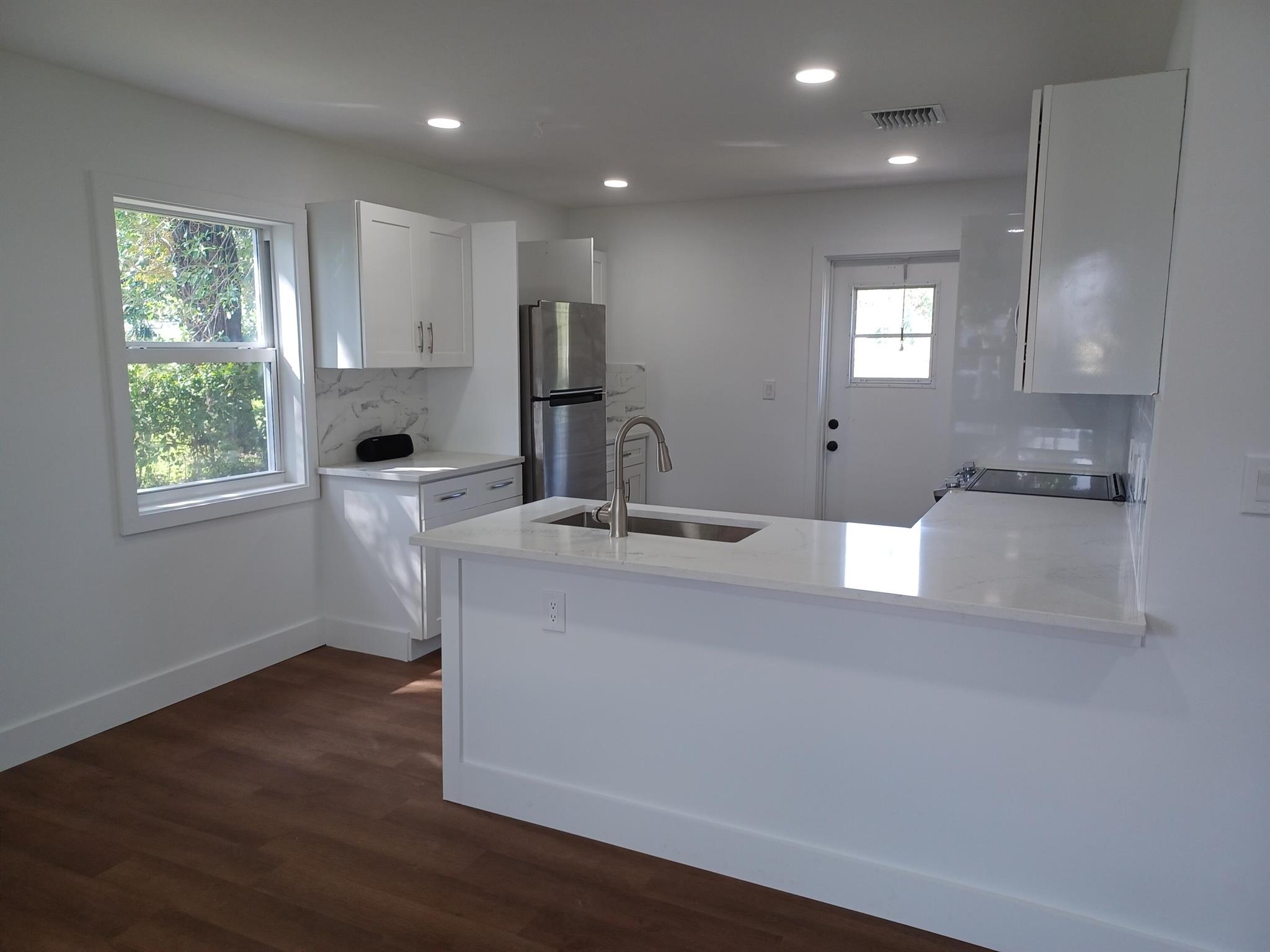 Beautifully Remodeled CBS home with New kitchen with Quartz contertops and stainless steel apliances, Hurricane impact windows, new tankless hot water heater, new central ac and duct work, new bathroom, new closet doors. Freshly painted inside and out. All windows and doors cased out with hardwood, new flooring and baseboards and Decora outlets and light switches plus so much more. Great backyard with shed. Make this your new home.
