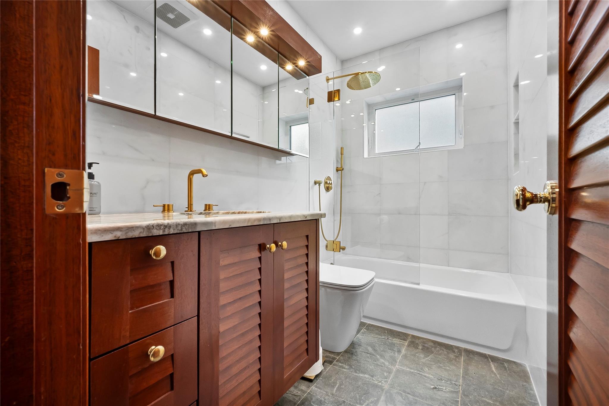 Entirely Renovated to Perfection!!! Impeccable Waterfront Single Level Home Located on Cul-de-sac street in Highly Desirable Intracoastal Community of Bermuda Riviera. Private Gated Community within walking distance to beach, fine dining, shopping & entertainment venues. Features spacious outdoor waterfront patio w/heated pool & open floor plan ideal for entertaining. Gourmet Kitchen w/ custom cabinetry & top of the line appliances. 5 bed, 4 bath, 2 master suites w/ ensuite baths. Floor to ceiling sliding impact windows & doors. Marble & Granite floors throughout. New Oversized AC, plumbing, electrical, hot water heater, garage door & flooring. New Fence, Pilings & Raised dock w/ 50 AMP Service/16,000 LB Boat lift + more. A+ Bayview School district & fabulous private schools nearby.