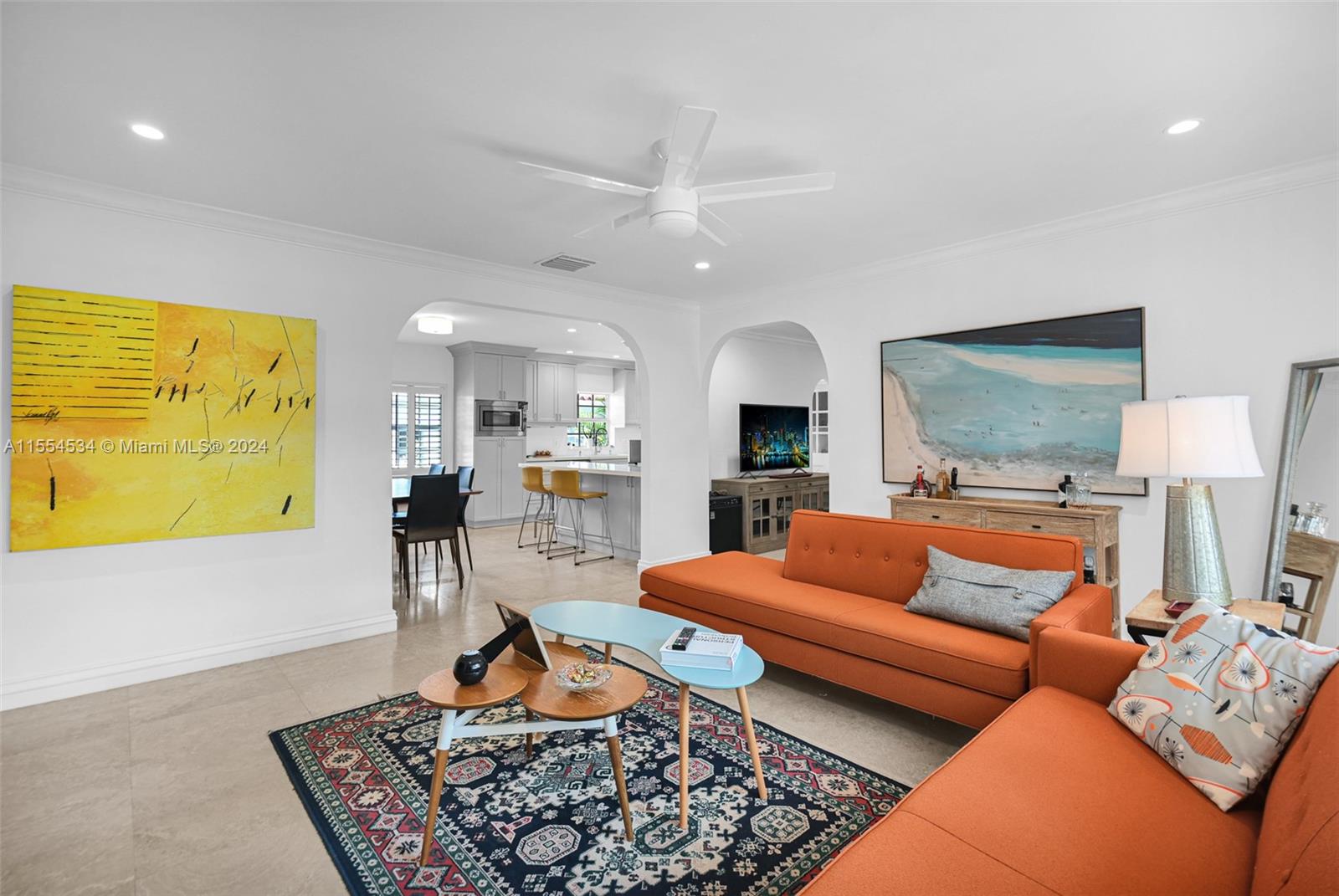 Traditional Coral Gables updated home on a corner lot.A perfect combination of Mid-century elements and Today’s comforts.Big windows bring tons of natural light.Spacious living areas with flexible layout. Comfortable kitchen has modern light gray floor to ceiling cabinets and full backsplash, white quartz ctop, built-in pantry & GE Monogram S/S appl. Majestic Master Bedroom w/spectacular Closet, French doors overlooking backyard with paved patio and playset. Pretty new roof, brand new AC, impact windows and doors, plantation shutters, window treatments, travertine stone wood floors, LED recessed lighting, custom closets. Walking distance from Granada Golf, CG Country Club (w/cafe, swimming & tennis). Venetian Pool & Miracle Mile with all the dining and entertainment at your disposal.