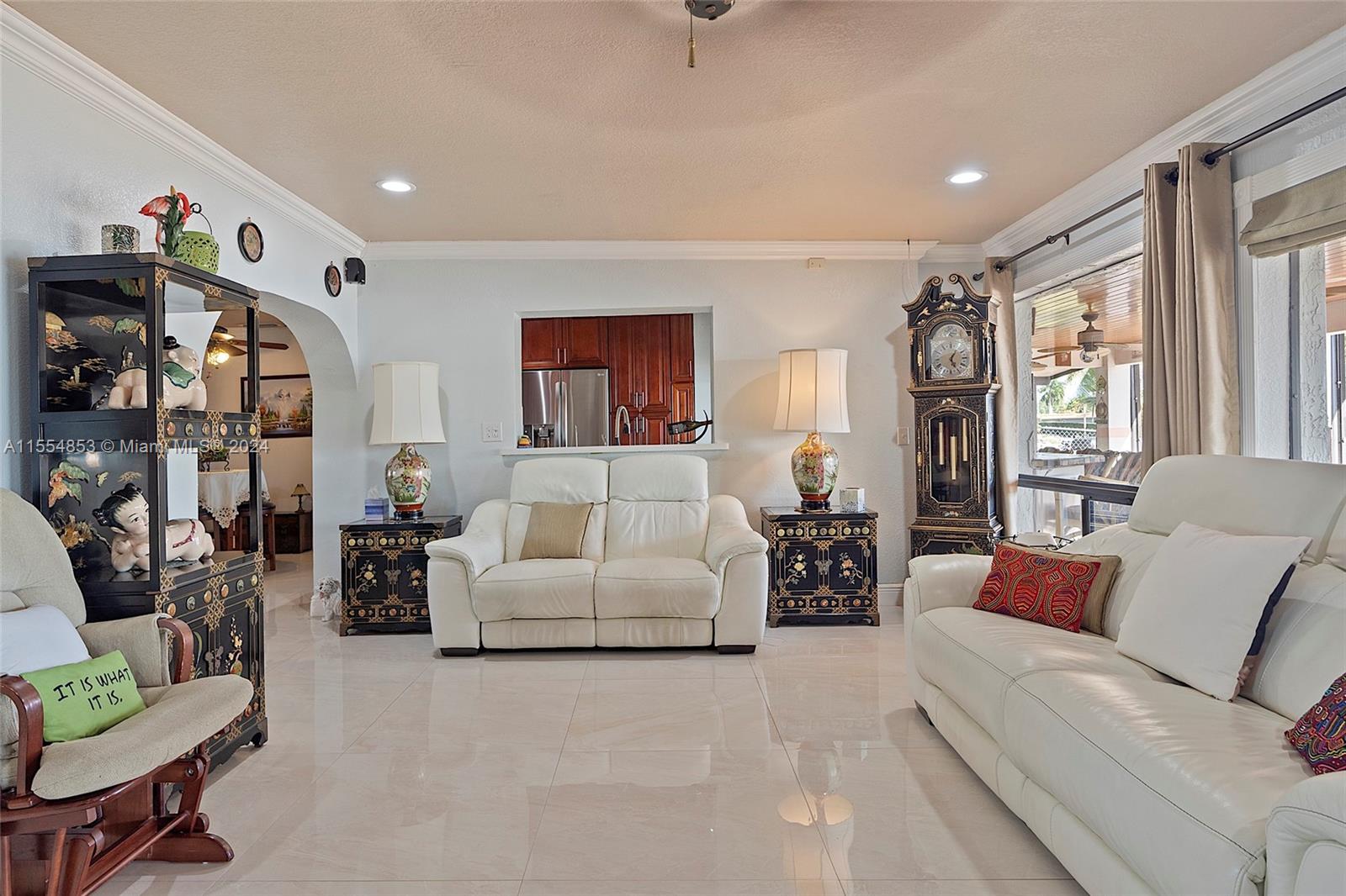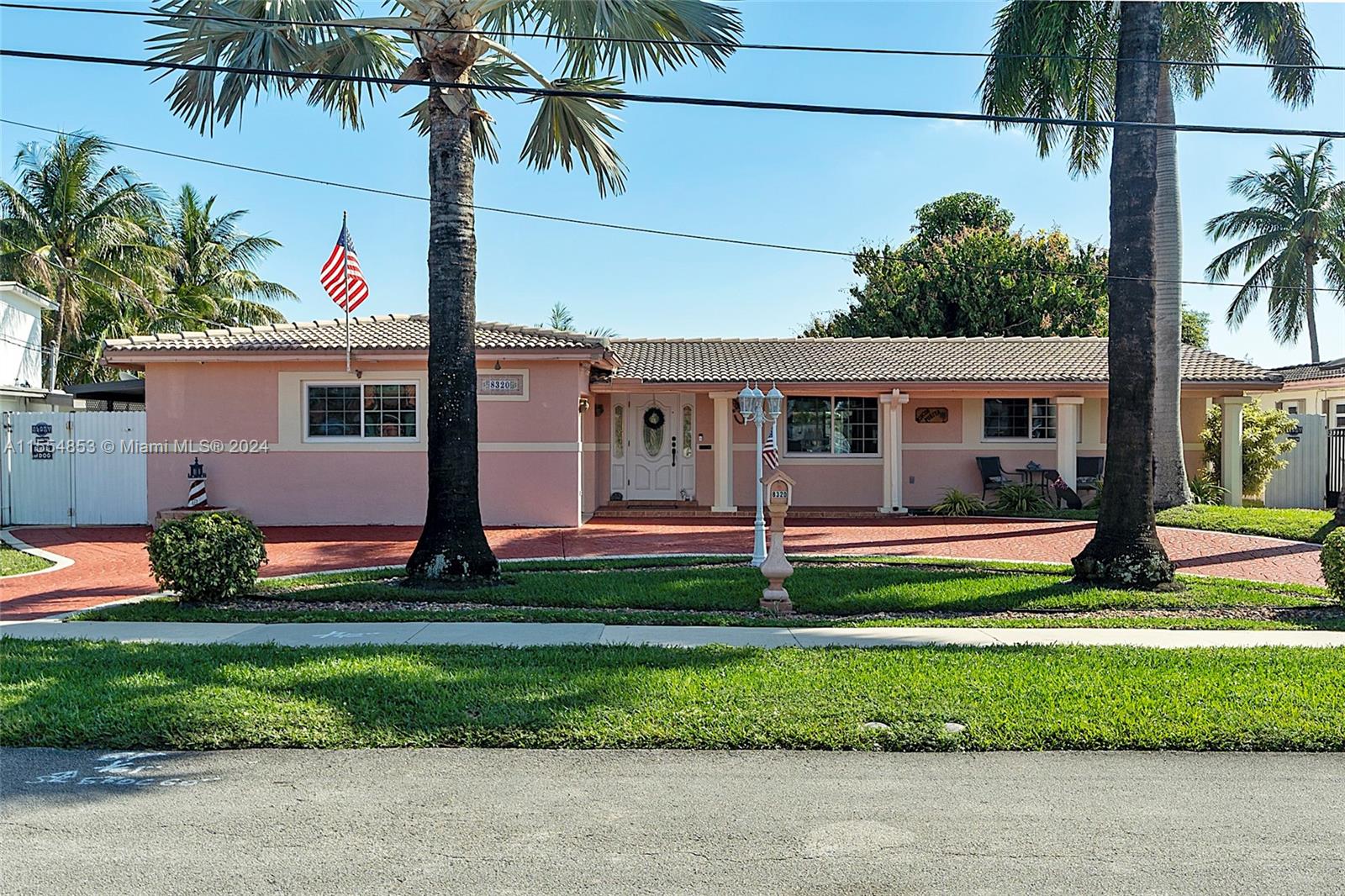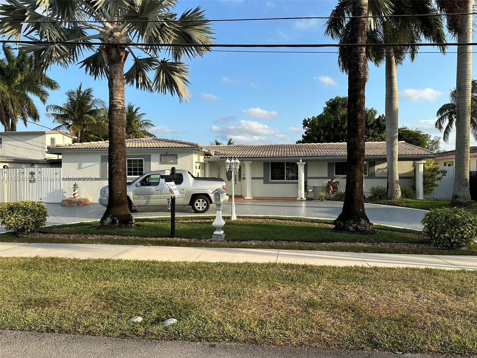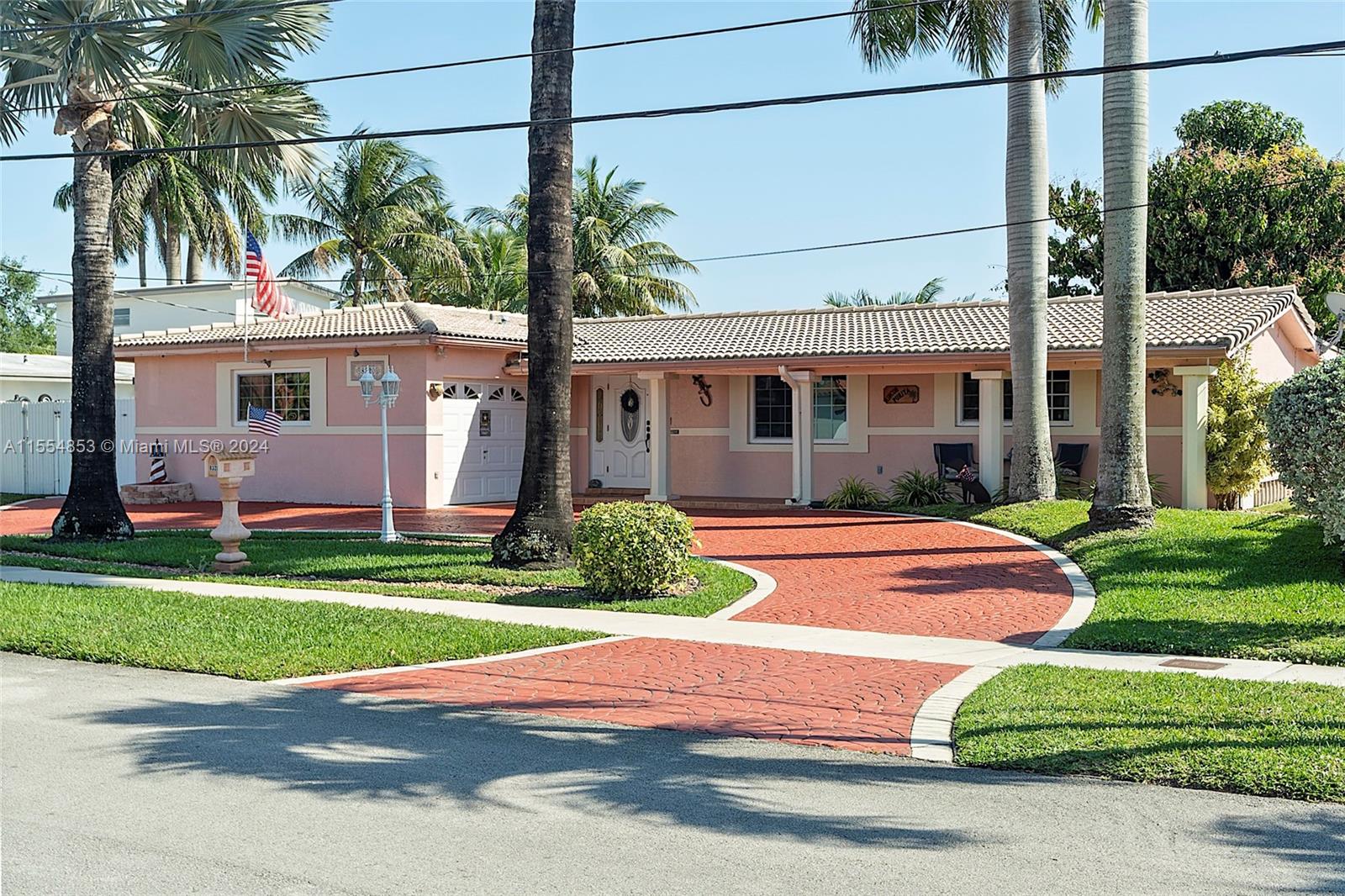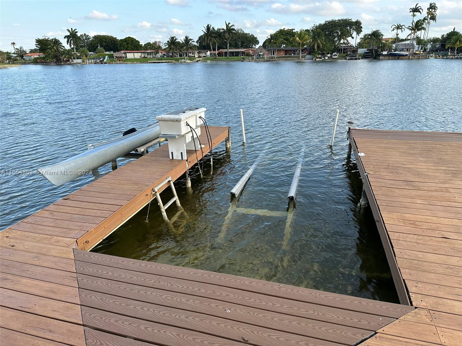 Beautiful lakefront home in Palm Springs North! Spacious 3BR/2BA with 1-car garage, circular driveway, porcelain tile, updated kitchen/baths, SS appliances, reverse osmosis system, partial impact windows and full size accordion shutters to supplement. Enjoy a covered patio with bar, saltwater pool, beach area, gazebo/wet bar with grill, and private dock with boat lifts. Prime location near I-75/Turnpike & 826. A must-see paradise!