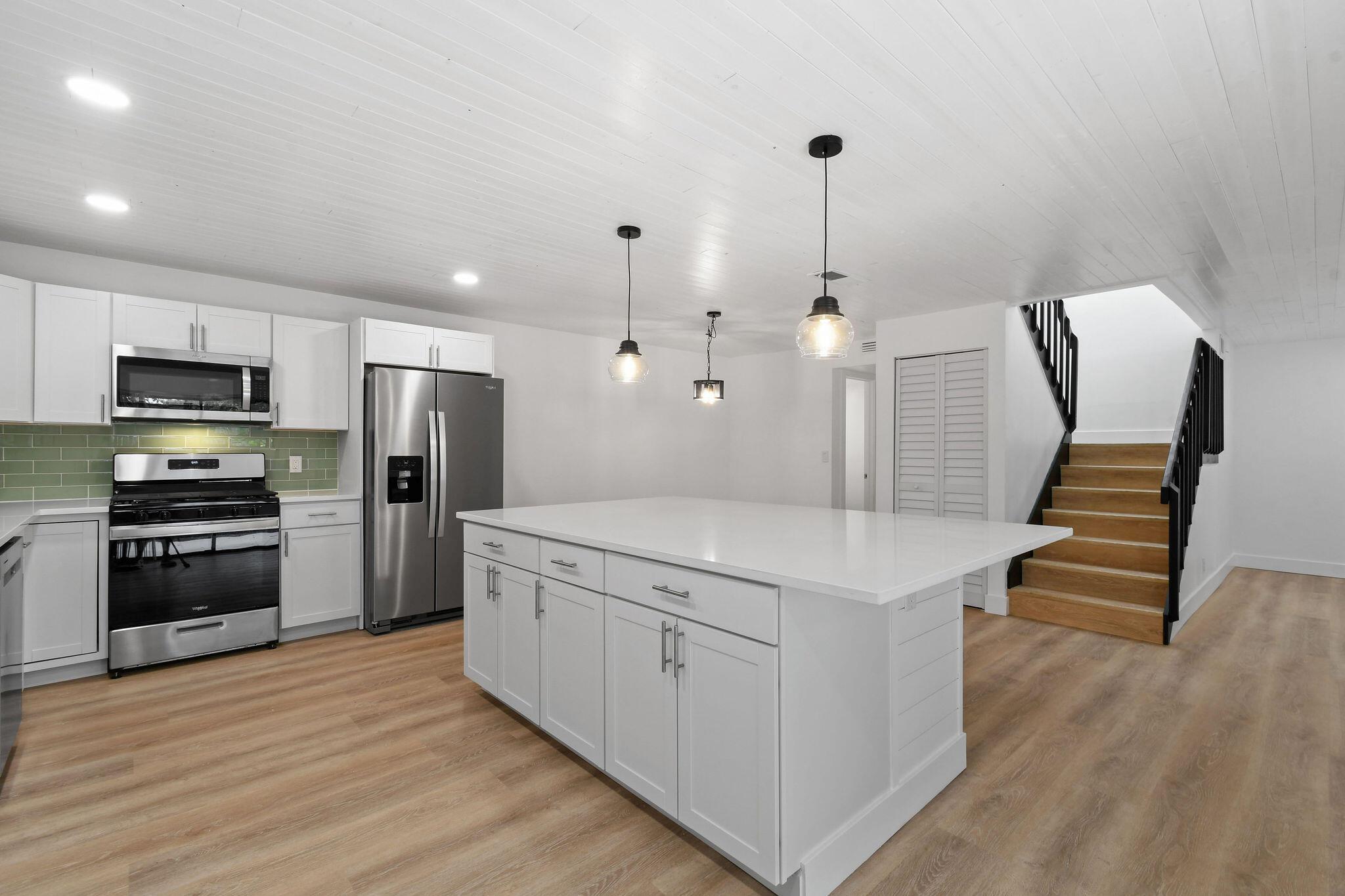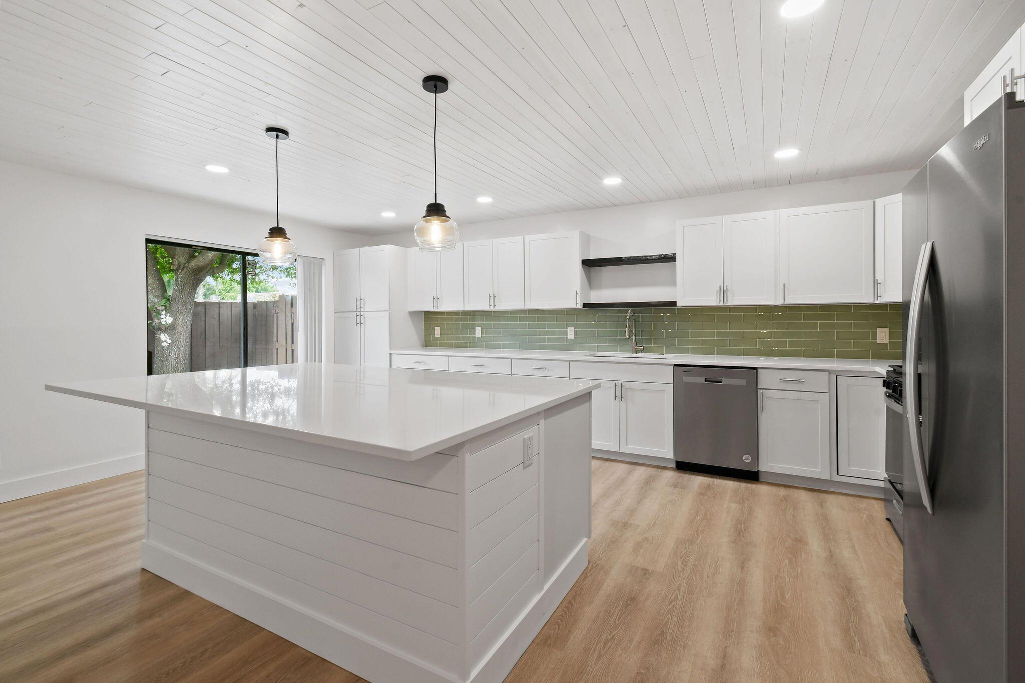 Exterior Insurance is included in HOA Dues. Low cost H06 Interior policy needed for buyer. Welcome to this stunning three-bedroom, 2.5-bathroom townhome nestled in the vibrant heart of West Palm Beach. Meticulously renovated with a captivating farmhouse theme, every corner exudes charm and sophistication. Step inside to discover a haven of elegance, where every bathroom boasts exquisite tile work and each vanity cabinet has been tastefully replaced. Revel in the ambience of the shiplap fireplace, a focal point of timeless beauty. The kitchen is a chef's dream, adorned with quartz countertops and equipped with brand new stainless steel appliances. Enjoy the convenience of natural gas, powering the stove, hot water heater, and dryer for efficient living.