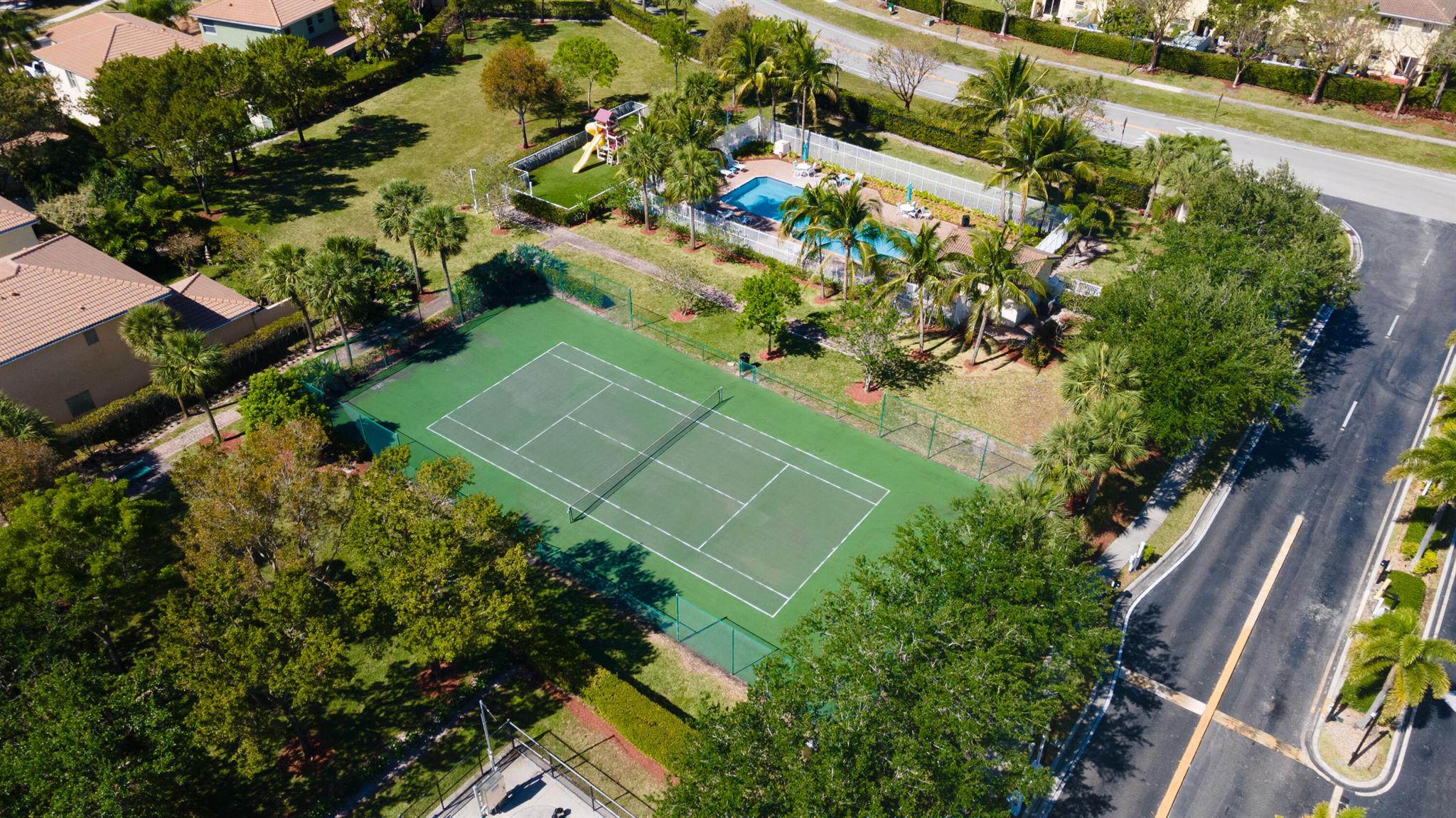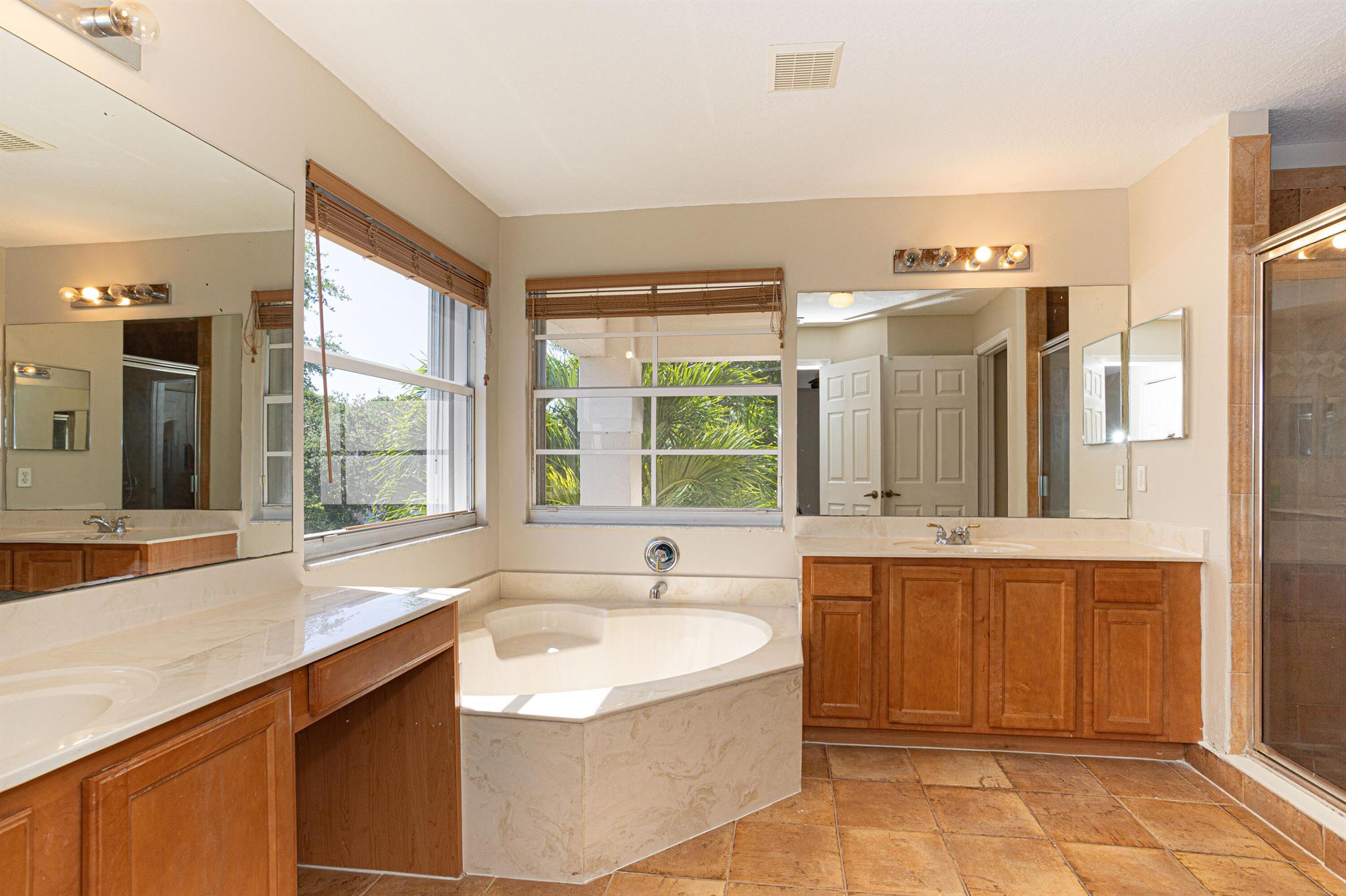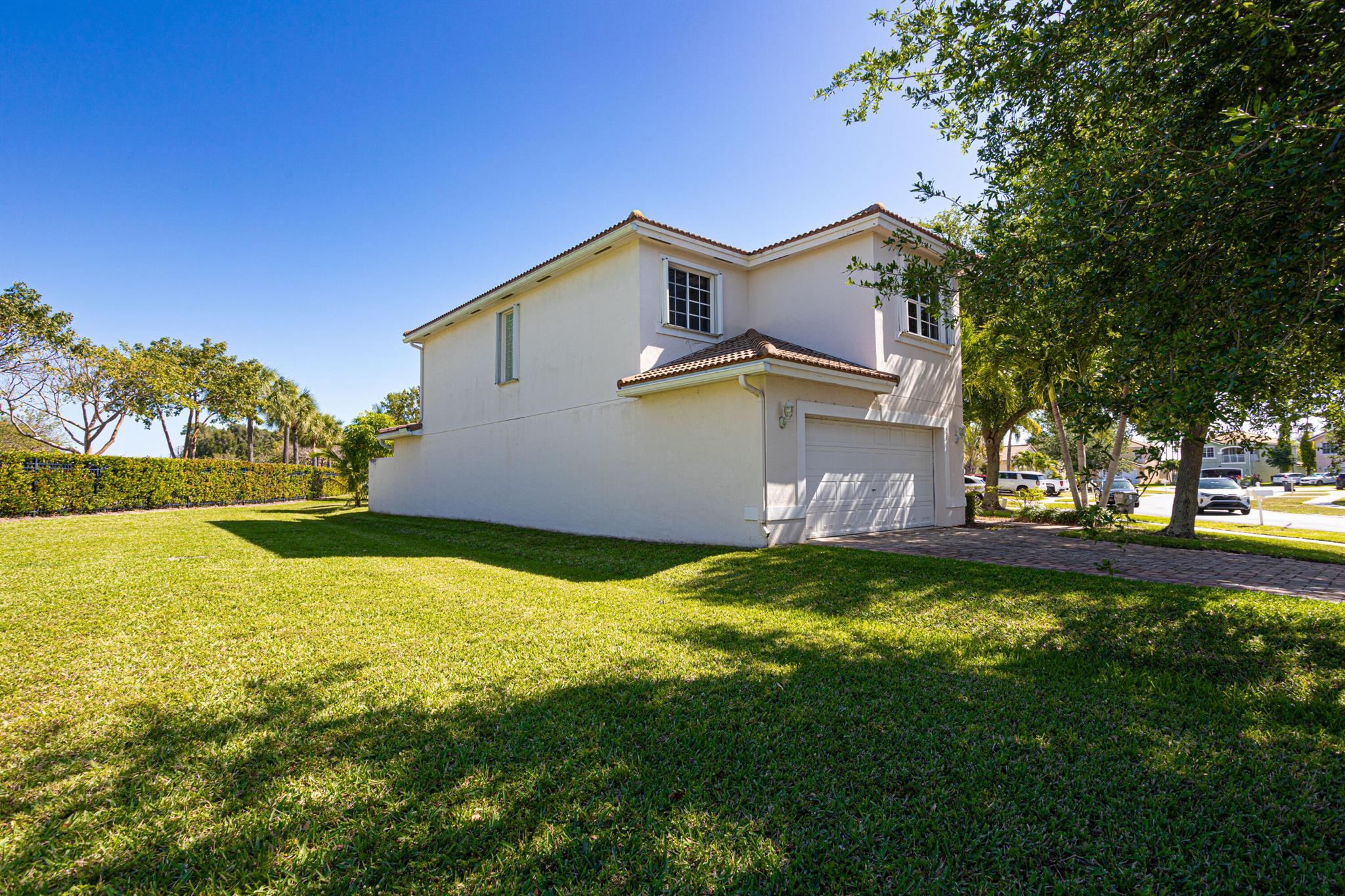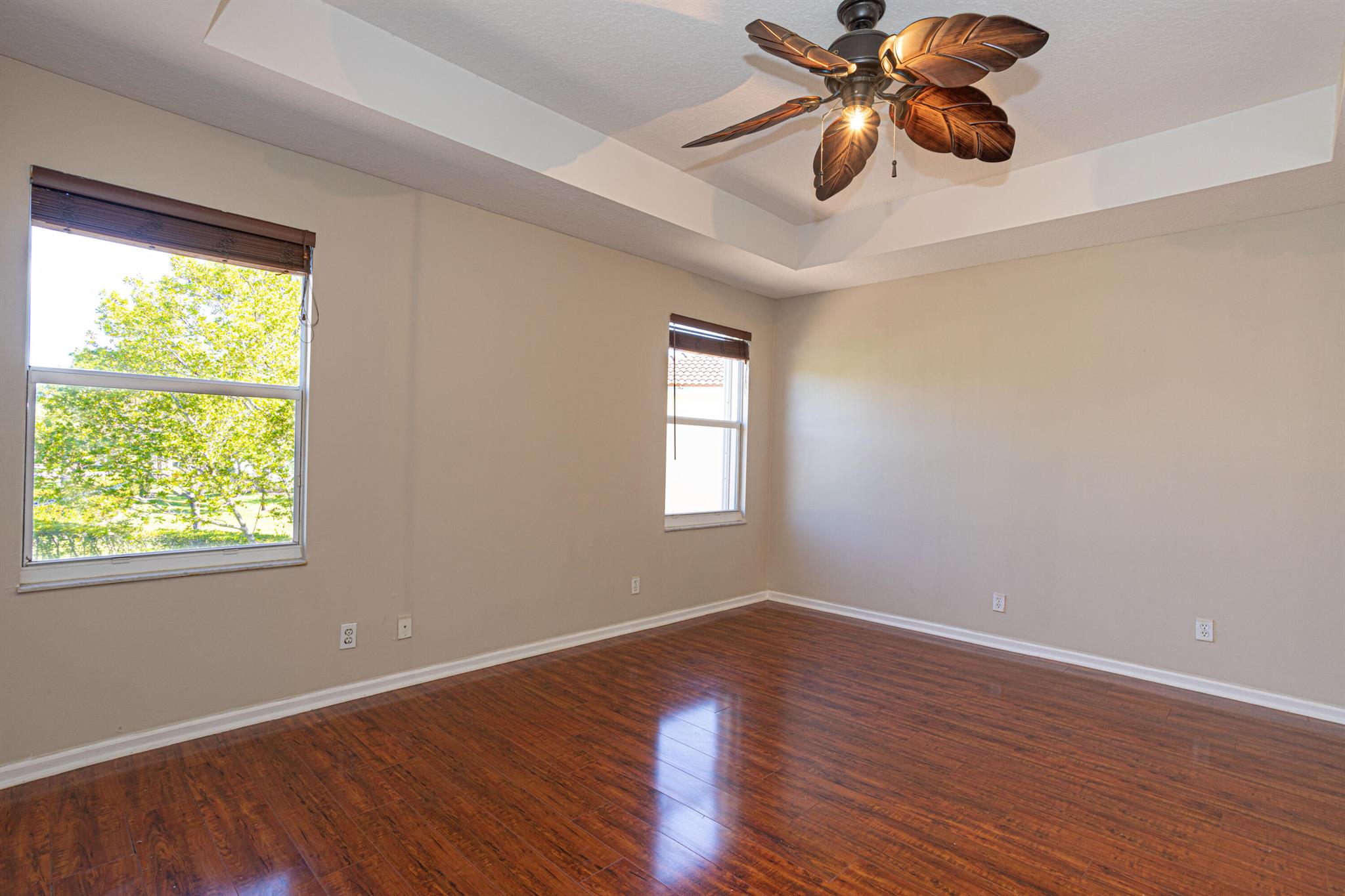 Beautiful 4 bedroom 3 1/2 bath home with 2 master bedrooms. 2,926 total sqft with 7 parking spaces, including a 2 car garage. Plenty of room for a pool with one of the biggest lots in the neighborhood. Open concept home features a large living and family room, updated kitchen, walk in pantry. Freshly painted and now with brand new A/C unit. Large master suite boasts of his and hers closets, a roman tub, and double vanities. Your guests will feel comfortable in their own master suite complete with its own bathroom and tub. Mature shade and fruit trees. Enjoy low HOA fees, community pool, children's playground, and tennis court. Close to Florida Turnpike, and minutes to PBIA airport, and I-95.