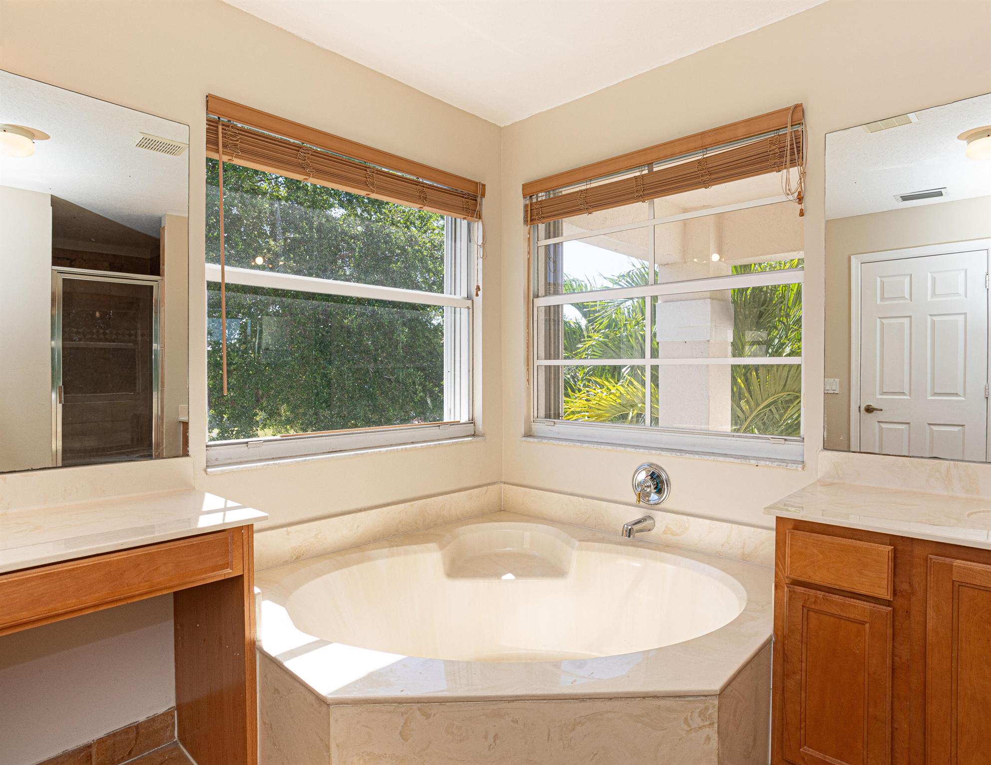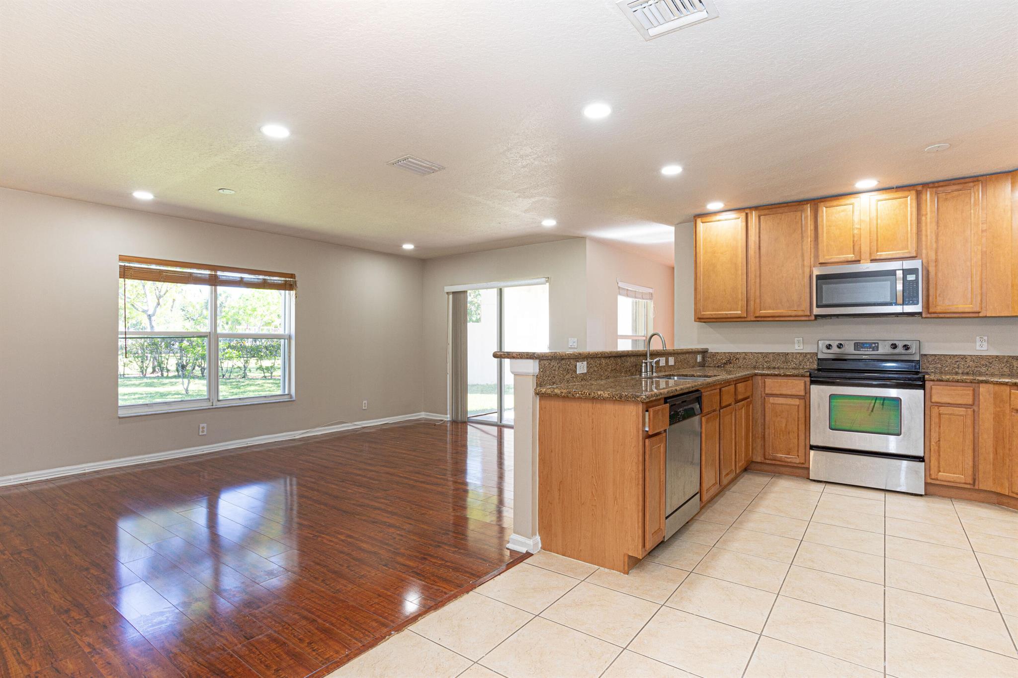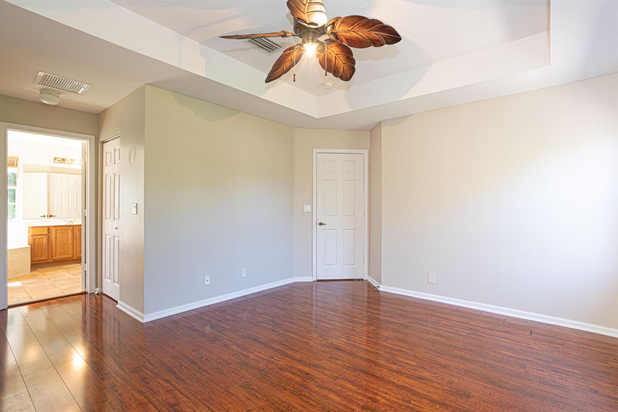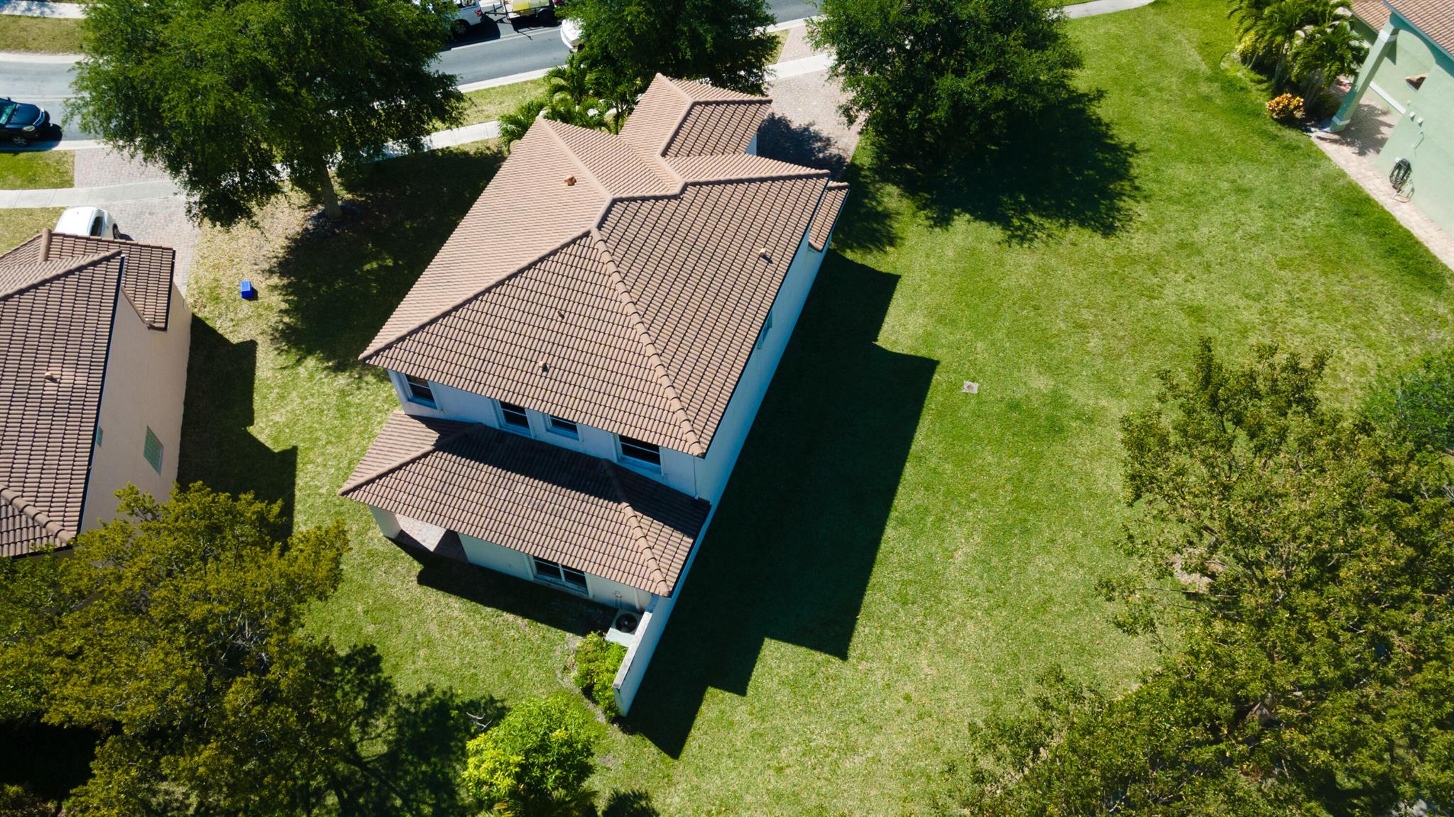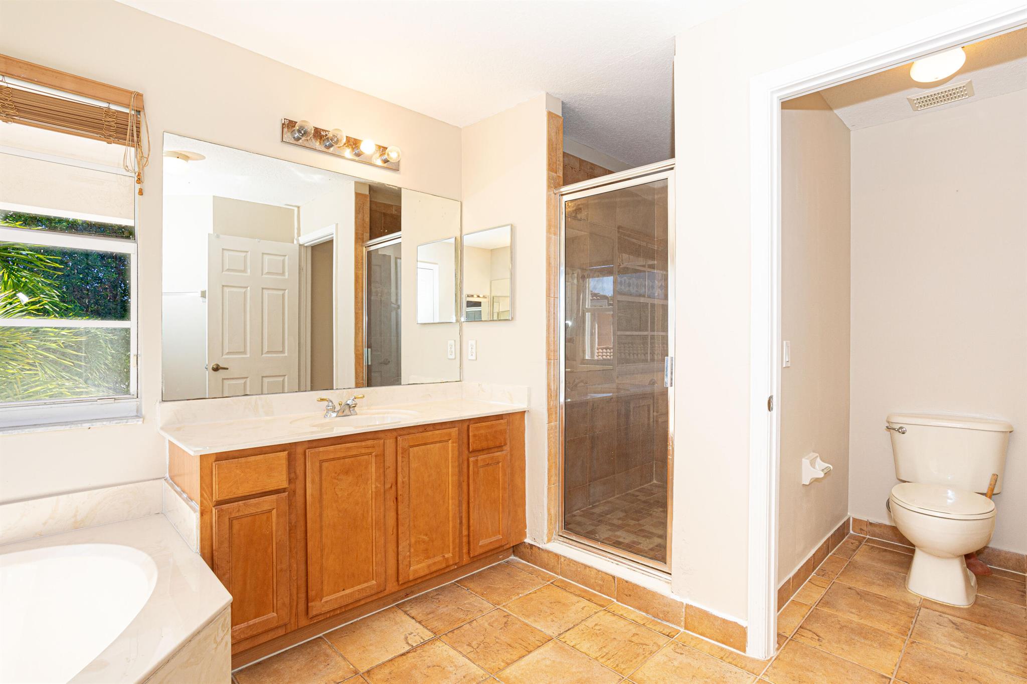 Beautiful 4 bedroom 3 1/2 bath home with 2 master bedrooms. 2,926 total sqft with 7 parking spaces, including a 2 car garage. Plenty of room for a pool with one of the biggest lots in the neighborhood. Open concept home features a large living and family room, updated kitchen, walk in pantry. Freshly painted and now with brand new A/C unit. Large master suite boasts of his and hers closets, a roman tub, and double vanities. Your guests will feel comfortable in their own master suite complete with its own bathroom and tub. Mature shade and fruit trees. Enjoy low HOA fees, community pool, children's playground, and tennis court. Close to Florida Turnpike, and minutes to PBIA airport, and I-95.