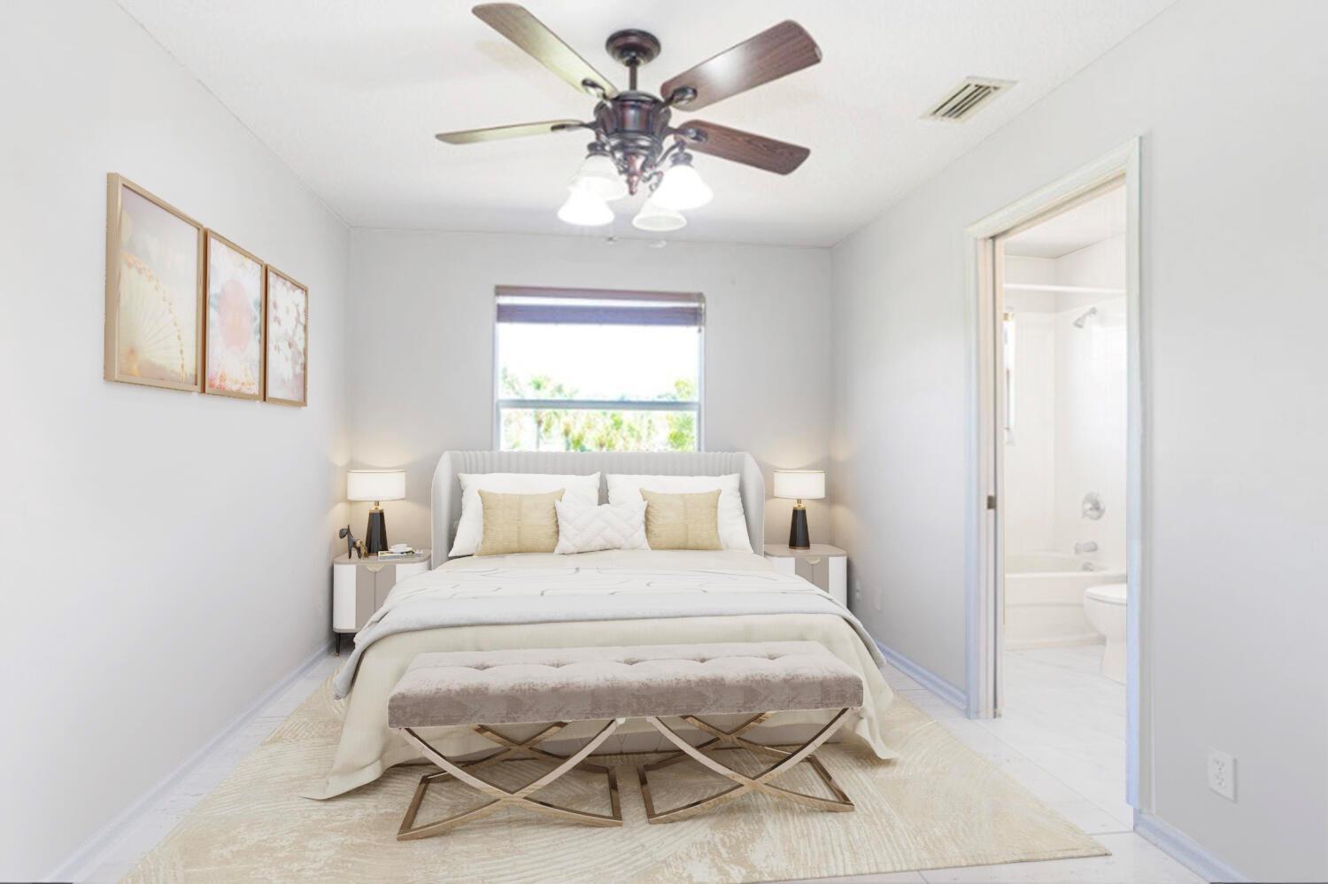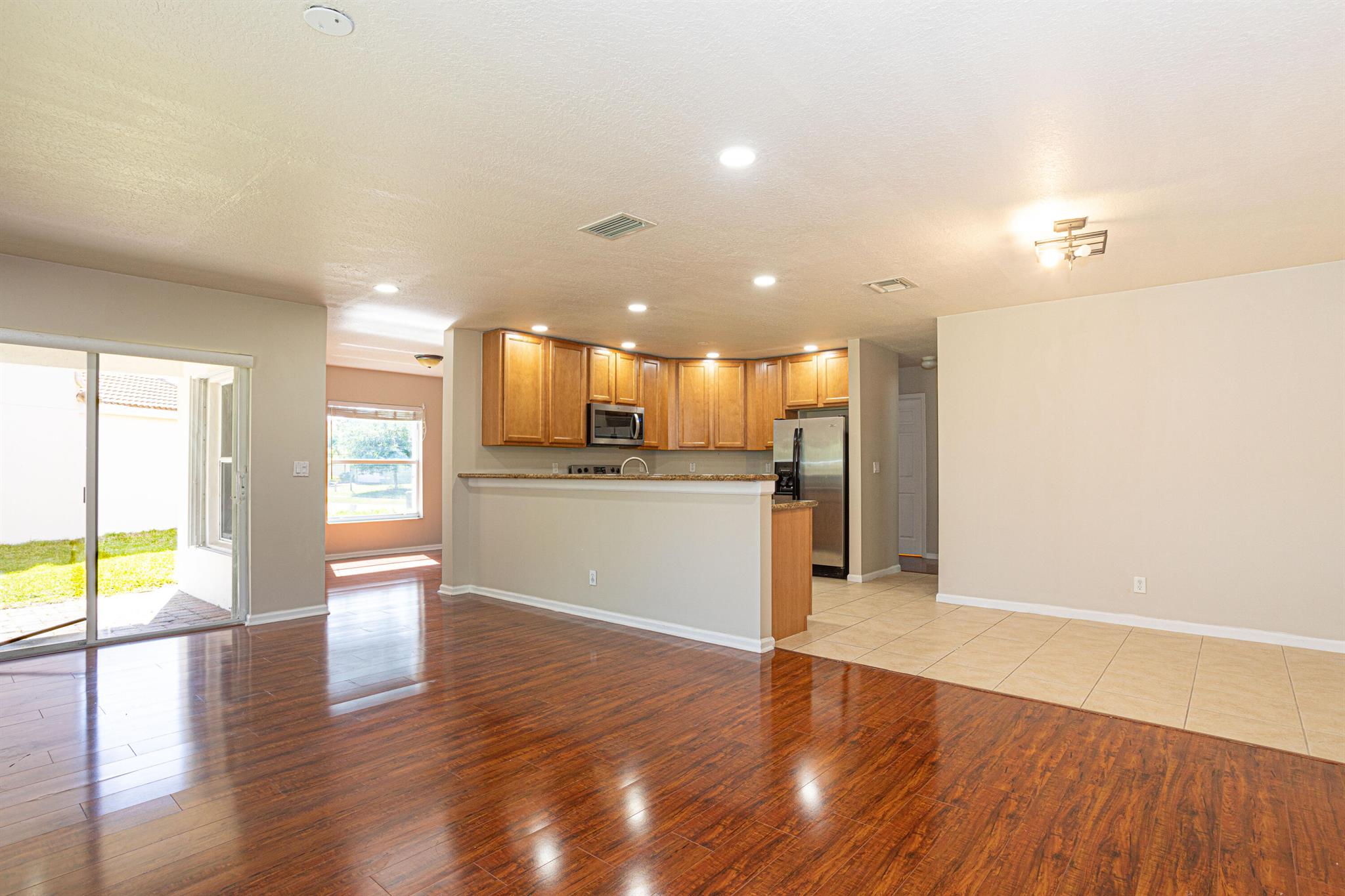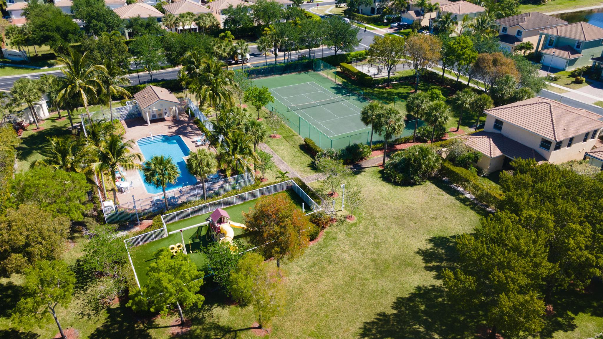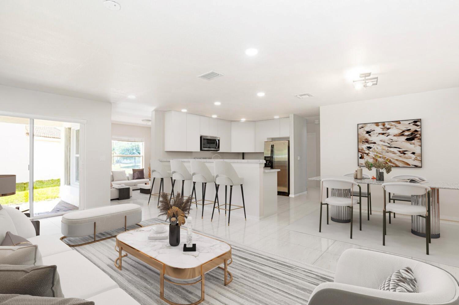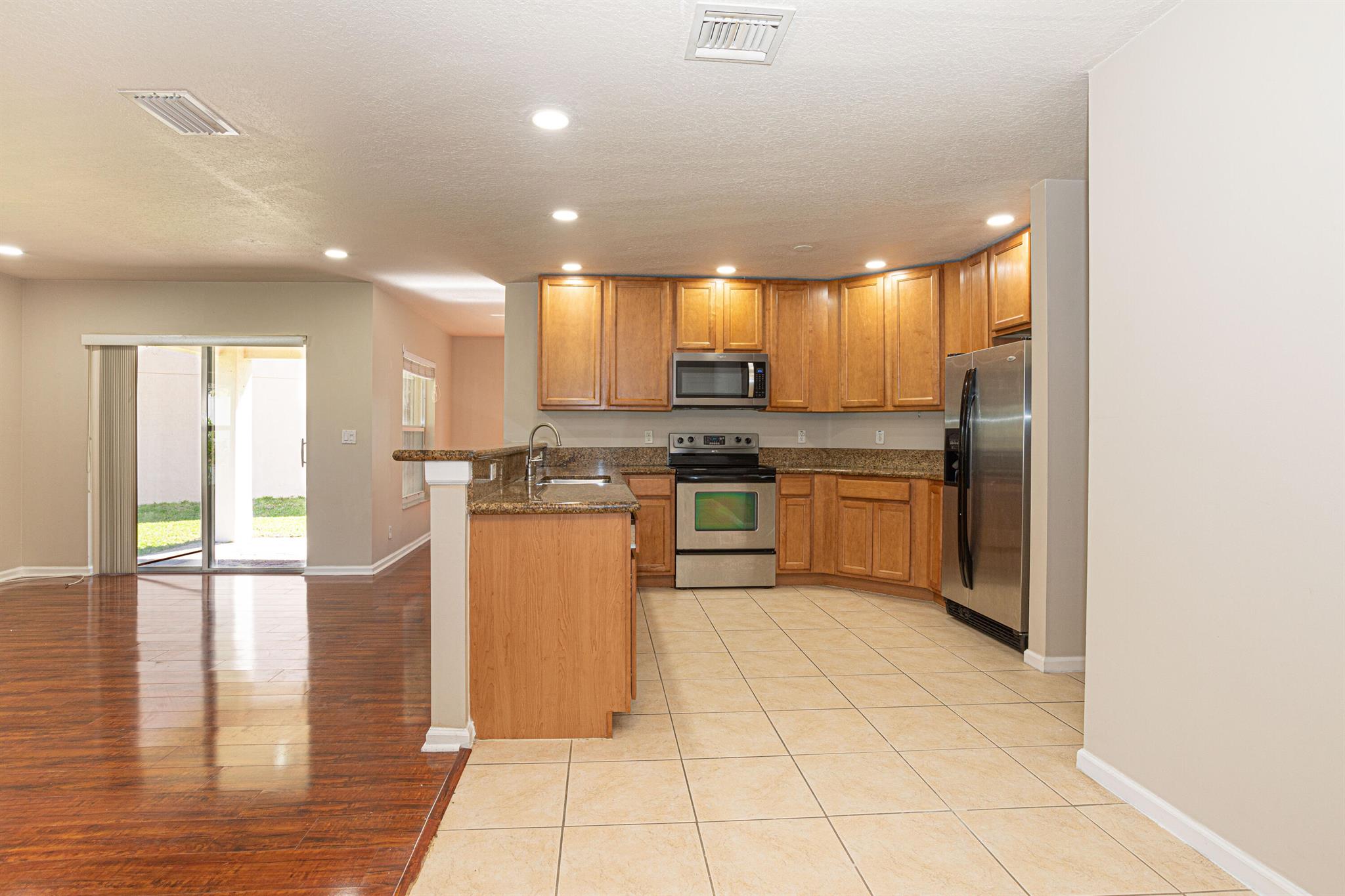 Beautiful 4 bedroom 3 1/2 bath home with 2 master bedrooms. 2,926 total sqft with 7 parking spaces, including a 2 car garage. Plenty of room for a pool with one of the biggest lots in the neighborhood. Open concept home features a large living and family room, updated kitchen, walk in pantry. Freshly painted and now with brand new A/C unit. Large master suite boasts of his and hers closets, a roman tub, and double vanities. Your guests will feel comfortable in their own master suite complete with its own bathroom and tub. Mature shade and fruit trees. Enjoy low HOA fees, community pool, children's playground, and tennis court. Close to Florida Turnpike, and minutes to PBIA airport, and I-95.