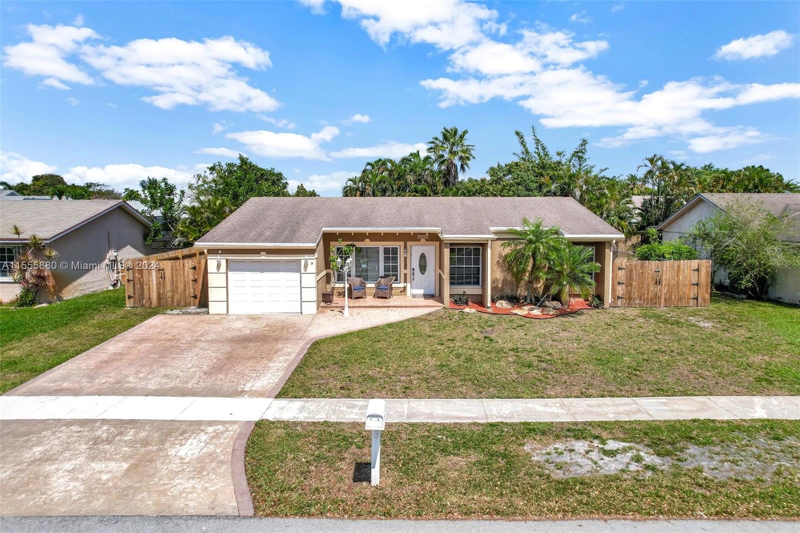 Ready to move in, this home features a 3 bedroom 2 bath, 1 car garage with Pool. Remodeled backyard with scenic views. Large Pool area, Grotto with waterfall, BBQ covered area, turf throughout the back, LED lighting and full privacy landscaping and fence. Making this backyard Oasis private and relaxing. All updated Samsung kitchen appliances with LED lighting. Updated Smart LED lighting throughout that can be controlled by your smart phone to adjust the lighting indoor and outdoor. Bathrooms have been updated. Alarm and surveillance system with door camera and AC temperature control. Home has plenty of room for large RV, boat or both, no associations to deal with. Stamped concrete driveway with spacious one car garage.