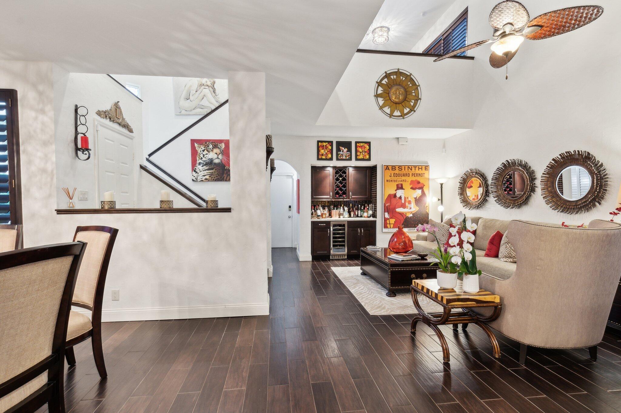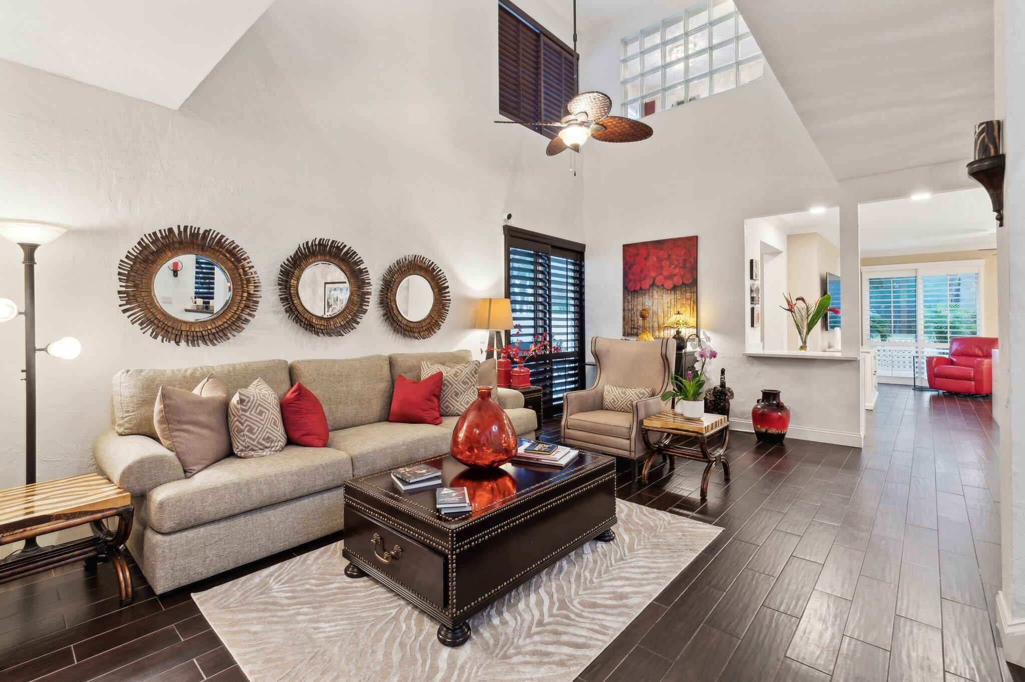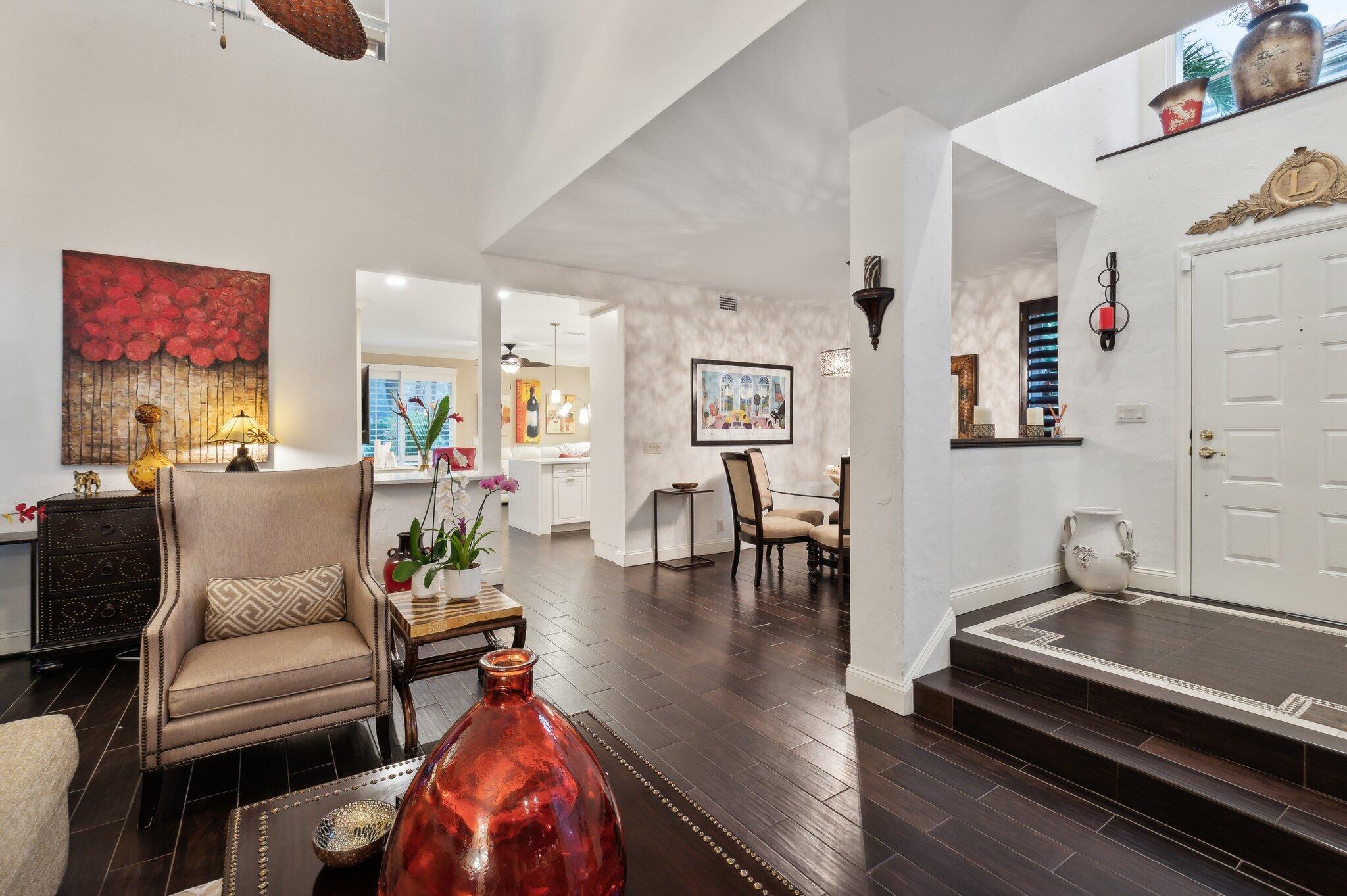 THIS IS A MUST SEE! Gorgeous doesn't begin to describe this beautiful updated, fully furnished mediterranean home with views of the lake AND 18th fairway. No detail has been overlooked. Lovely espresso wood floors throughout, light and bright gourmet kitchen with Cafe' appliances and butlers pantry, full impact windows and doors, new electric, new plumbing, newly paved driveway and back patio with large hot tub to enjoy the views while relaxing with your morning coffee or evening glass of wine.