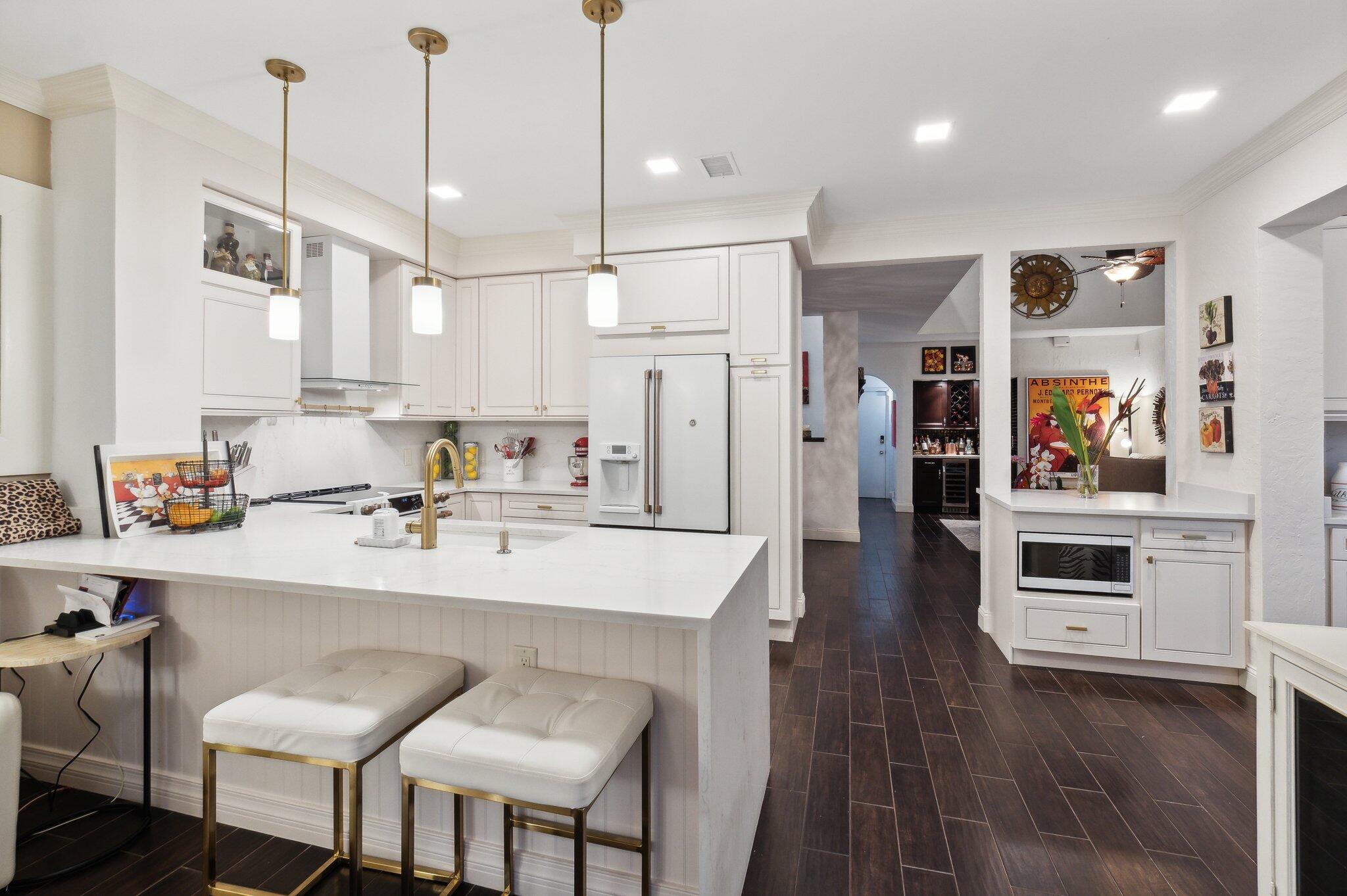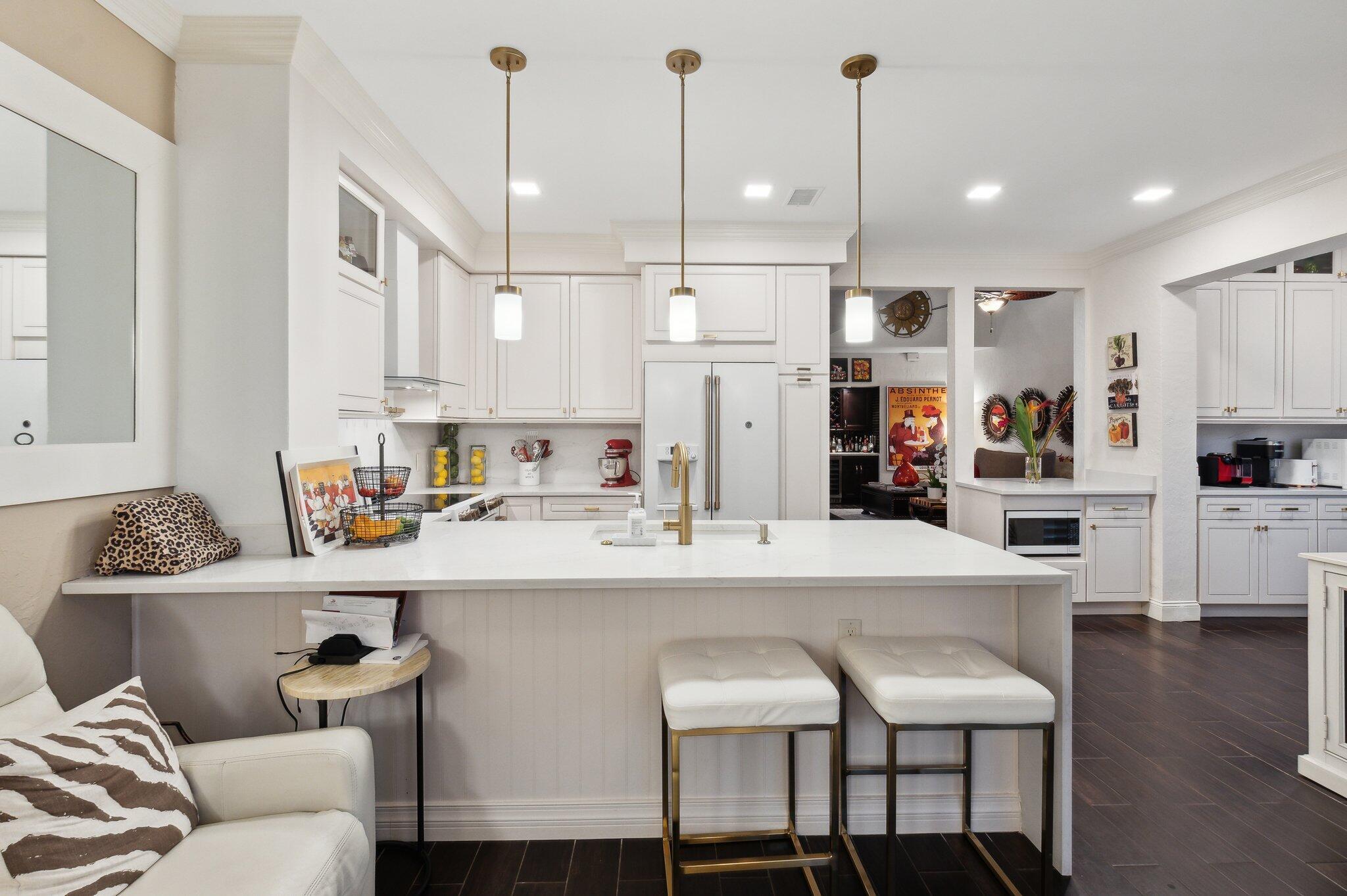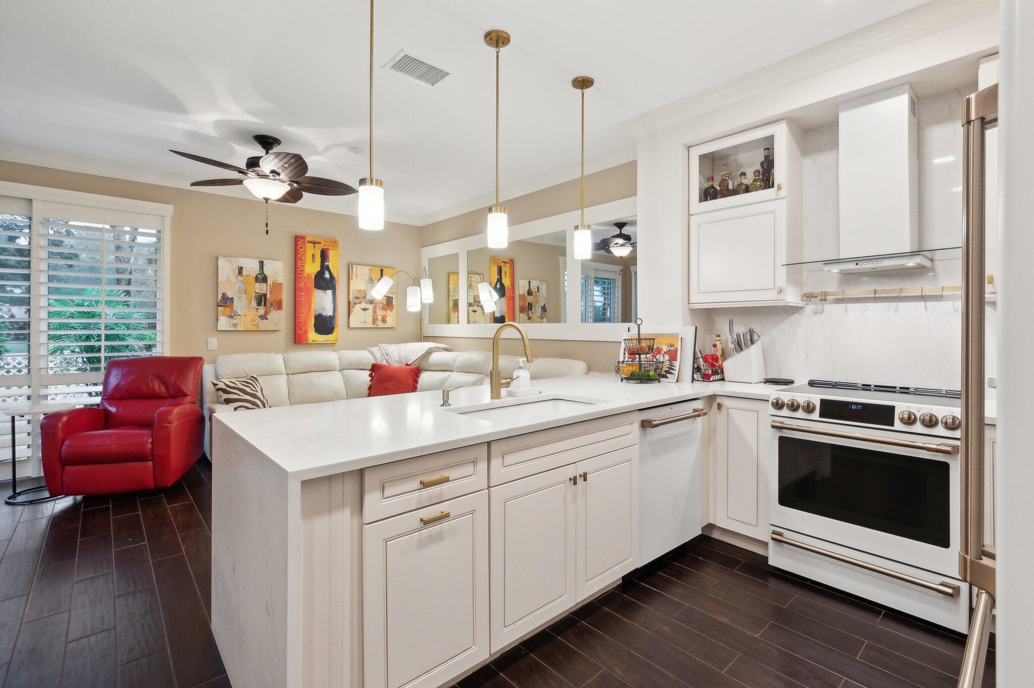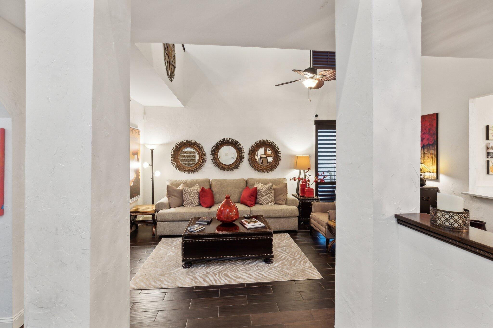 THIS IS A MUST SEE! Gorgeous doesn't begin to describe this beautiful updated, fully furnished mediterranean home with views of the lake AND 18th fairway. No detail has been overlooked. Lovely espresso wood floors throughout, light and bright gourmet kitchen with Cafe' appliances and butlers pantry, full impact windows and doors, new electric, new plumbing, newly paved driveway and back patio with large hot tub to enjoy the views while relaxing with your morning coffee or evening glass of wine.