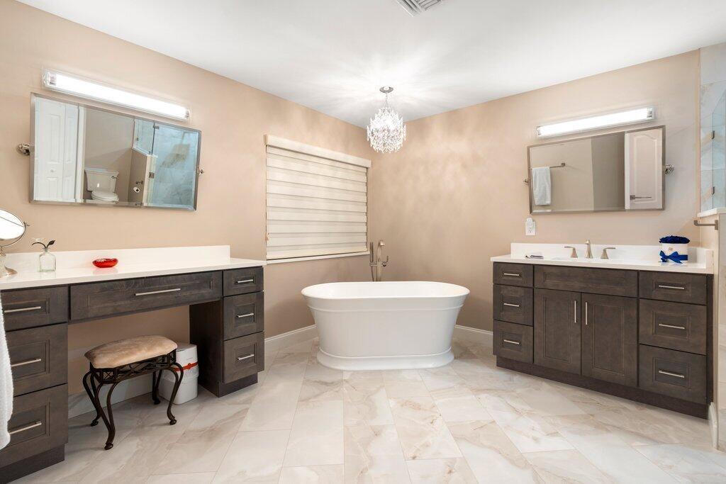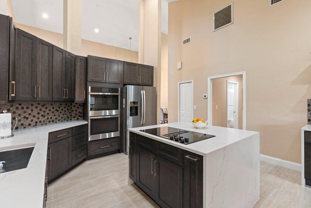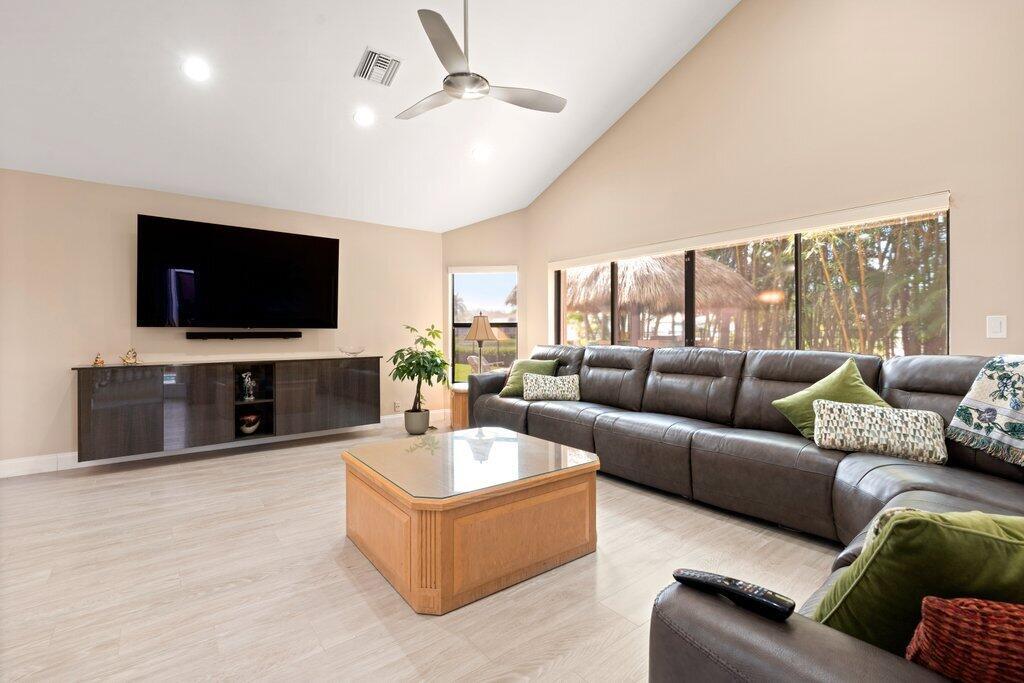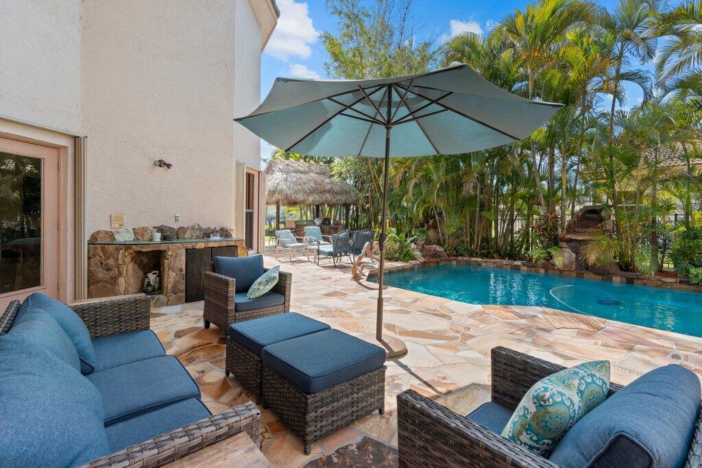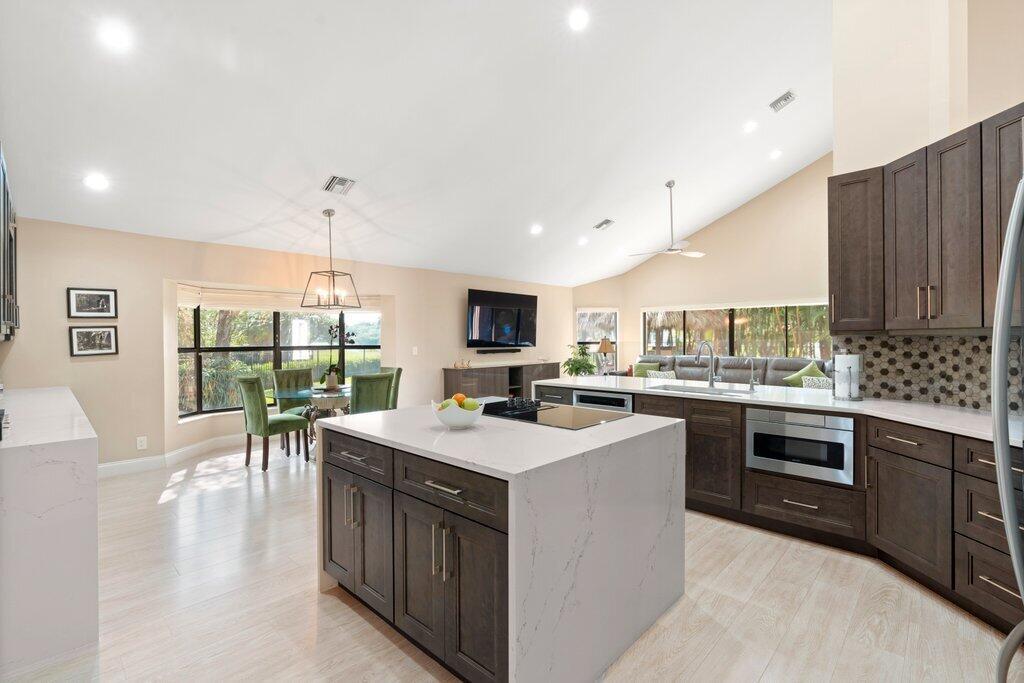 METICULOUSLY MAINTAINED ONE-STORY 4 BEDROOM 3 BATHROOM HOME FEATURING A RESORT STYLE POOL INCLUDING MULTIPLE WATERFALLS, TIKI-HUT & OUTDOOR KITCHEN WITH SPECTACULAR WATER AND GOLF COURSE VIEWS. THIS IS AN ENTERTAINER'S DREAM HOME. THIS HOME RECENTLY UNDERWENT A FULL REMODEL INCLUDING WOOD-LOOK TILE FLOORING, GOURMET KITCHEN, BATHROOMS, CUSTOM CLOSETS, LED LIGHTING, WINDOW TREATMENTS ALL WITH DESIGNER FINISHES. EAGLE TRACE IS A FANTASTIC GATED COMMUNITY WHICH INCLUDES A PLAYGROUND, TENNIS, PICKLEBALL AND BASKETBALL COURTS.