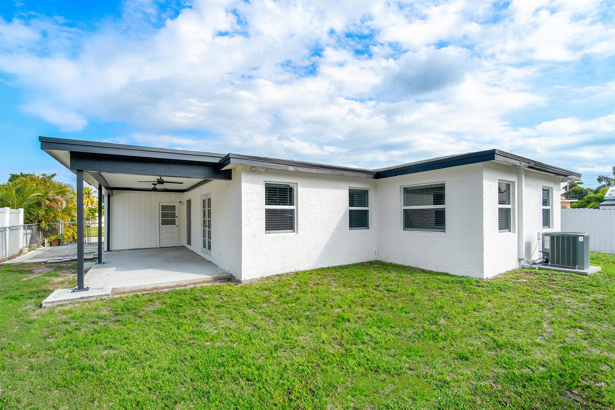 Welcome to this impeccably renovated 4/2 single-family home located in desirable West Palm Beach! Step into a meticulously designed living space exuding contemporary elegance, complete with spacious bedrooms and luxurious spa-like baths. The property showcases a permitted addition completed in 2023, expanding living areas with a Patio, Living room, Master bedroom, Walk-in closet, and Master Bathroom--all featuring Hurricane impact windows and doors for added durability. Bathrooms have been fully remodeled, with upscale fixtures and finishes throughout. Enjoy the convenience of modern appliances including a Fridgedare refrigerator, Samsung oven stove top, and General Electric front-load washer and dryer. Modern interior and exterior painting completed in 2024 adds a touch of sophistication.